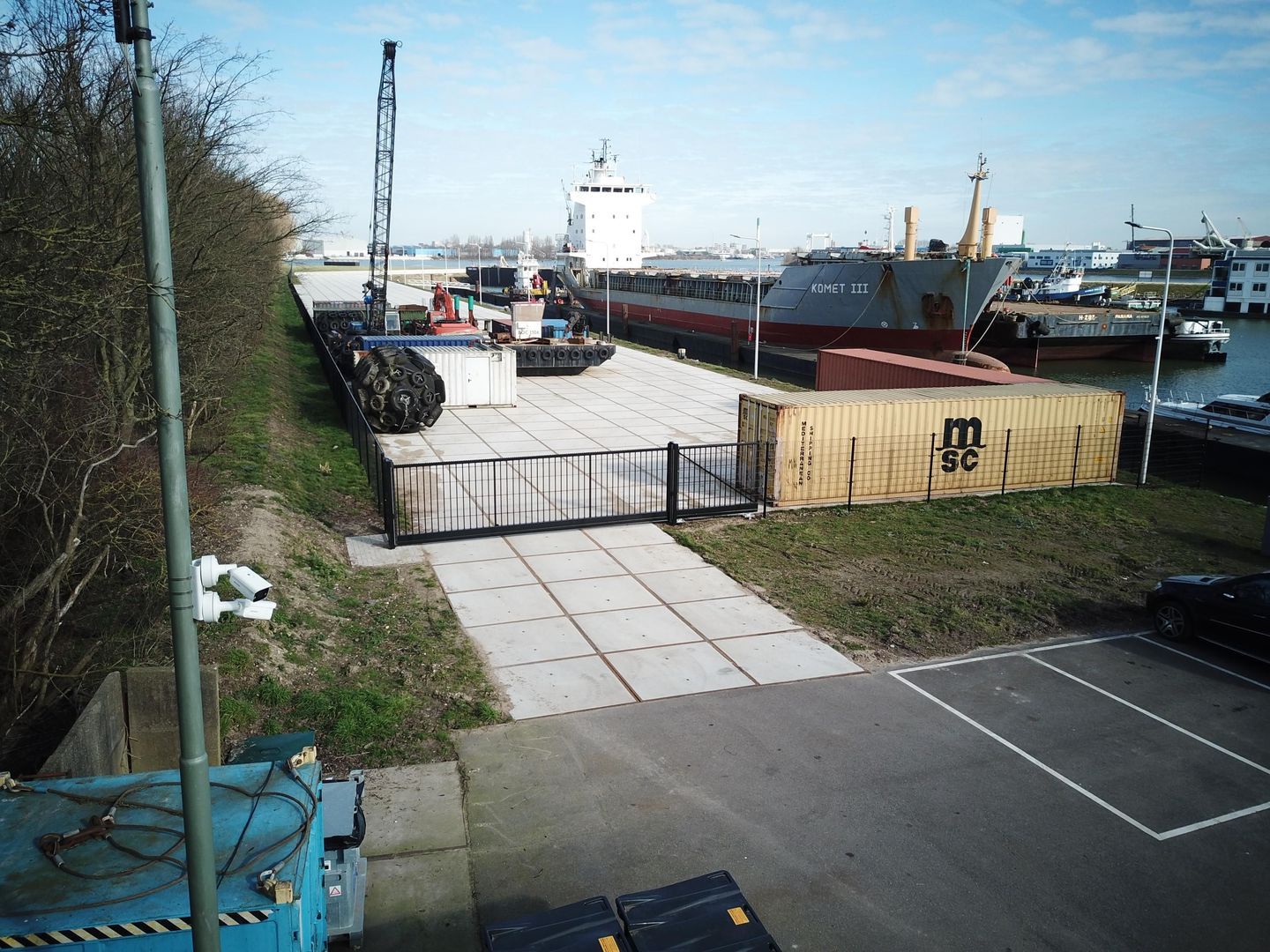 Het terrein is afgesloten door een elektrische schuifpoort en hek en heeft camerabeveiliging. Ligging aan de rand van het bedrijventerrein Mijlpolder en de Dordtse Kil in ’s-Gravendeel (gemeente Hoeksche Waard). De snelwegen A16 en A29 liggen op respectievelijk 10 en 15 minuten afstand, waardoor Rotterdam en Breda per auto goed bereikbaar zijn.