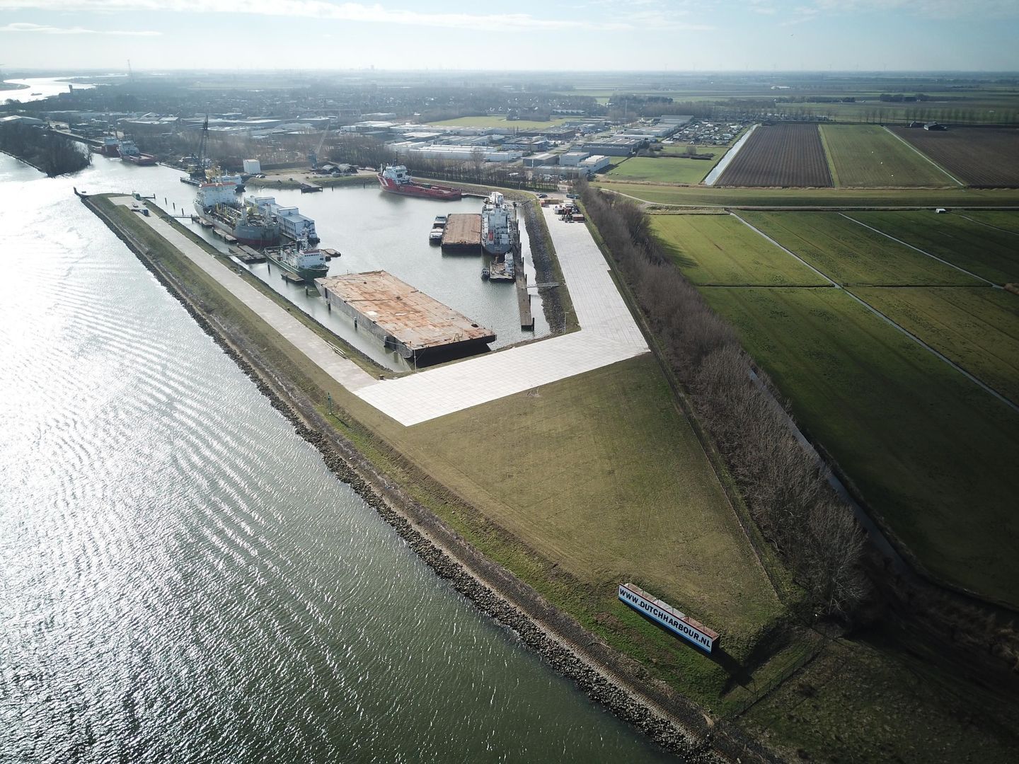 Aan de Griendweg 14 in ’s-Gravendeel ligt DUTCH HARBOUR, een haven in de omgeving van Rotterdam, bestemd voor het opleggen van zeegaande schepen, pontons en binnenvaartschepen.