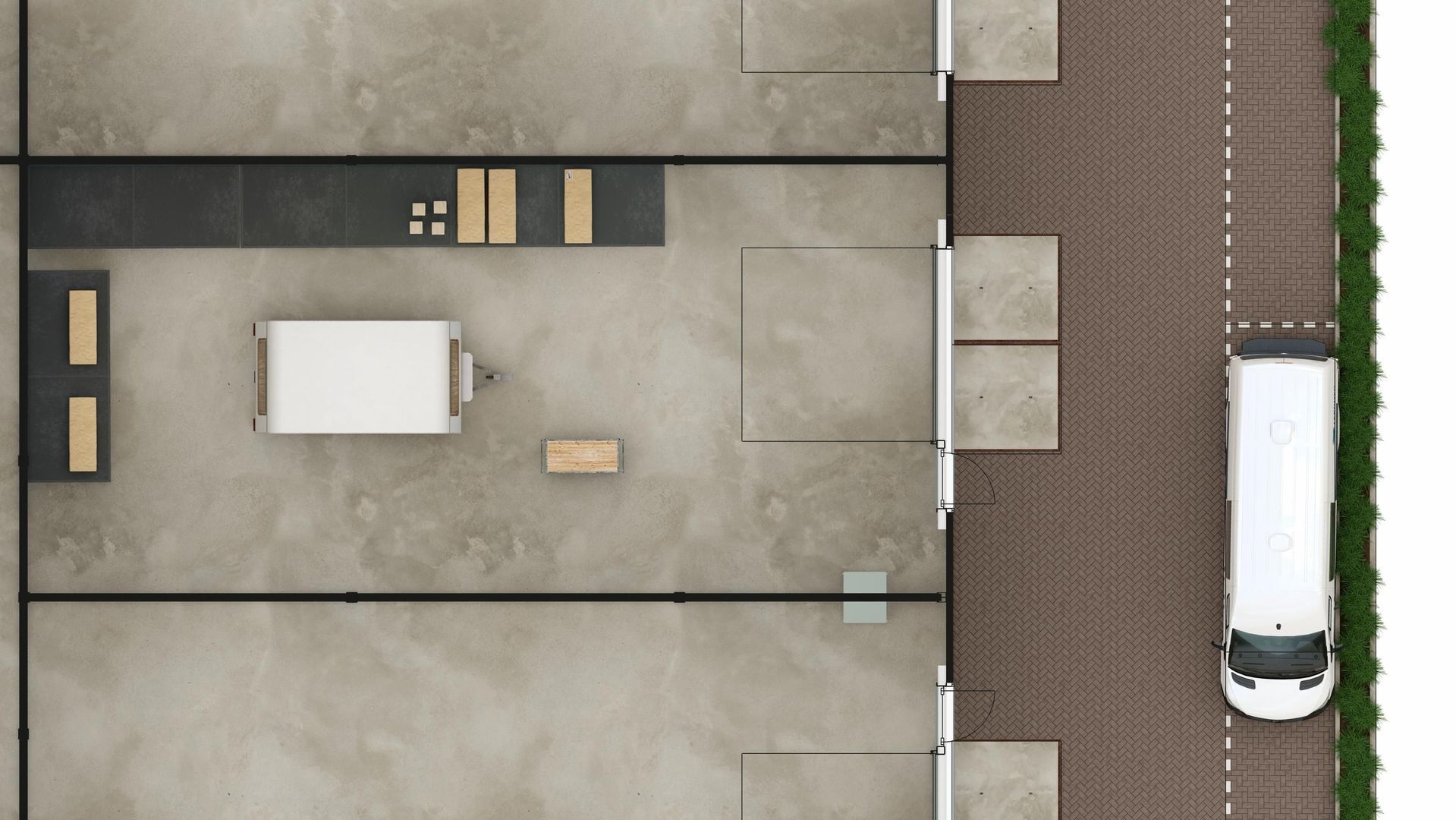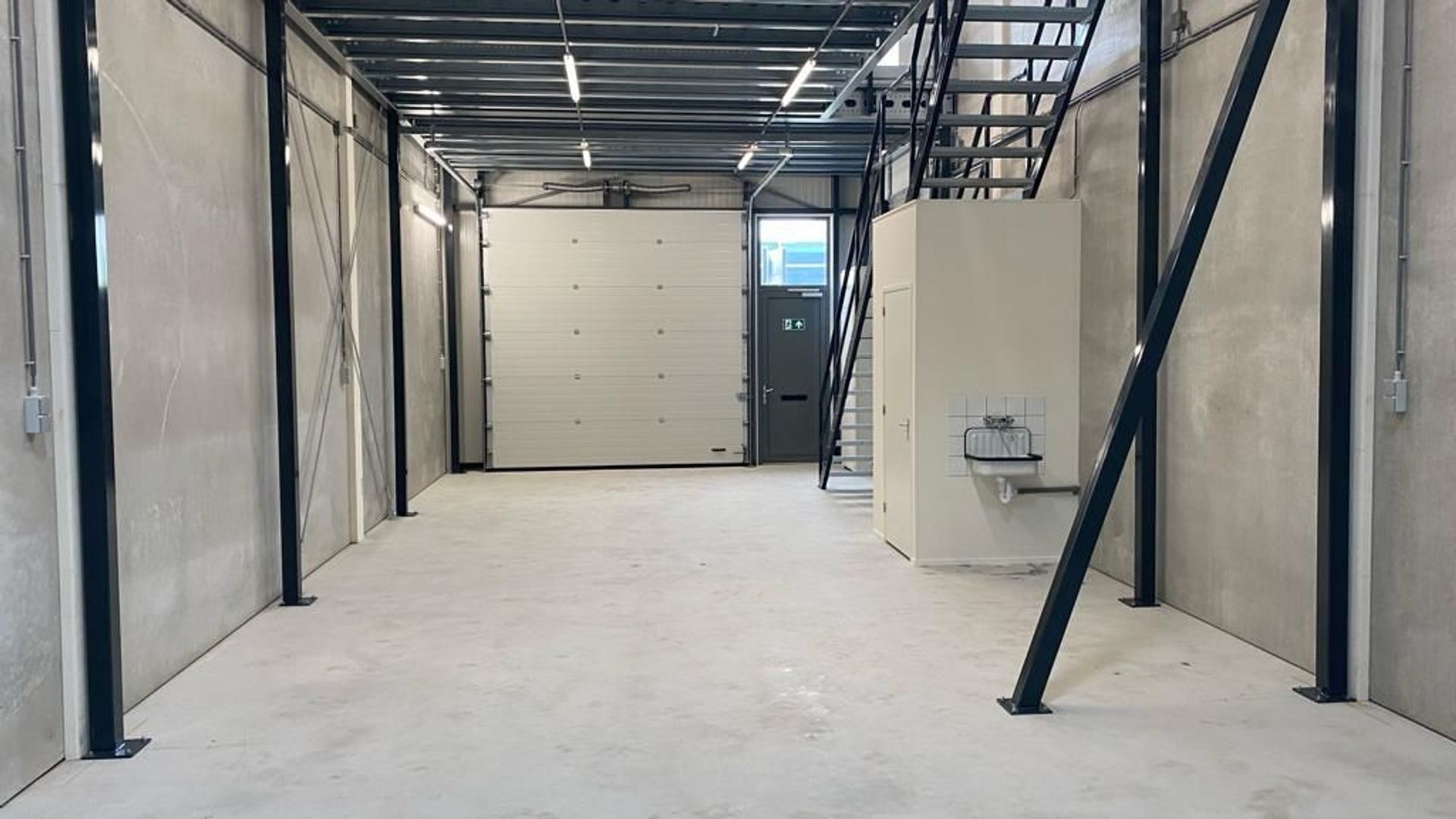 - Vrije hoogte begane grond: 6.8m /(3.5m onder verdiepingsvloer)