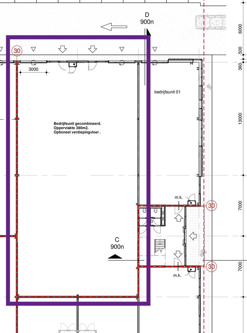 Door de flexibele opzet van de bouw is het mogelijk units 3 en 5 en een deel van units 4 en 6 samen te voegen naar een grote unit van 380m2.