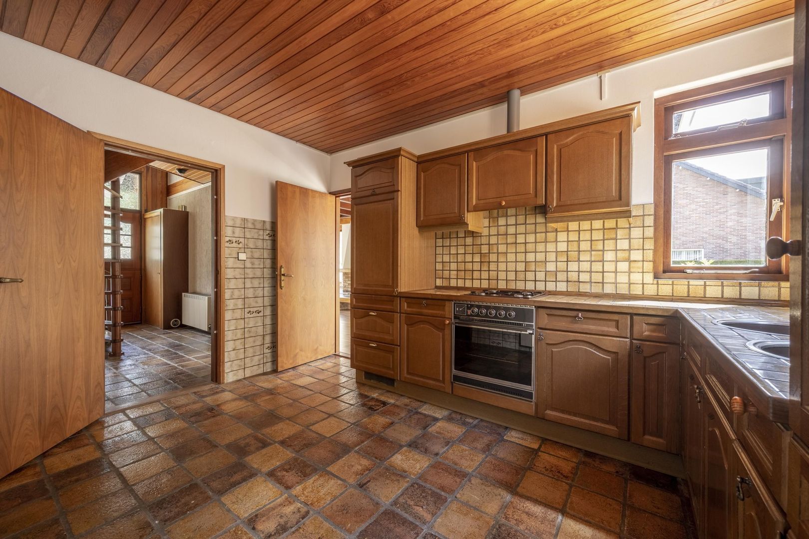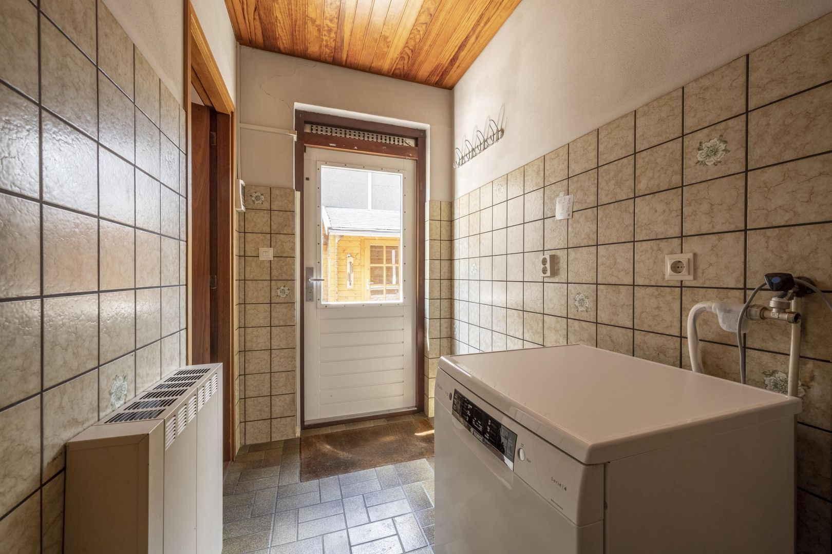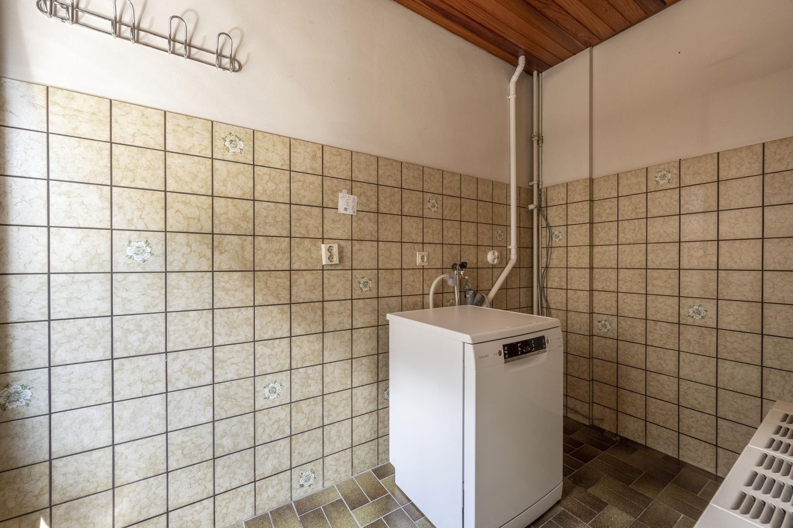 De woning is degelijk en solide en heeft alle voorzieningen gelijkvloers. Buiten de hal met trapopgang, zijn er de woonkamer met keuken, kelderkast en bijkeuken, tevens twee slaapkamers en een badkamer.