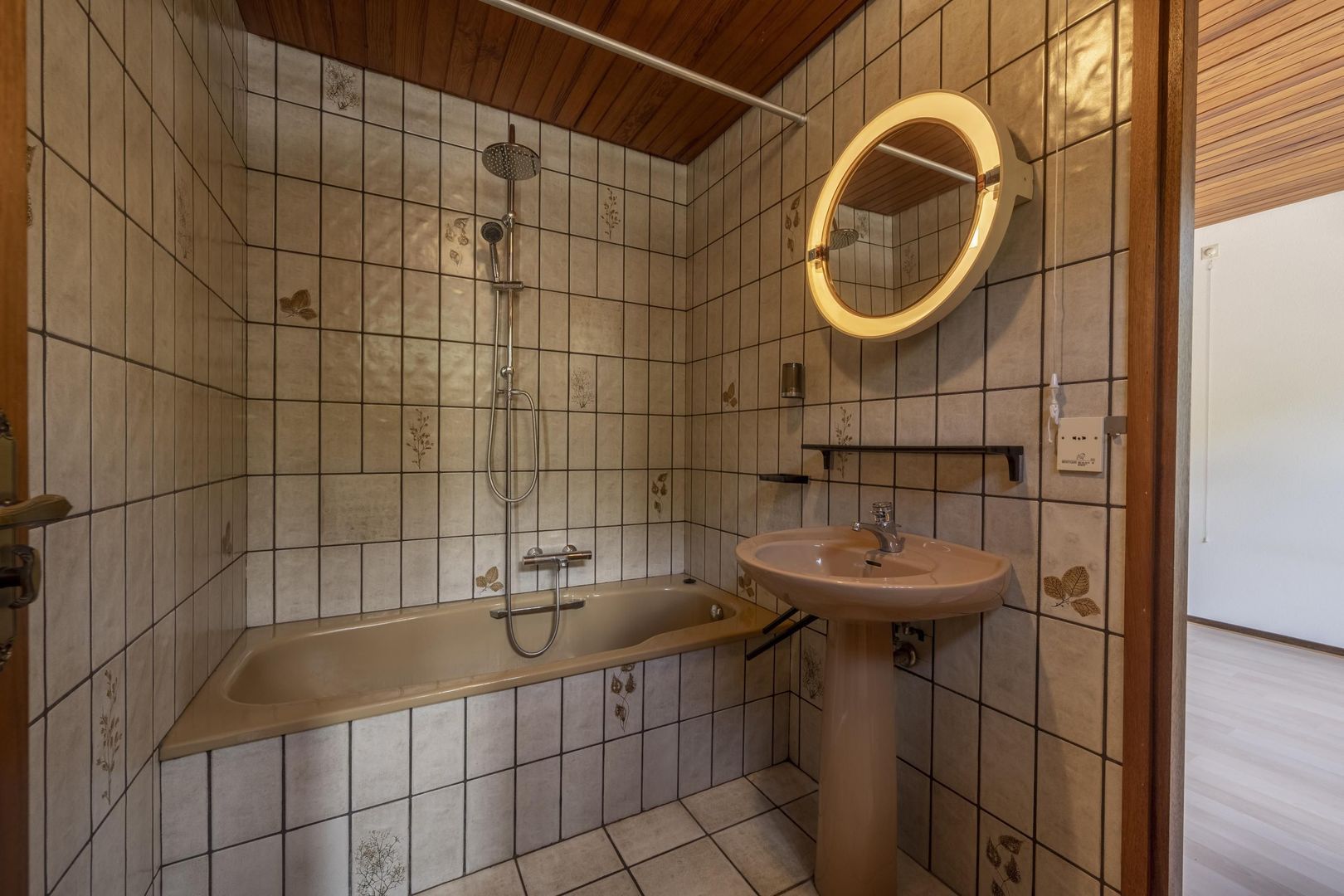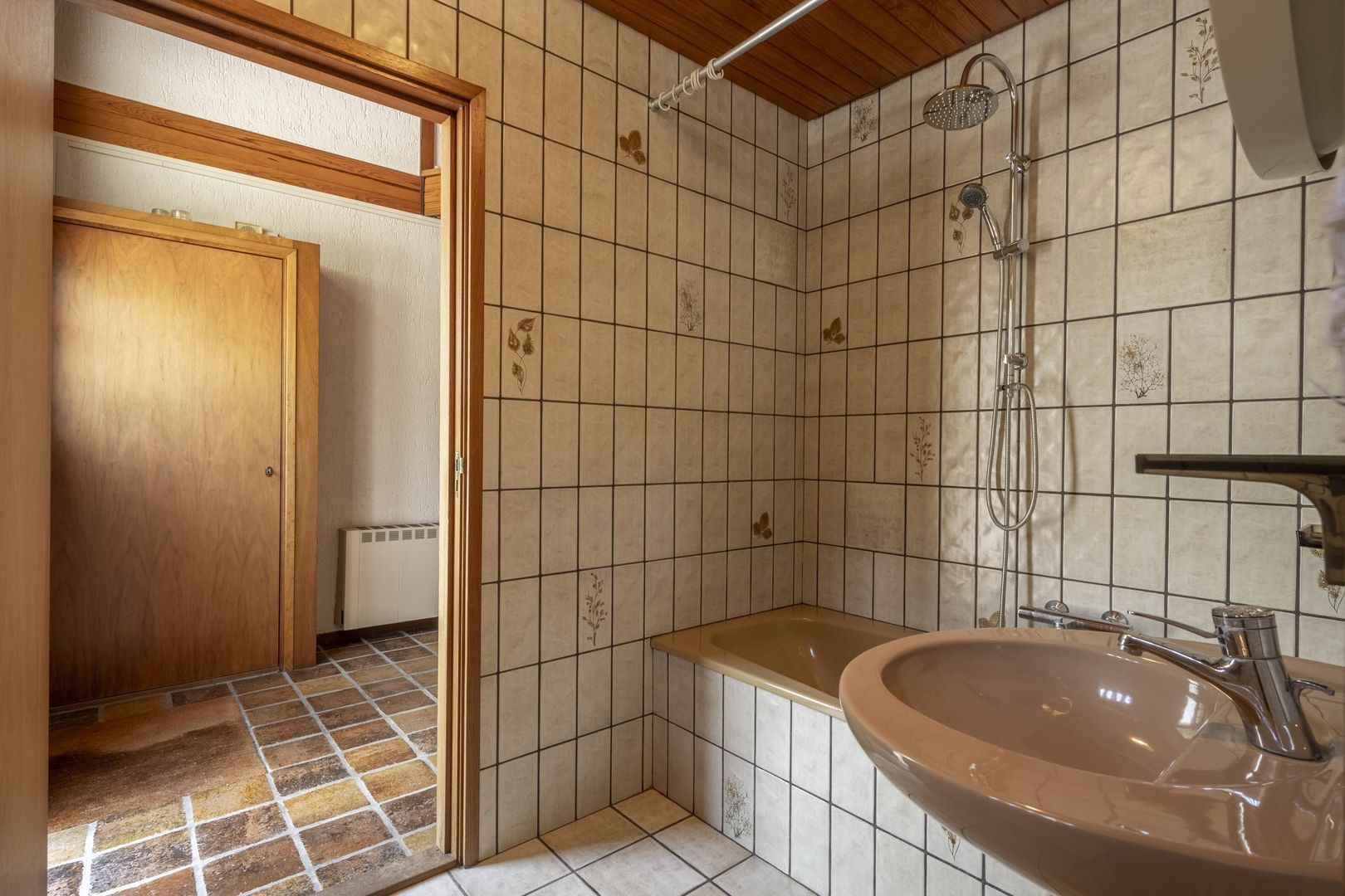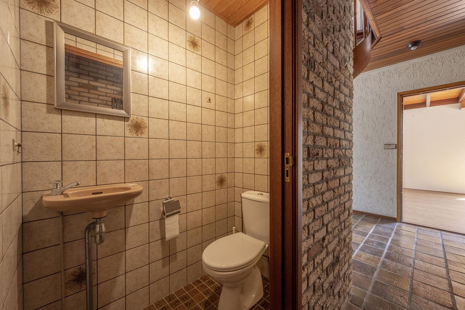De woning is degelijk en solide en heeft alle voorzieningen gelijkvloers. Buiten de hal met trapopgang, zijn er de woonkamer met keuken, kelderkast en bijkeuken, tevens twee slaapkamers en een badkamer.