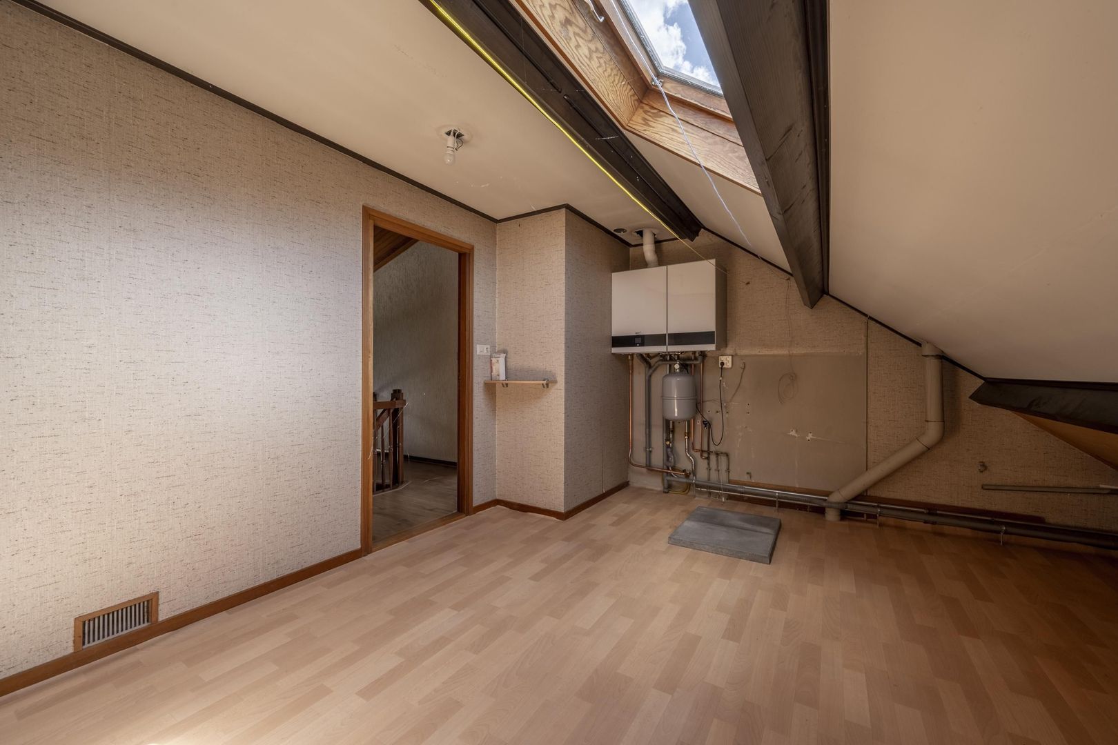 De verdieping is met een vaste trap bereikbaar en biedt nu ruimte aan een vide, een slaapkamer, een tweede badkamer en een vaste kast. Het is mogelijk nog een extra slaapkamer te maken.
