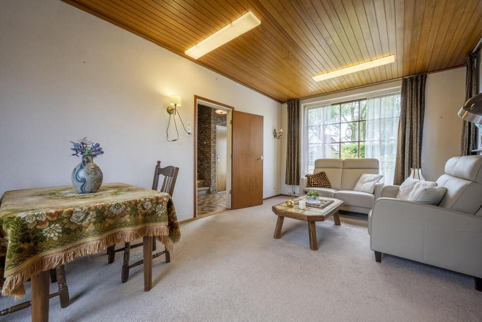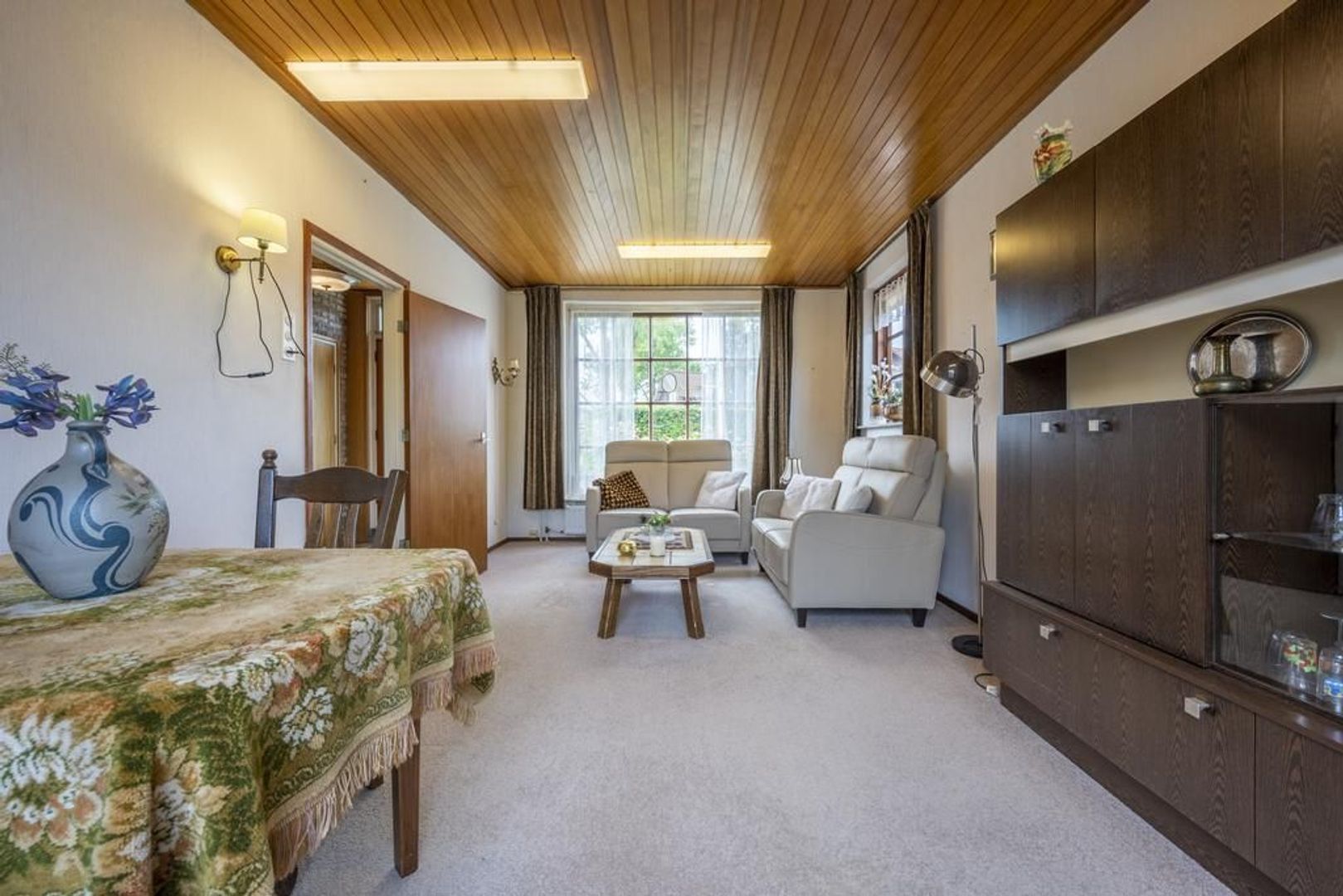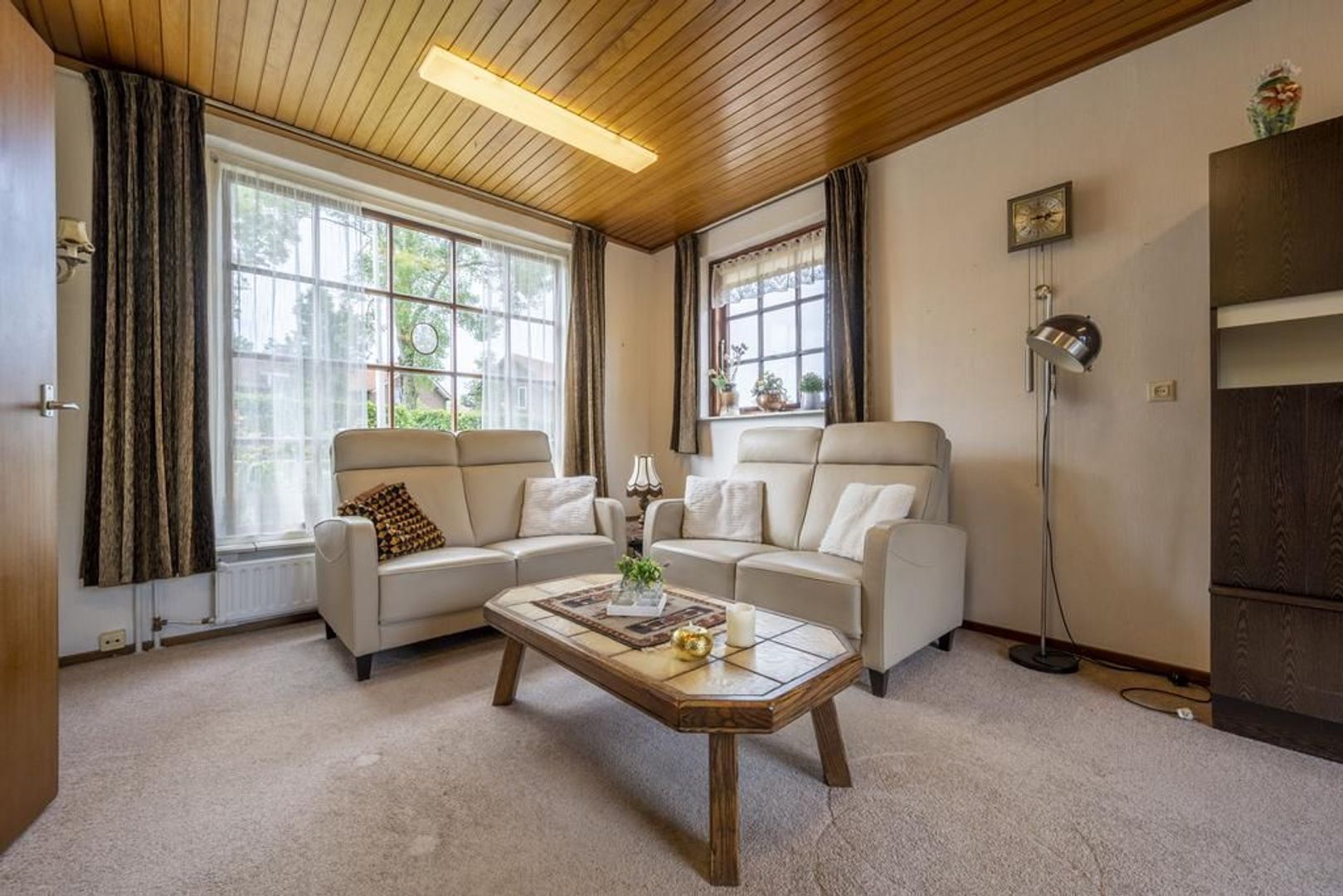 Dichte woonkamer met prettige lichtinval vanwege de grote raampartijen.