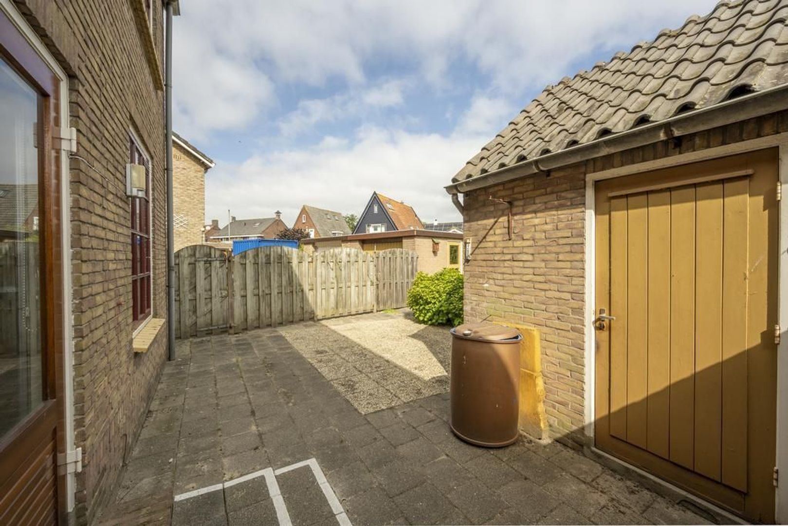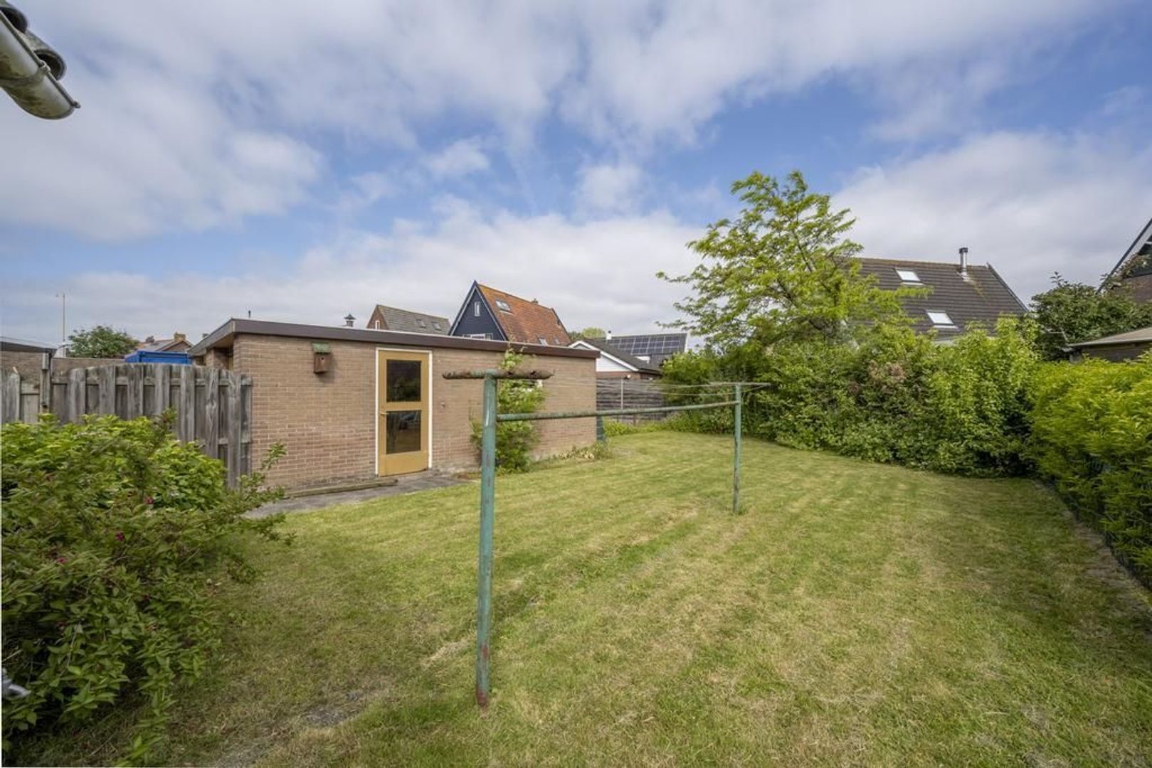 De tuin ligt op het noorden en is wel twintig meter diep. Liefhebbers van zon vinden dus altijd een geschikt plekje. Halverwege de tuin staat een halfvrijstaande stenen berging.