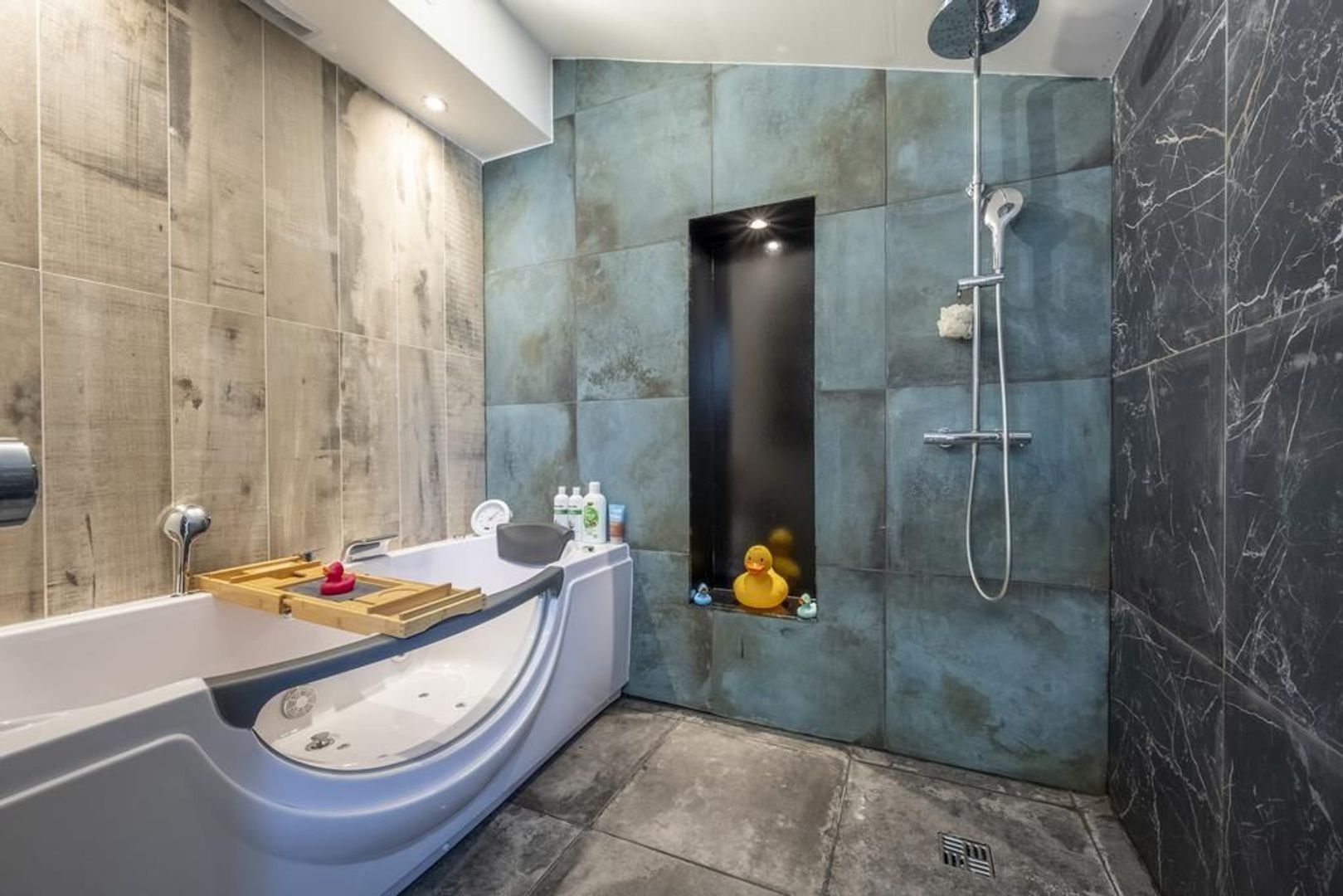 De badkamer is groot en nieuw! Deze is ingericht met een bubbelbad, een inloopdouche, een dubbel wastafelmeubel en een tweede toilet en is voorzien van vloerverwarming.
