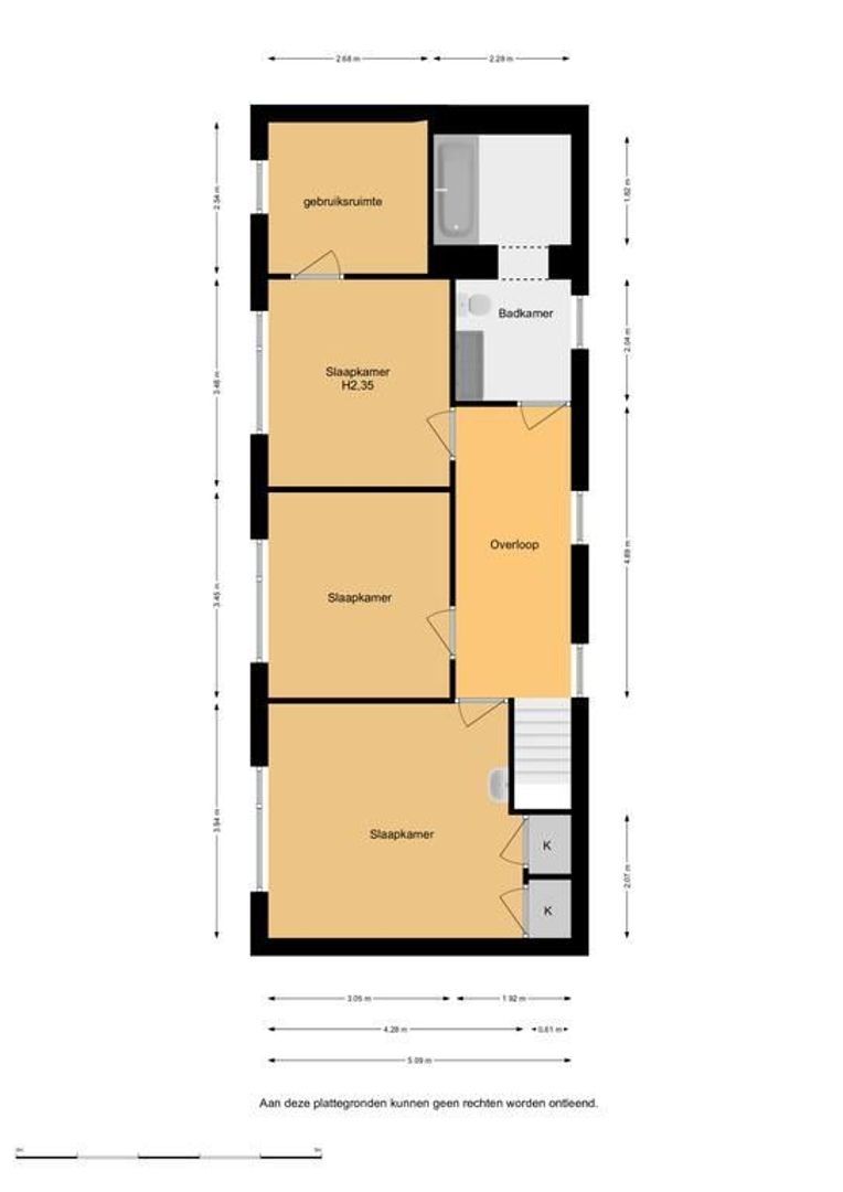 Op de eerste verdieping zijn drie slaapkamers en een extra gebruiksruimte (achter de slaapkamers). De slaapkamer aan de voorkant beschikt over een vaste kast en een wastafel.