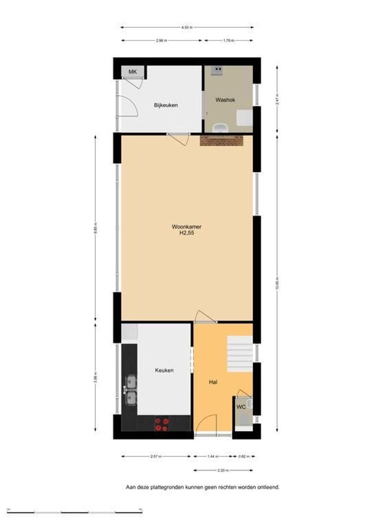 De indeling is als volgt: entree, hal met toiletruimte en trapopgang. De dichte keuken heeft een wat gedateerde inrichting in een L-vorm en is voorzien van enkele inbouwapparaten.