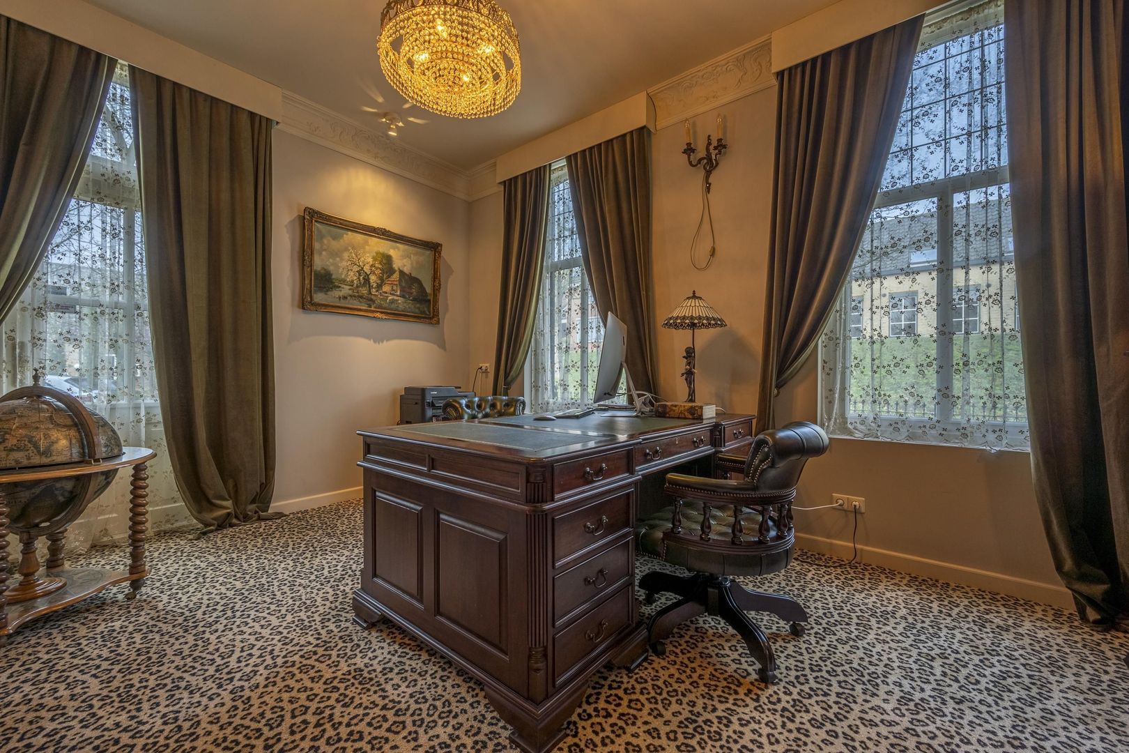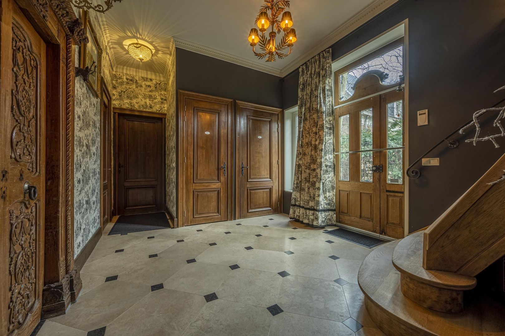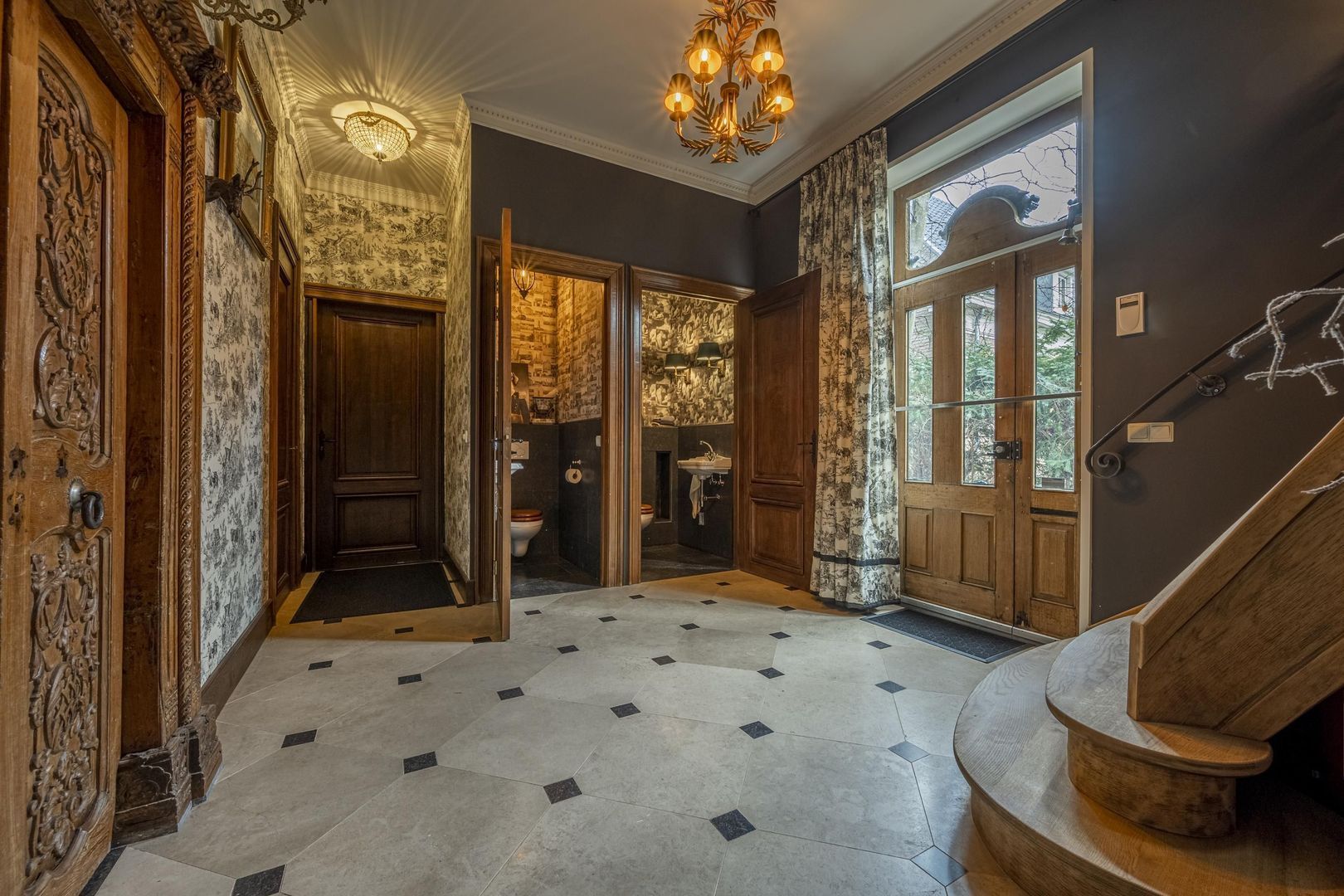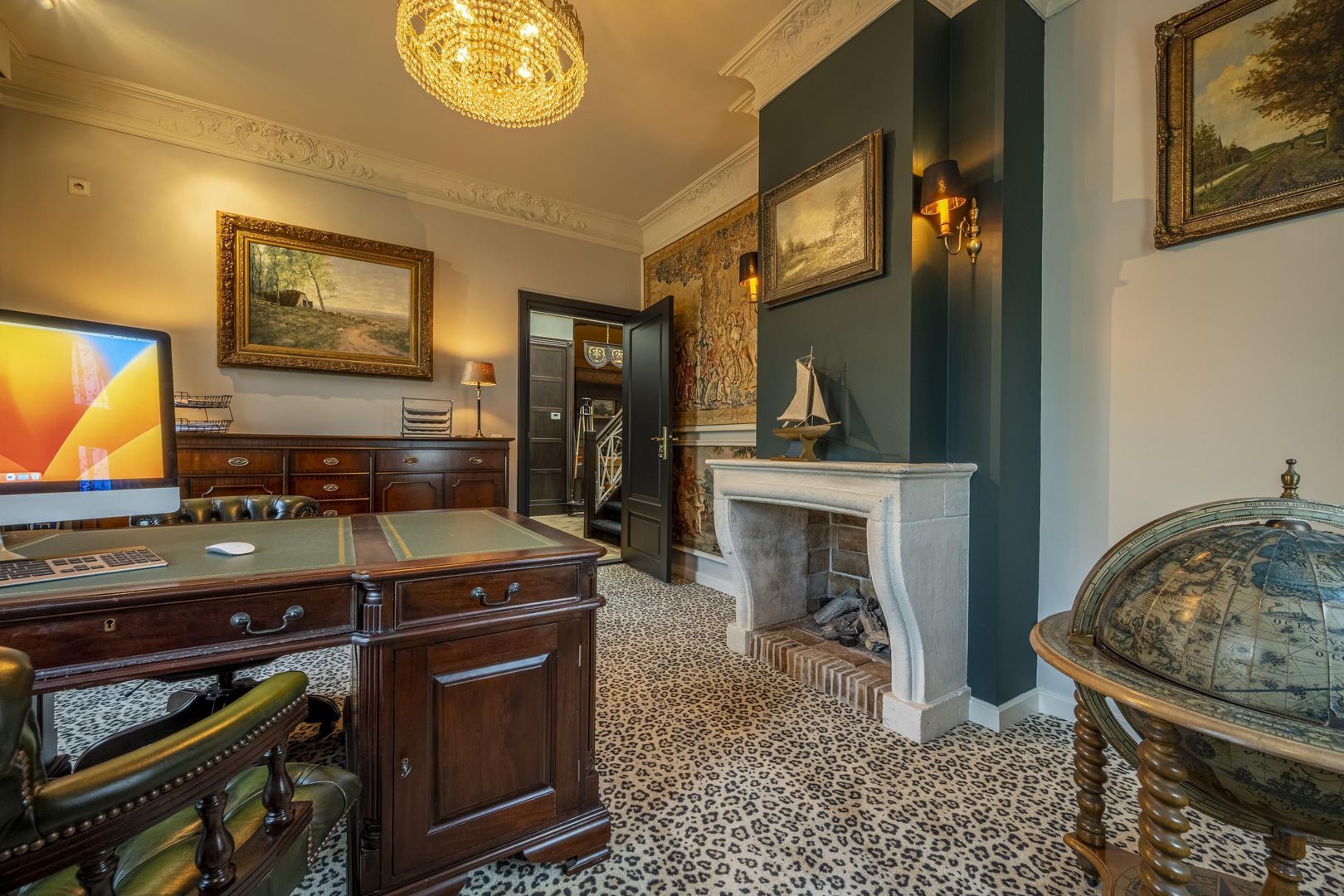 Extern wordt het oog getrokken door de fraaie detailleringen in de gevels met onder andere boogramen, oeils-de-boeuf, geknipte voegen en zinken afwerkingen. Intern springen de imposante trappartijen, de vele schouwen, hoogwaardige parketvloeren, glas-in-loodramen en dergelijke in het oog. De serre is een waar pronkstuk, met mooie belijningen en decoraties en diverse openslaande deuren.