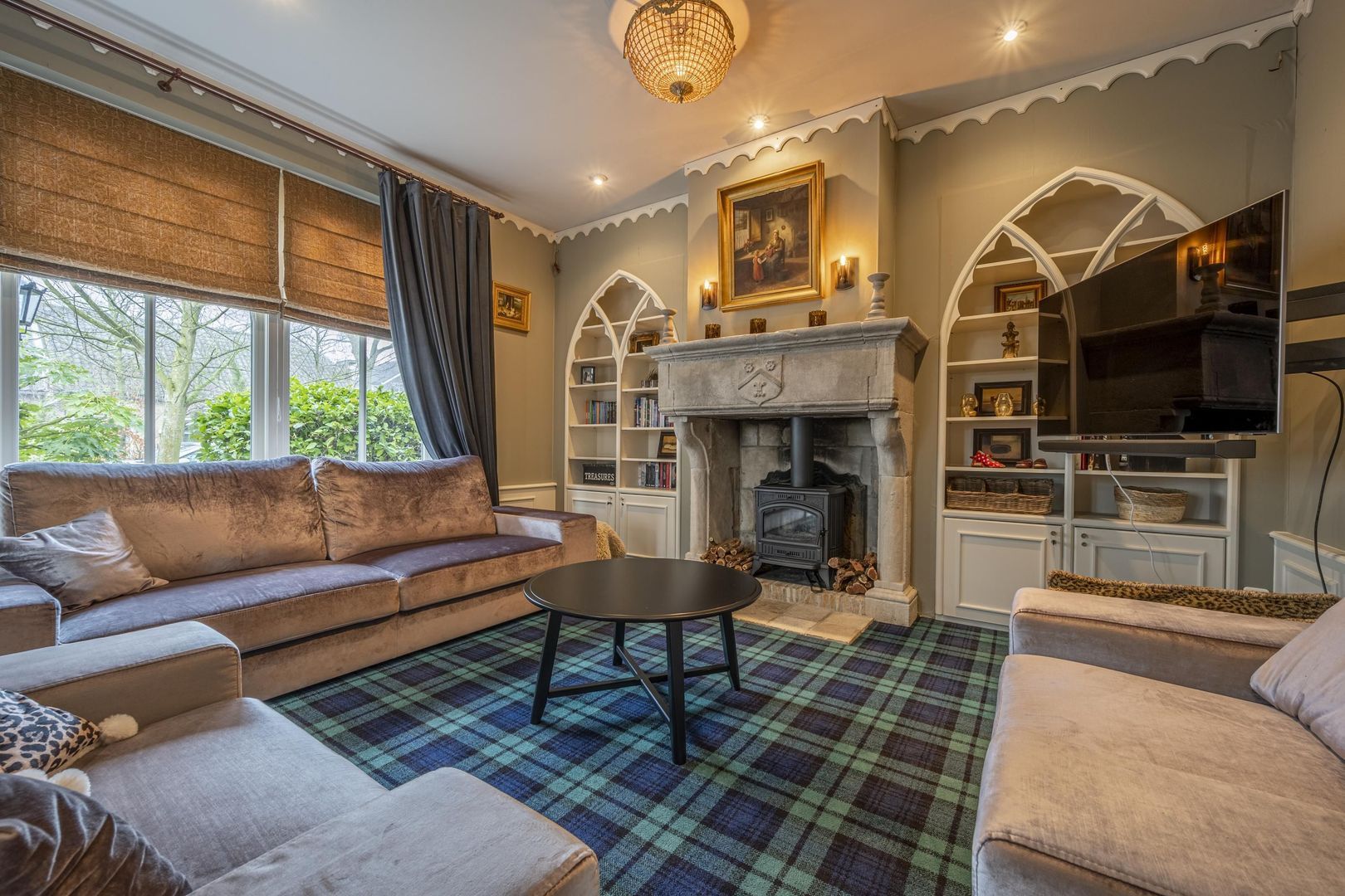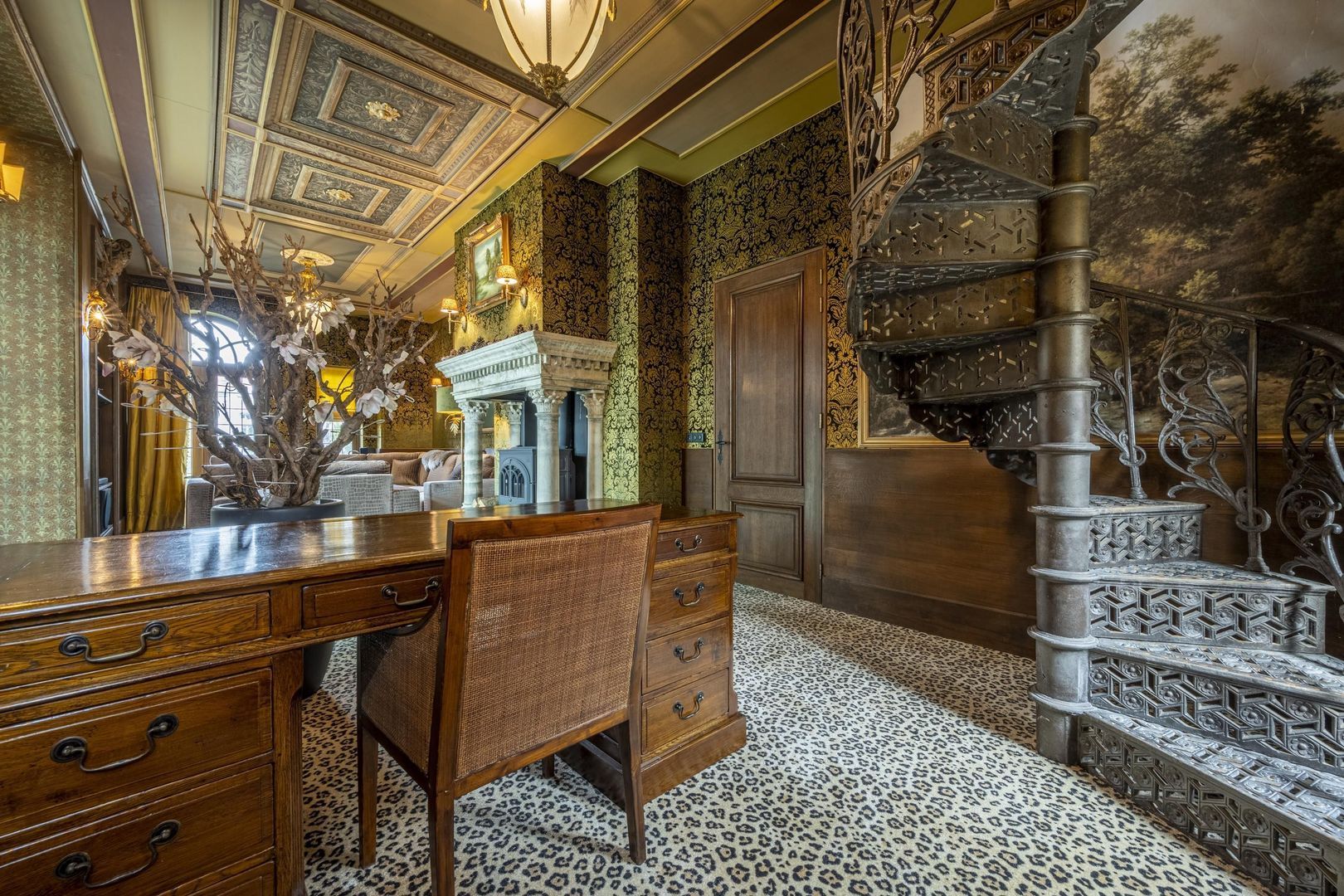 Het landhuis is gebouwd in een mix van Victoriaanse en Engelse stijl, wat zowel qua bouwstijl als afwerking