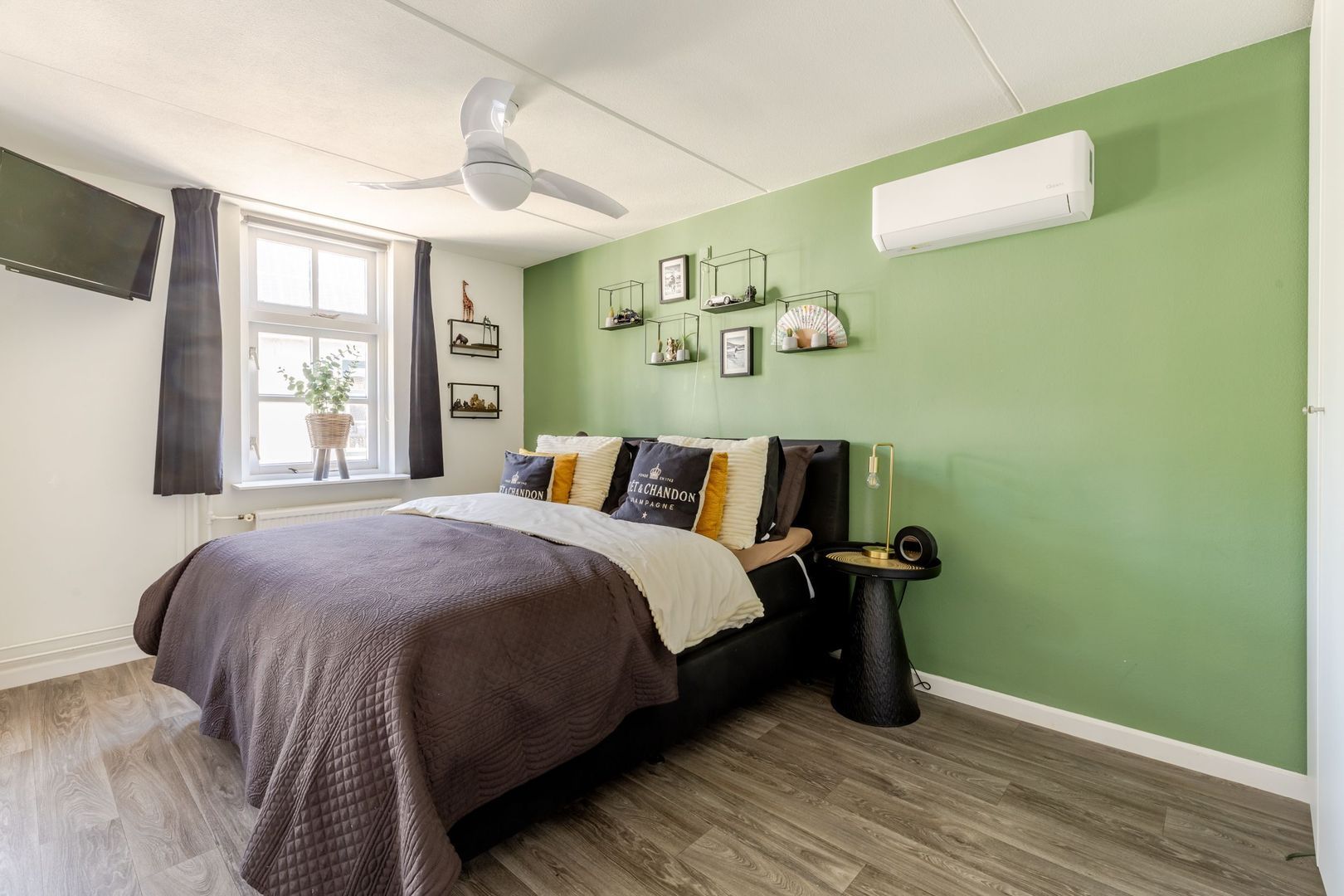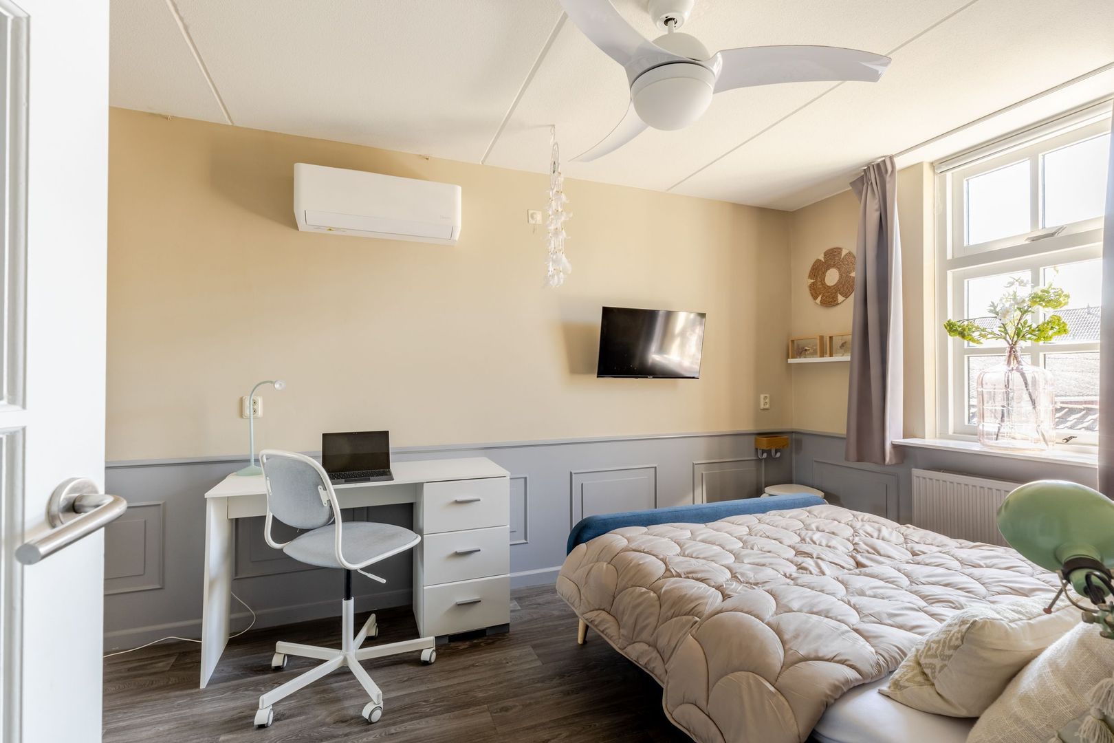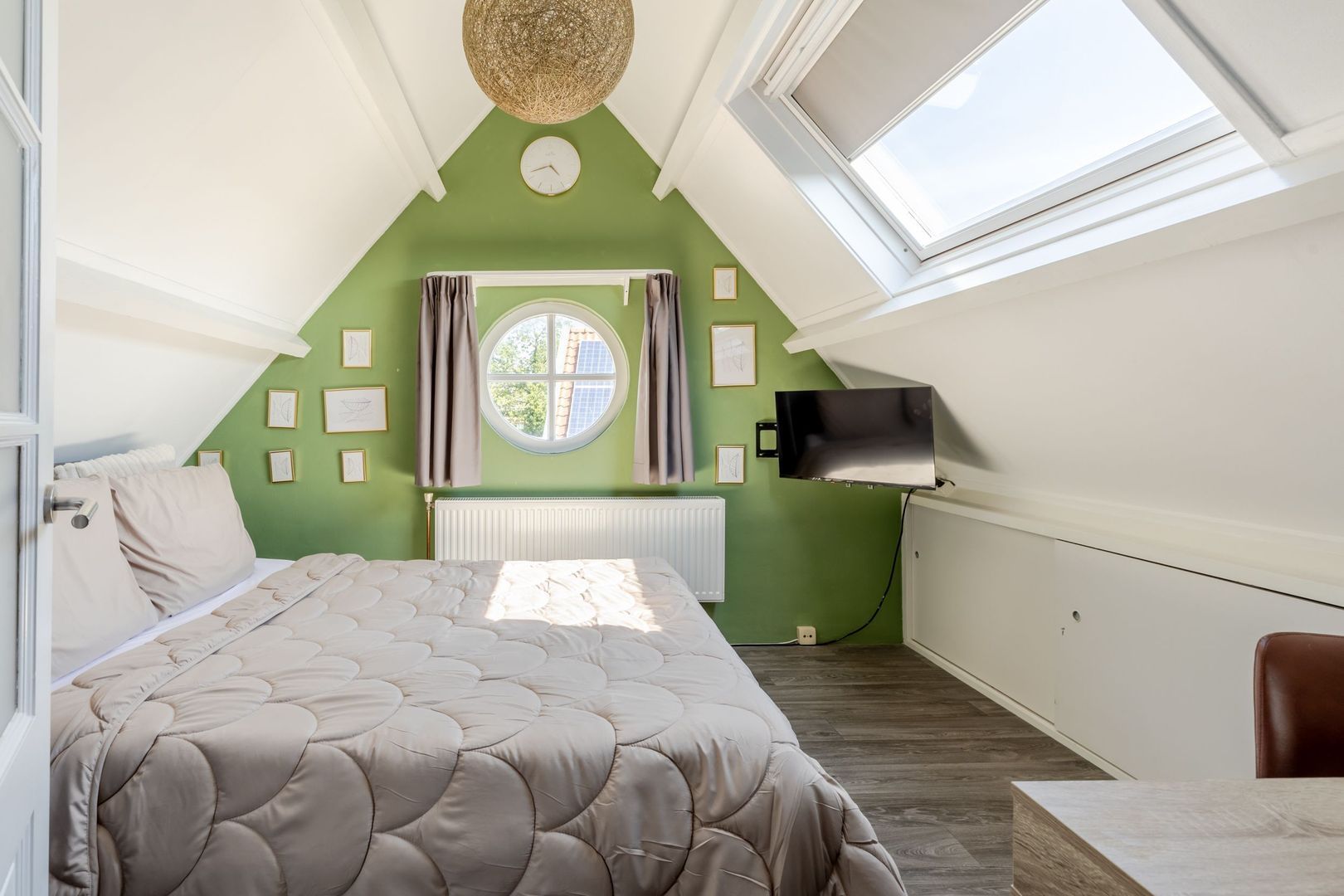 De samengevoegde slaapkamer ligt aan de voorkant. Het is mogelijk om deze op redelijk eenvoudige wijze weer te splitsen in twee kamers.