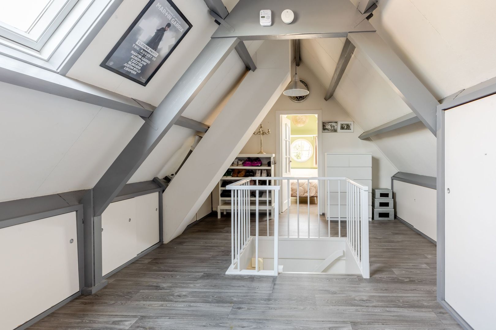 De tweede verdieping is groter dan je zou denken. Op de zolder is veel praktische bergruimte gemaakt door het plaatsen van schuifwanden/schotten. De derde slaapkamer beschikt over een dakraam en het kenmerkende ronde raam in de kopgevel.