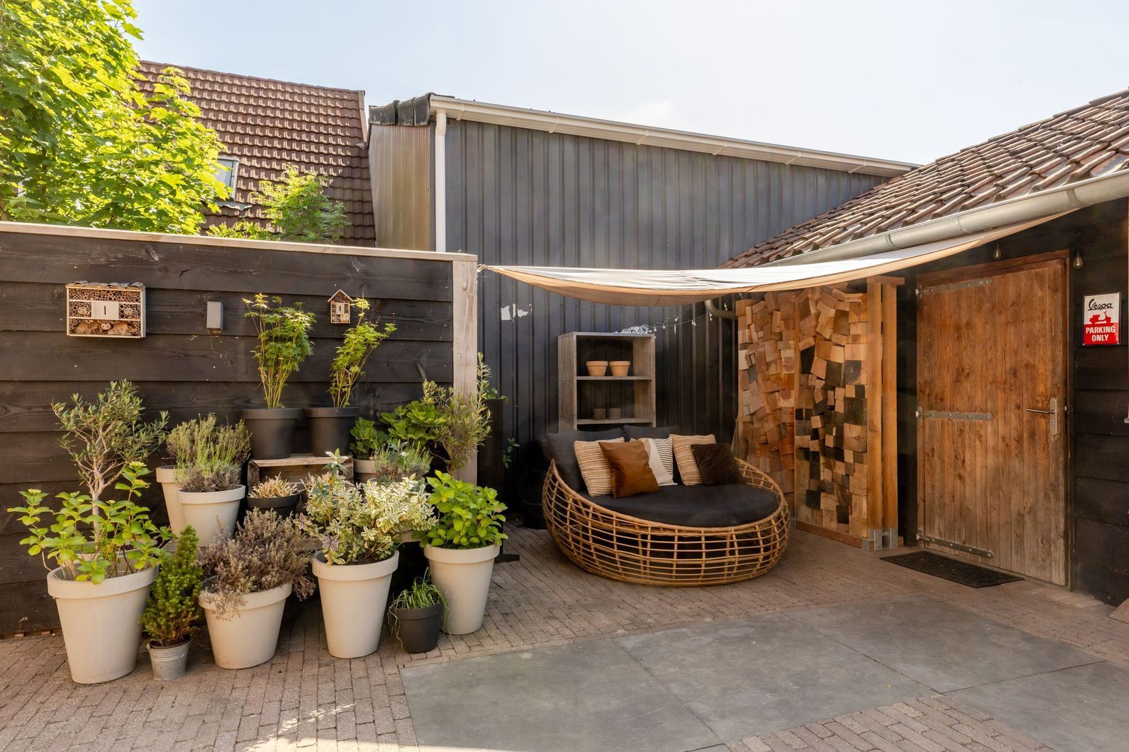 Eigentijds afgewerkt hoekhuis met stoere overkapping in de tuin, gelegen op leuke centrale plek in het dorp.