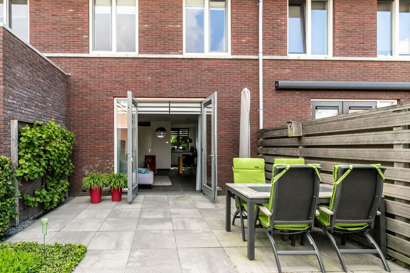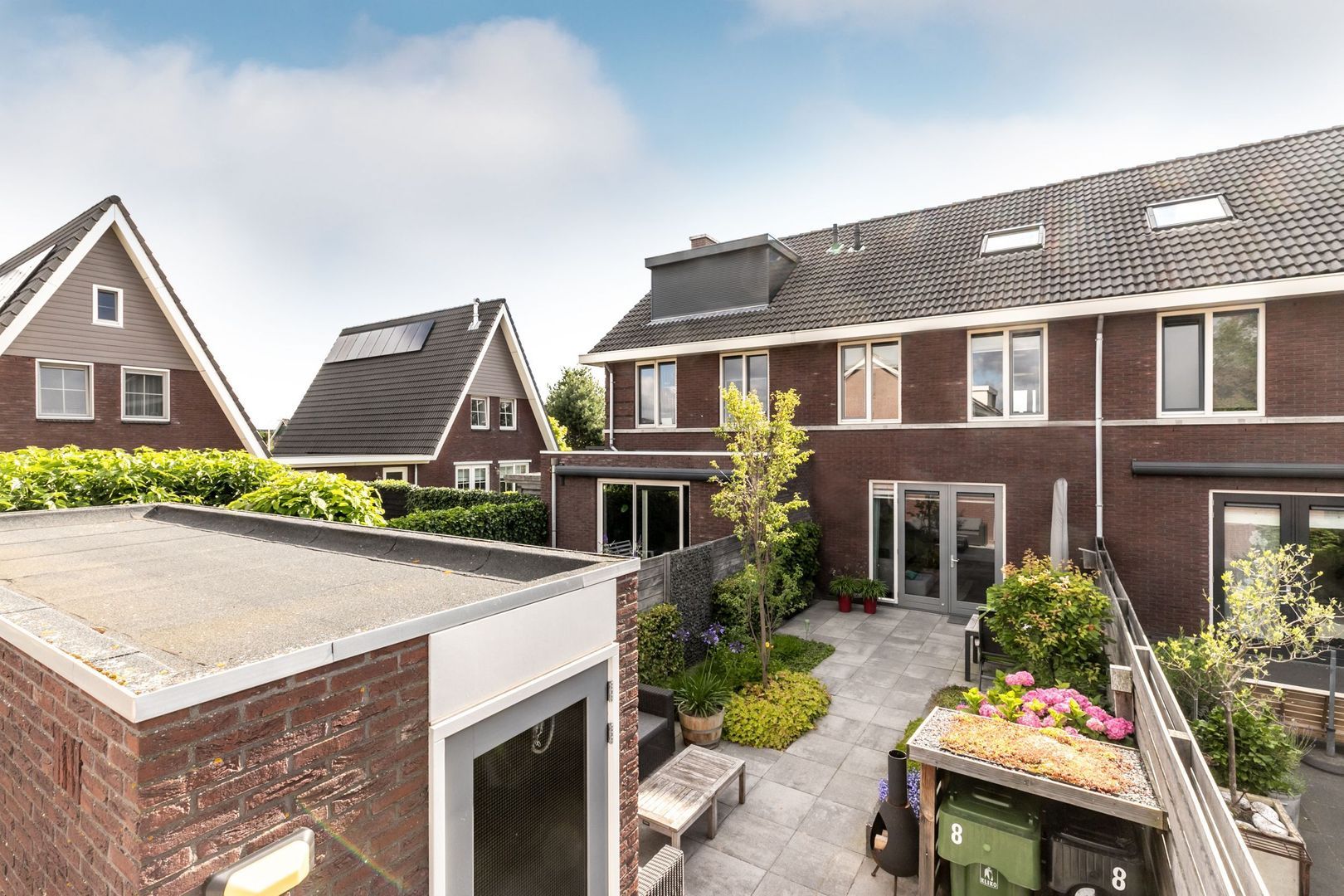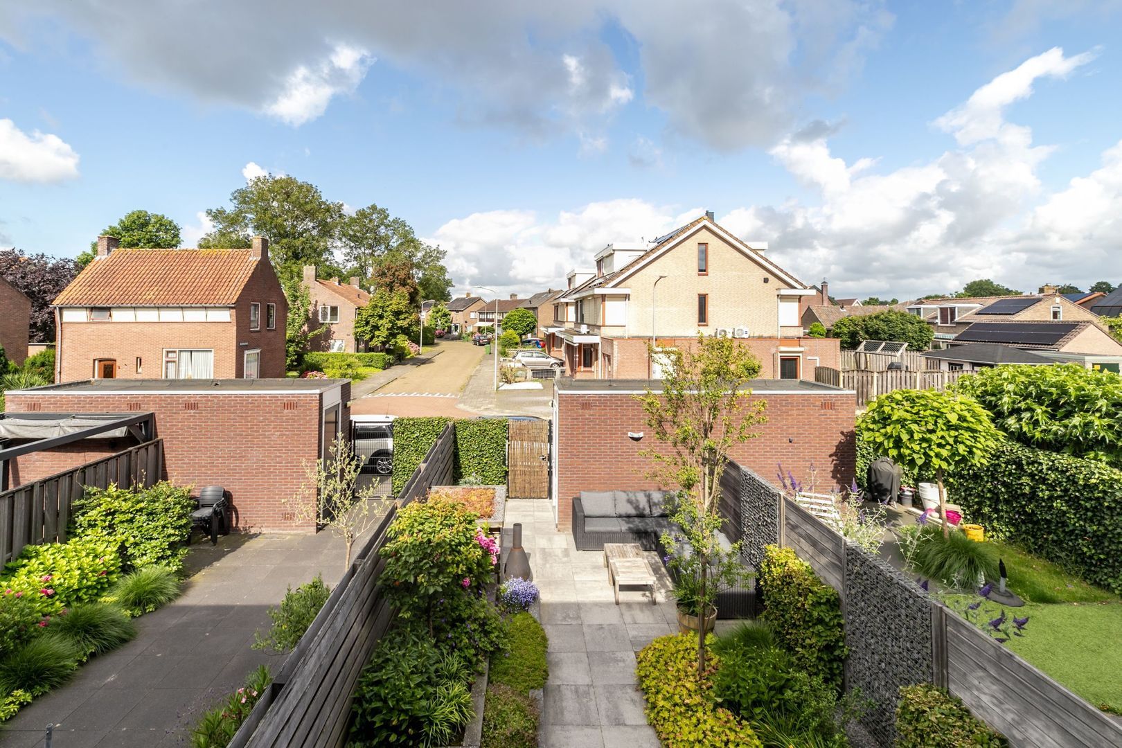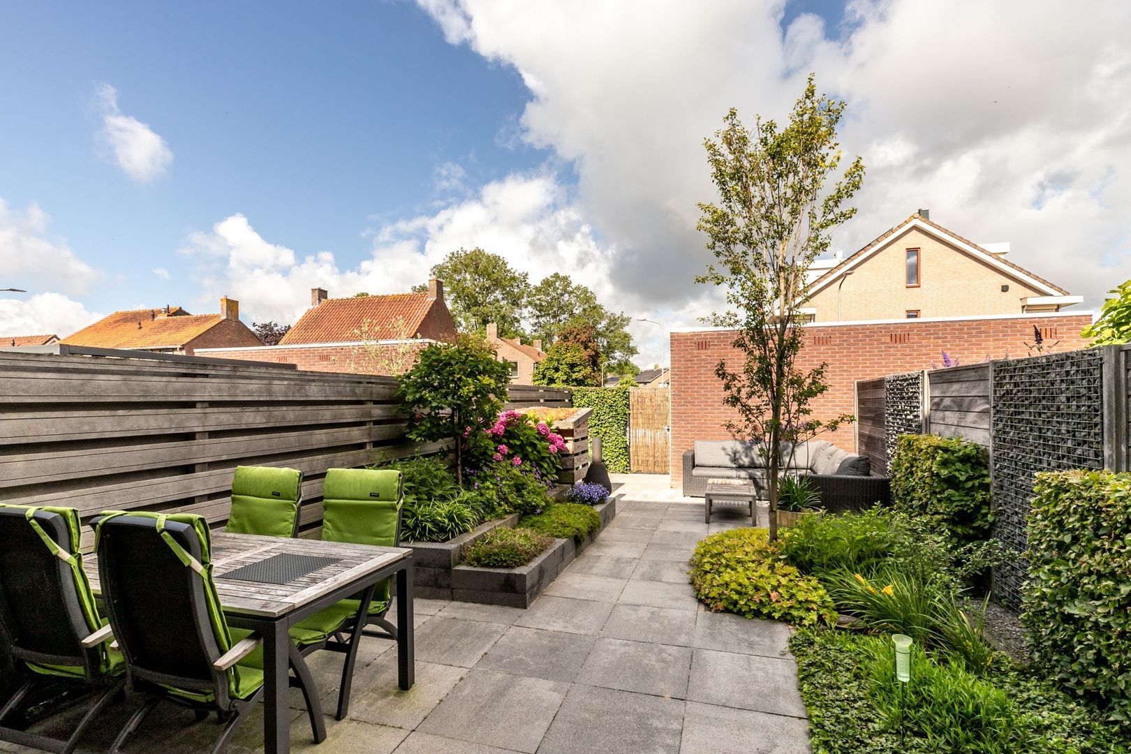 De achtertuin is circa 12 meter diep en heeft een gunstige tuinligging op het westen.