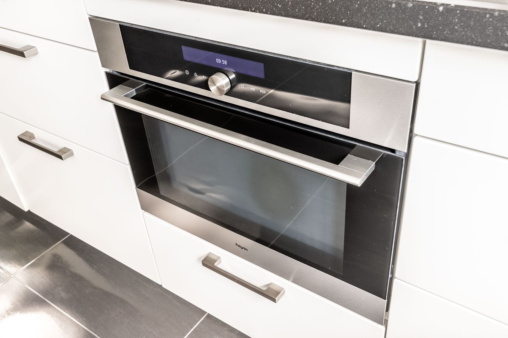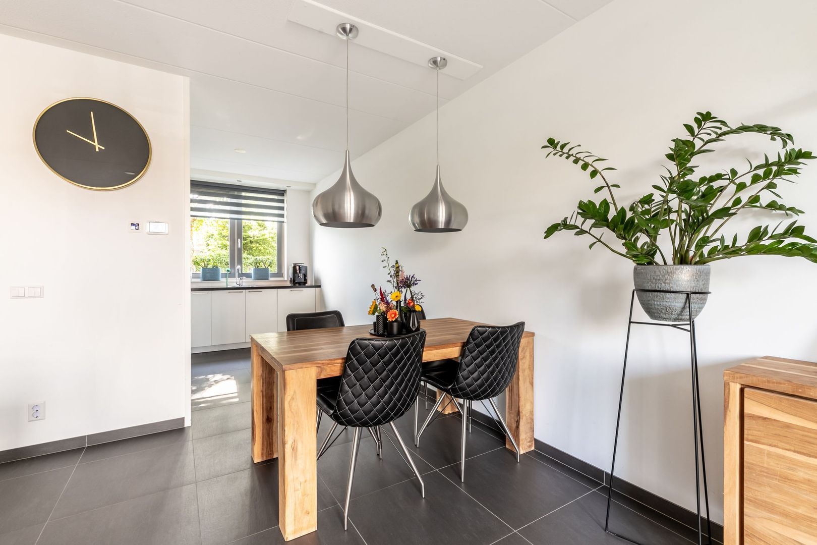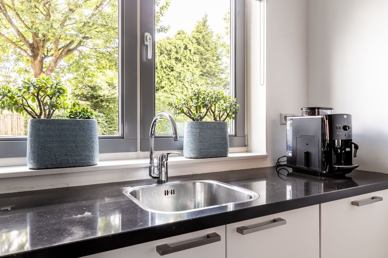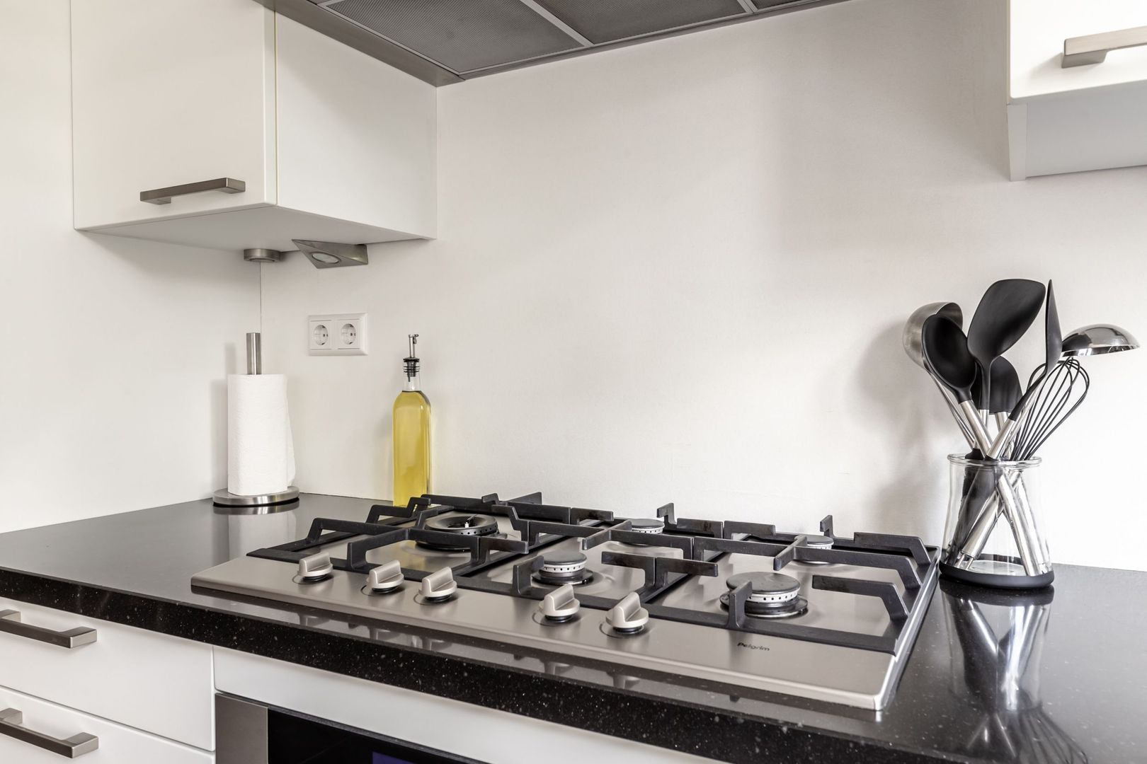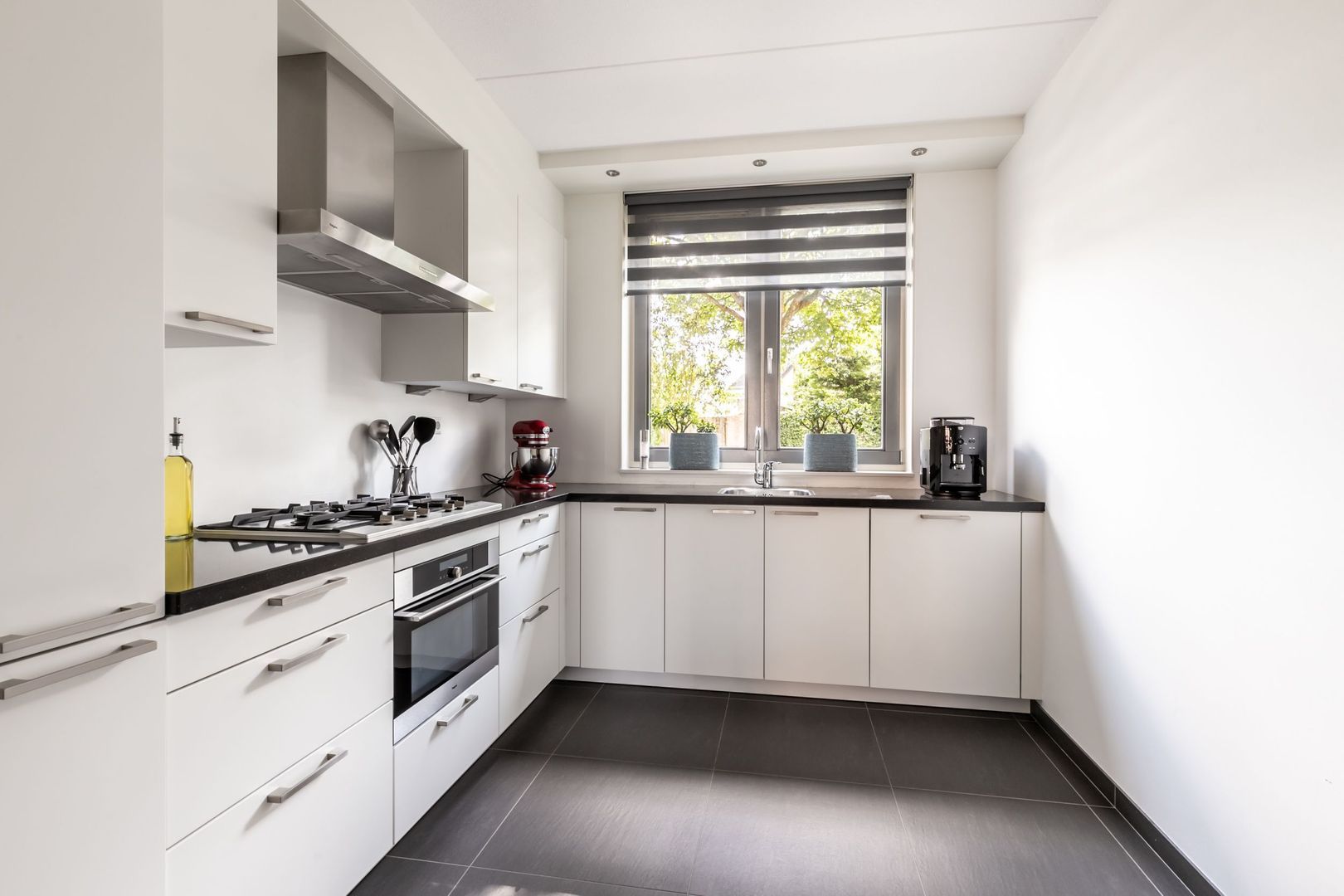 De open keuken staat aan de straatkant. Deze heeft een L-vormige inrichting en is voorzien van een hoogwaardig aanrechtblad, een koelvriescombinatie, zespits gaskookplaat, afzuigkap, combi-oven en vaatwasser. Een 10-liter boiler zorgt voor snel en voldoende warm water.
