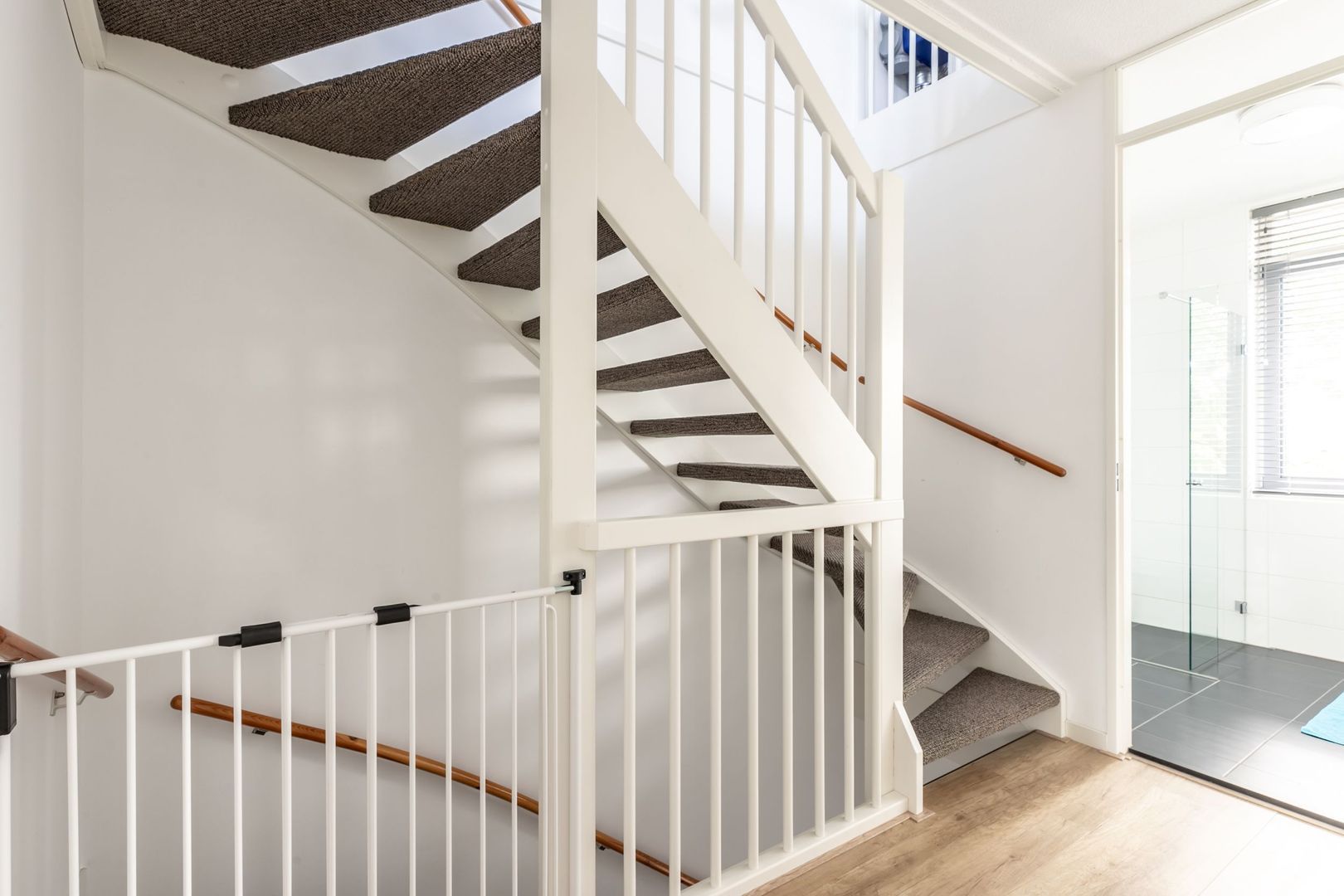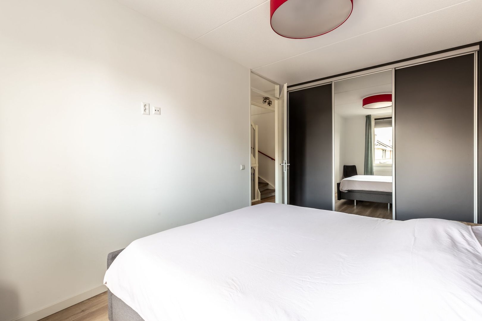 Op de eerste verdieping zijn drie slaapkamers en de badkamer. De grootste slaapkamer beschikt over een kastenwand. De vloer is afgewerkt met een moderne laminaatvloer.