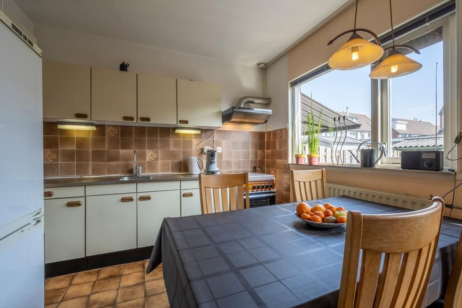 Keuken met afzuigkap en gasfornuis