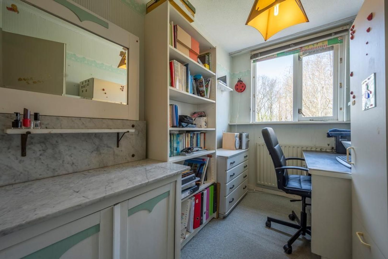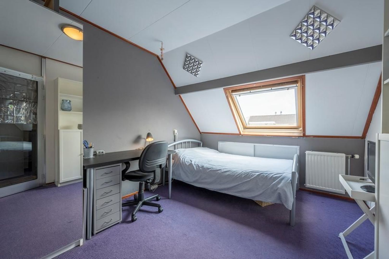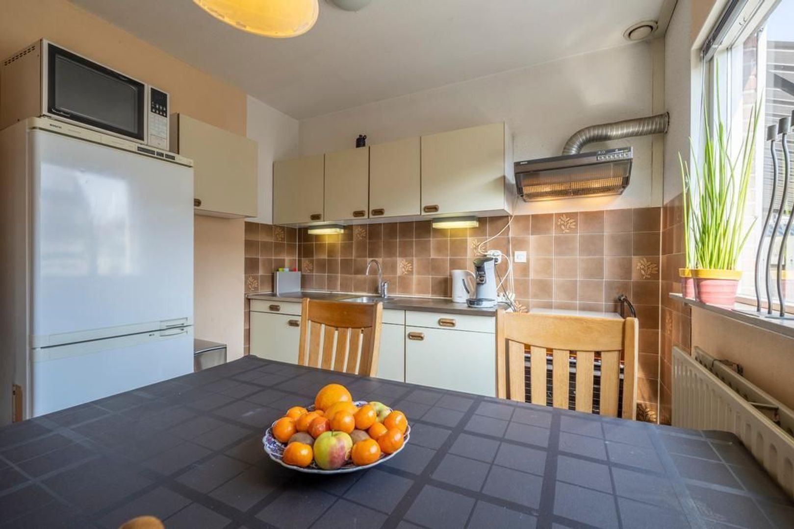 Een openslaand raam zorgt voor de mogelijkheid om te ventileren met frisse buitenlucht.