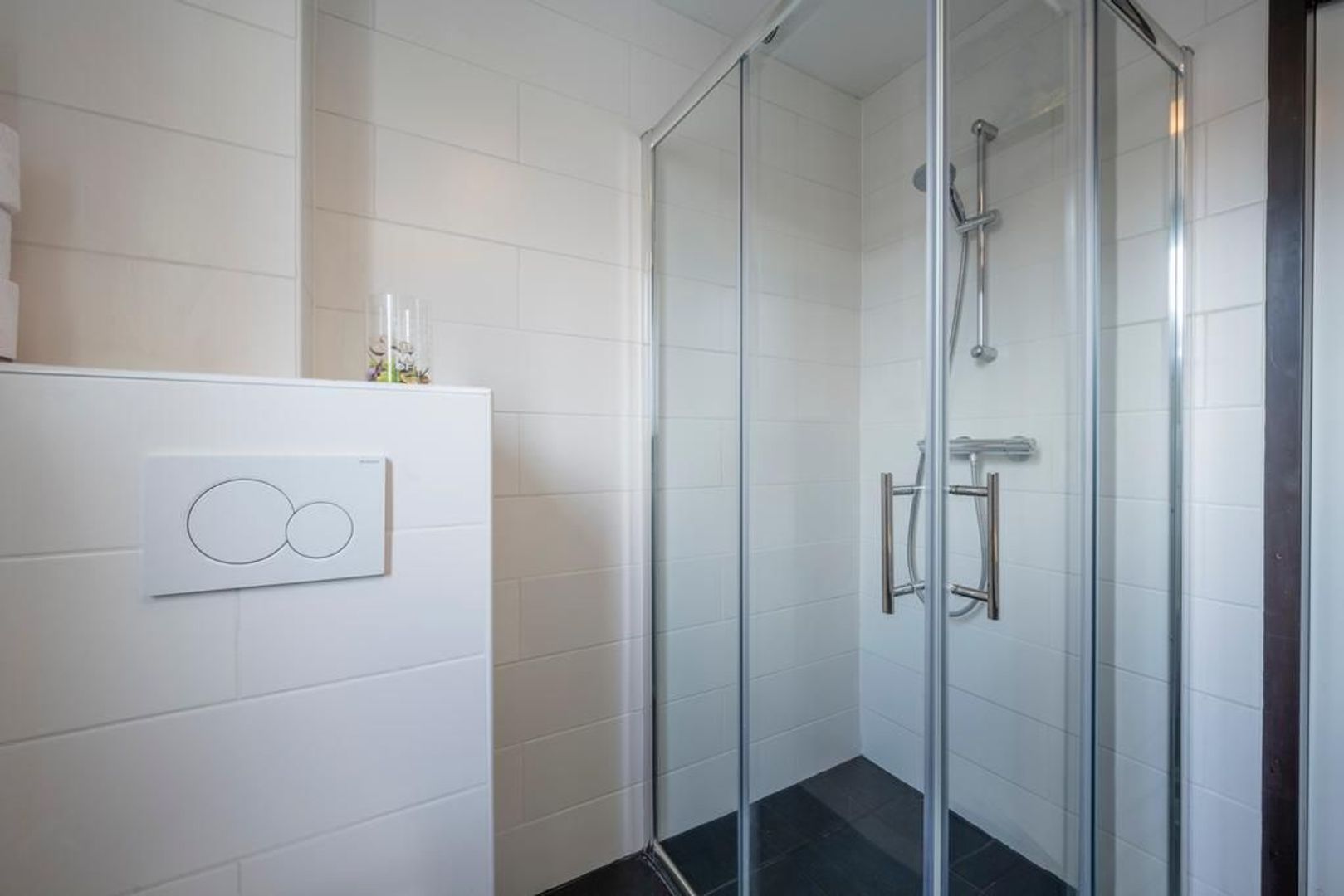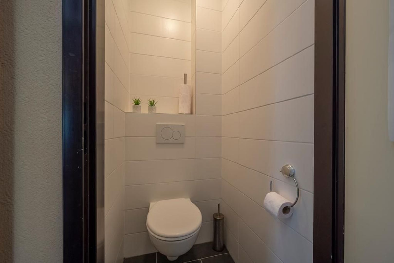 Hierin bevindt zich ook de toiletruimte. Deze is in 2019 vernieuwd en uitgevoerd met een wandcloset.