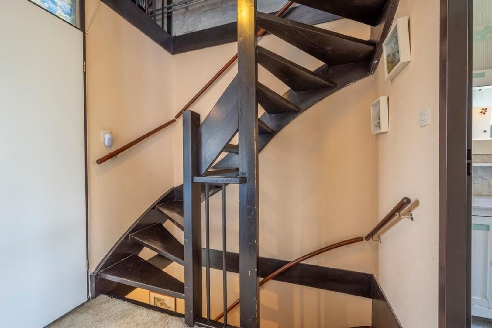 De tussenhal geeft toegang tot de eerste verdieping.