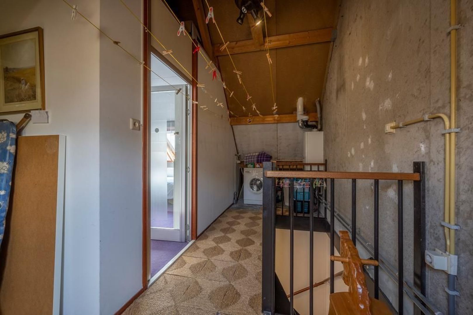 Op de tweede verdieping is een voorzolder met de aansluiting voor de wasmachine, cv-ketel en mechanische ventilatie.