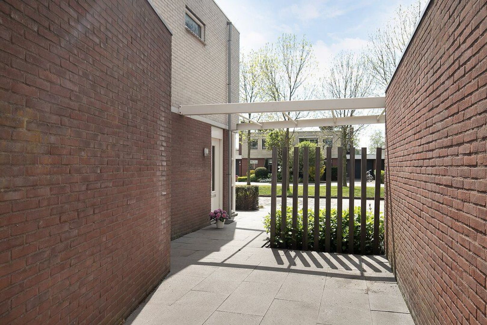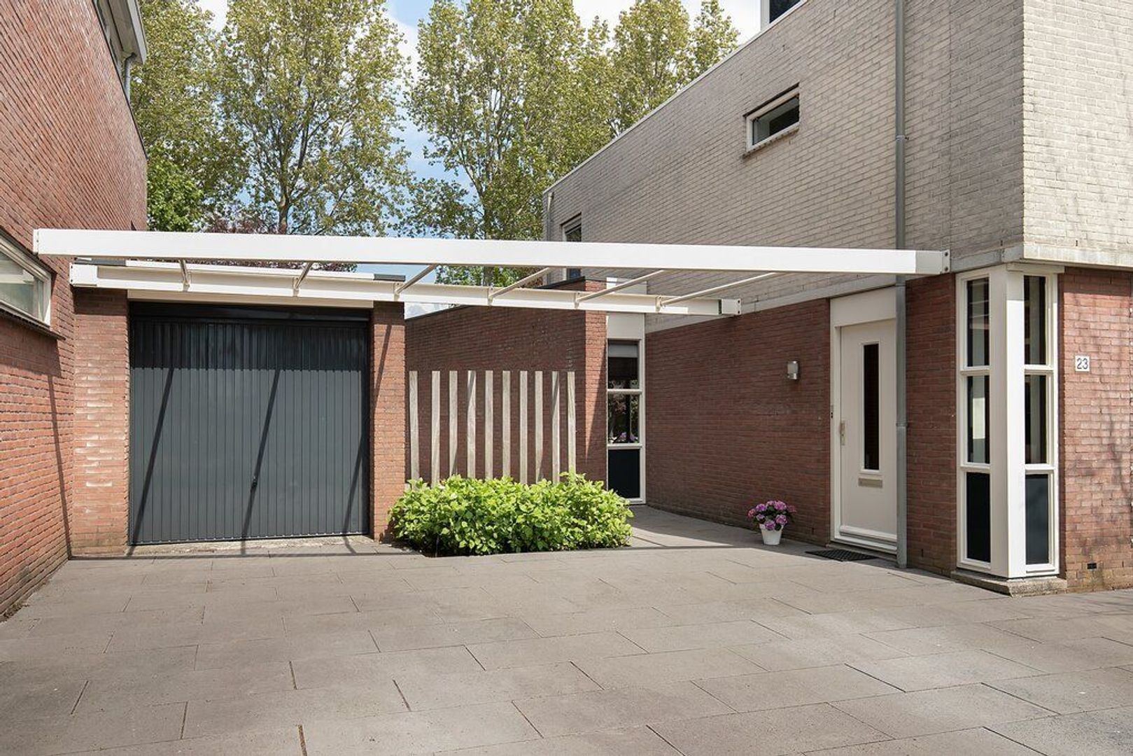 De garage is half vrijstaand en grenst aan de buurwoning. Op de oprit is ruimte om twee auto’s op eigen terrein te parkeren.
