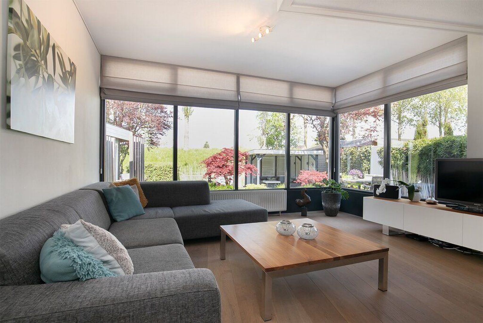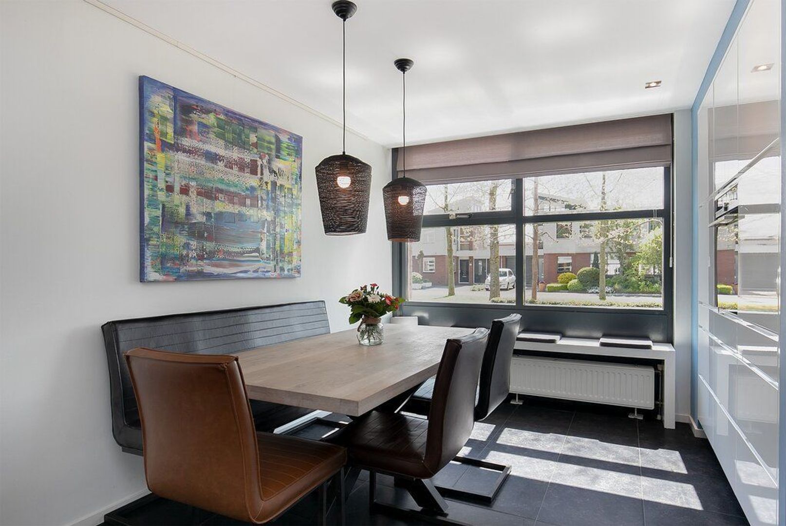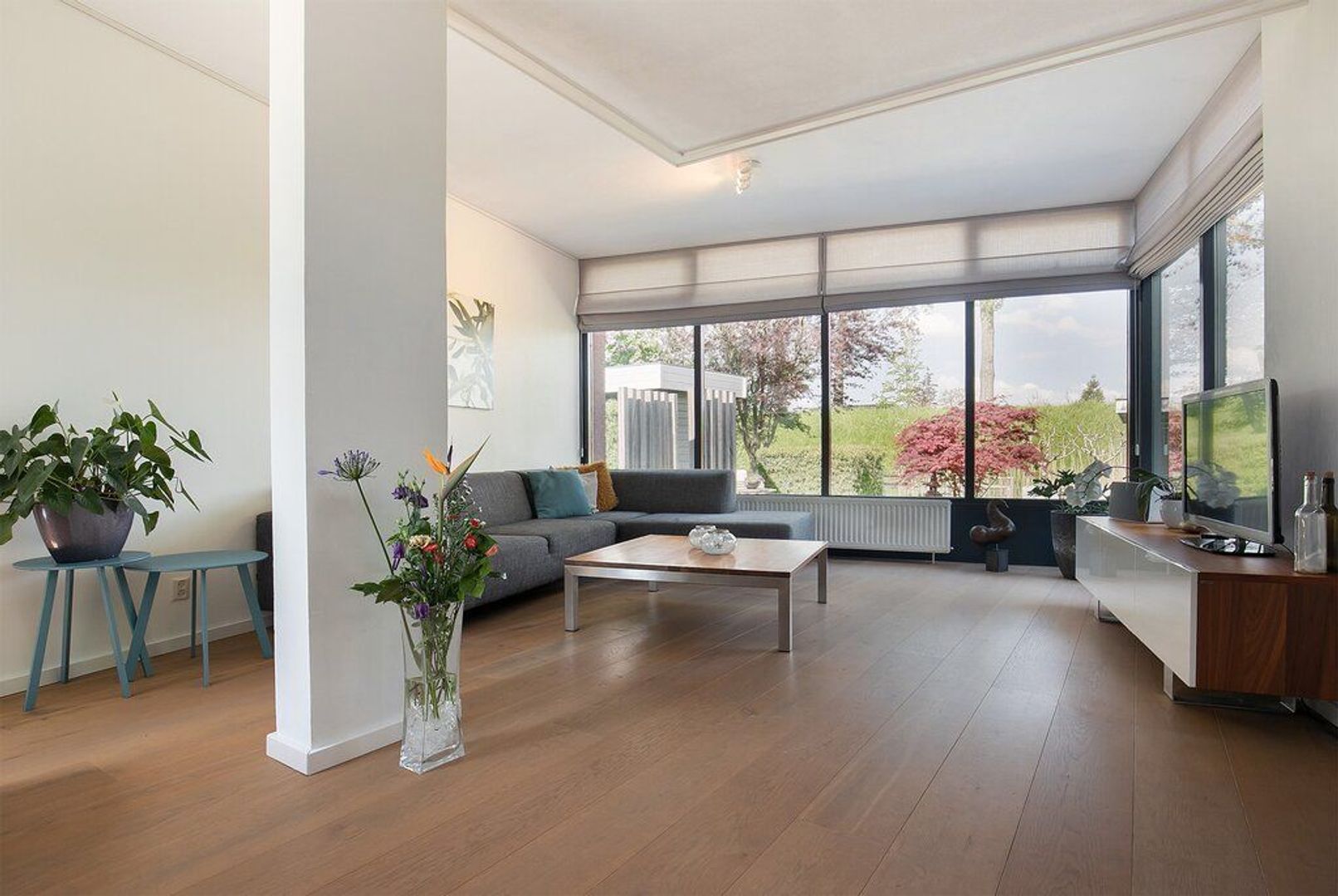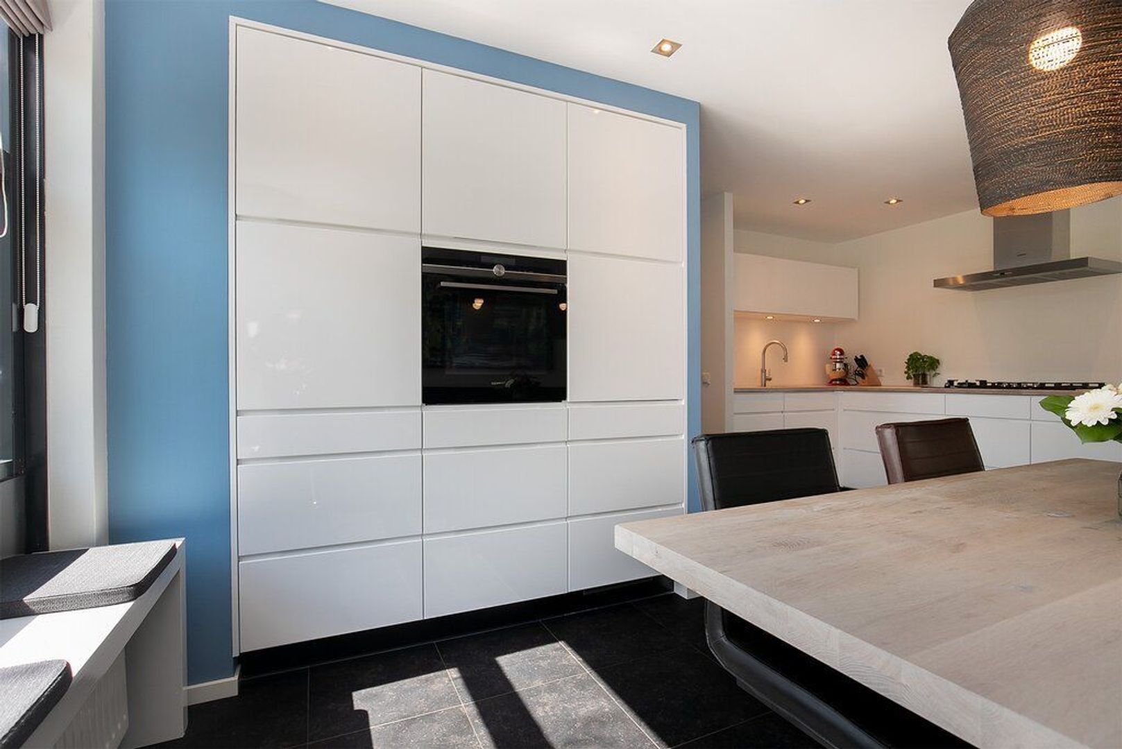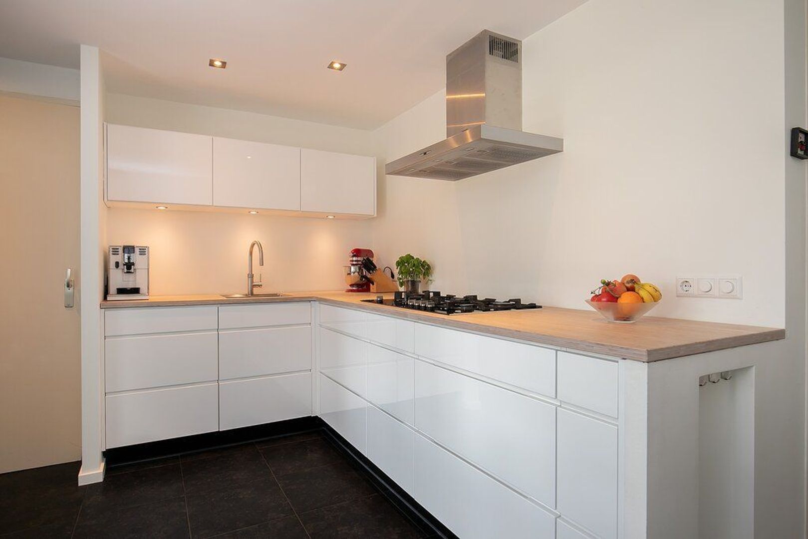 Ruime tuingerichte woonkamer met grote raampartij en openslaande deuren naar het terras. De halfopen keuken ligt aan de voorkant van het huis. Ook deze is royaal en biedt ruimte aan een extra eethoek. In 2018 is een nieuwe inrichting geplaatst in L-vormige opstelling met een extra diep aanrechtblad. Natuurlijk is deze uitgevoerd met inbouwapparatuur, alsmede een Quooker.