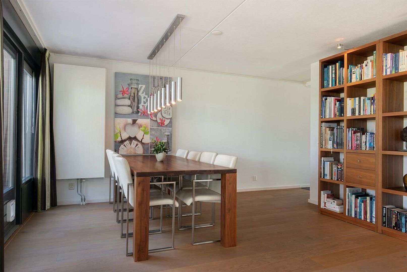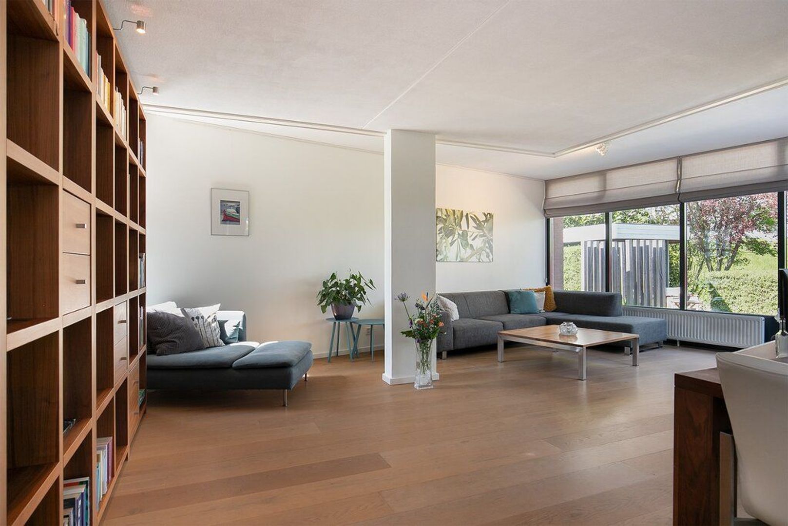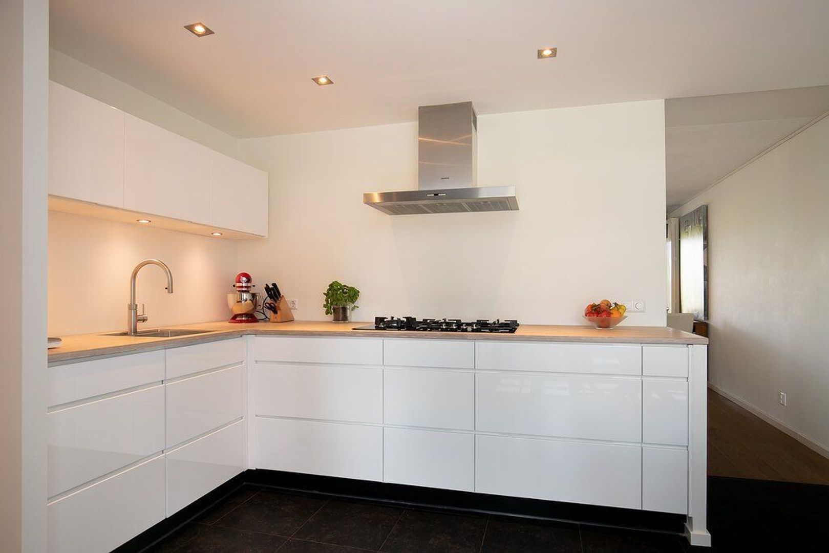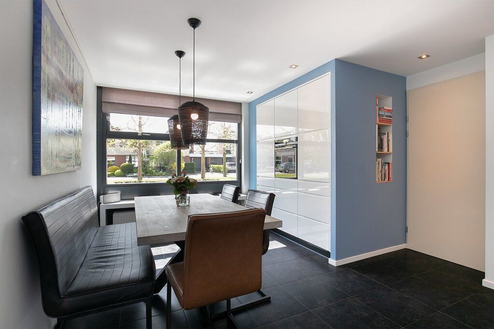 Ruime tuingerichte woonkamer met grote raampartij en openslaande deuren naar het terras. De halfopen keuken ligt aan de voorkant van het huis. Ook deze is royaal en biedt ruimte aan een extra eethoek. In 2018 is een nieuwe inrichting geplaatst in L-vormige opstelling met een extra diep aanrechtblad. Natuurlijk is deze uitgevoerd met inbouwapparatuur, alsmede een Quooker.