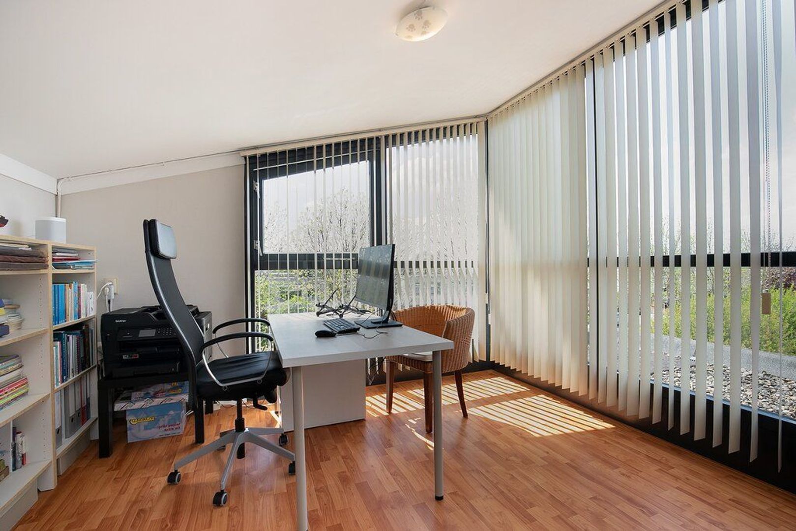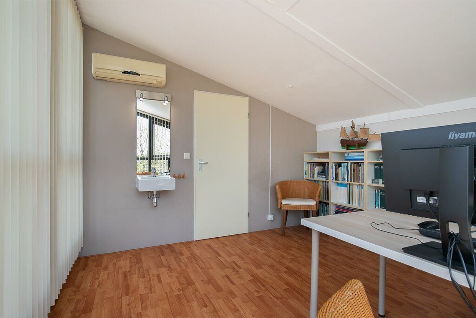 Op de tweede verdieping kan worden genoten van een weids uitzicht over de omgeving vanuit de werkkamer/ het atelier. Deze ruimte is voorzien van airconditioning.