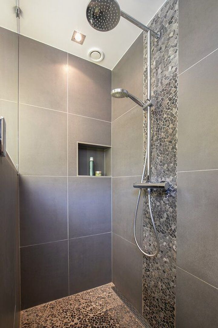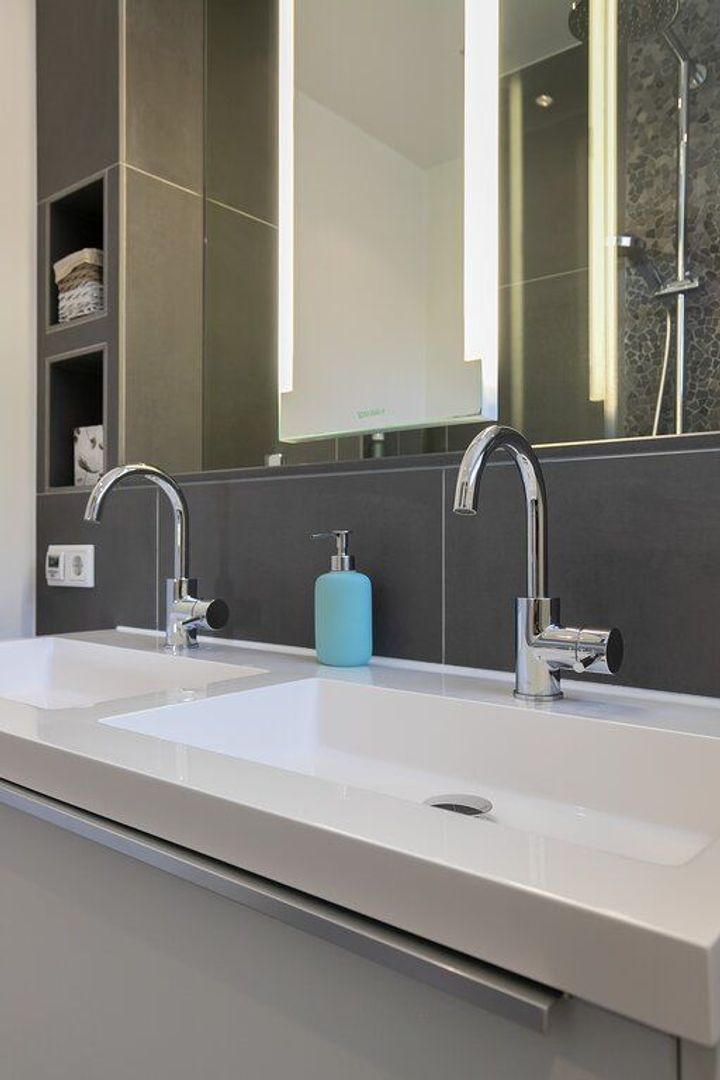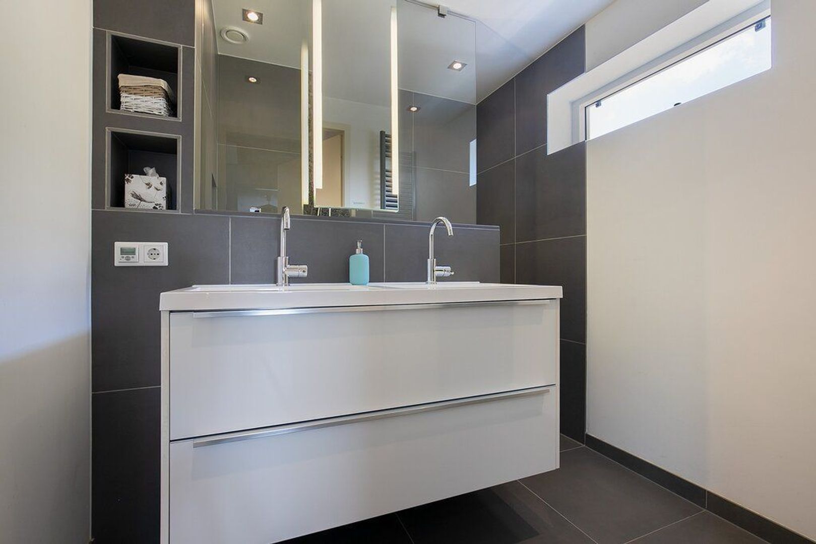 De badkamer heeft een inloopdouche, een wastafelmeubel en comfortabele elektrische vloerverwarming.