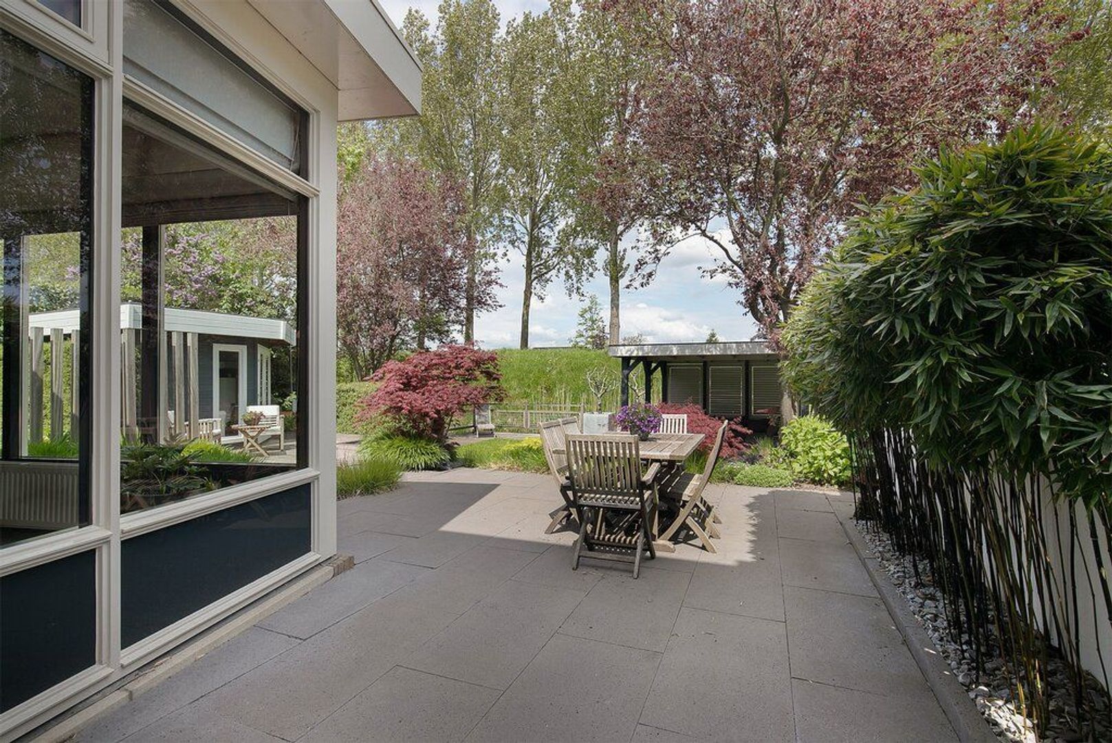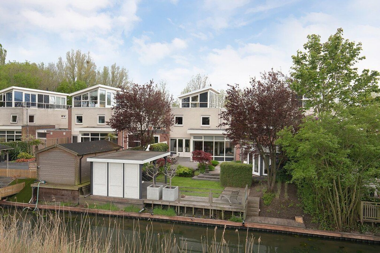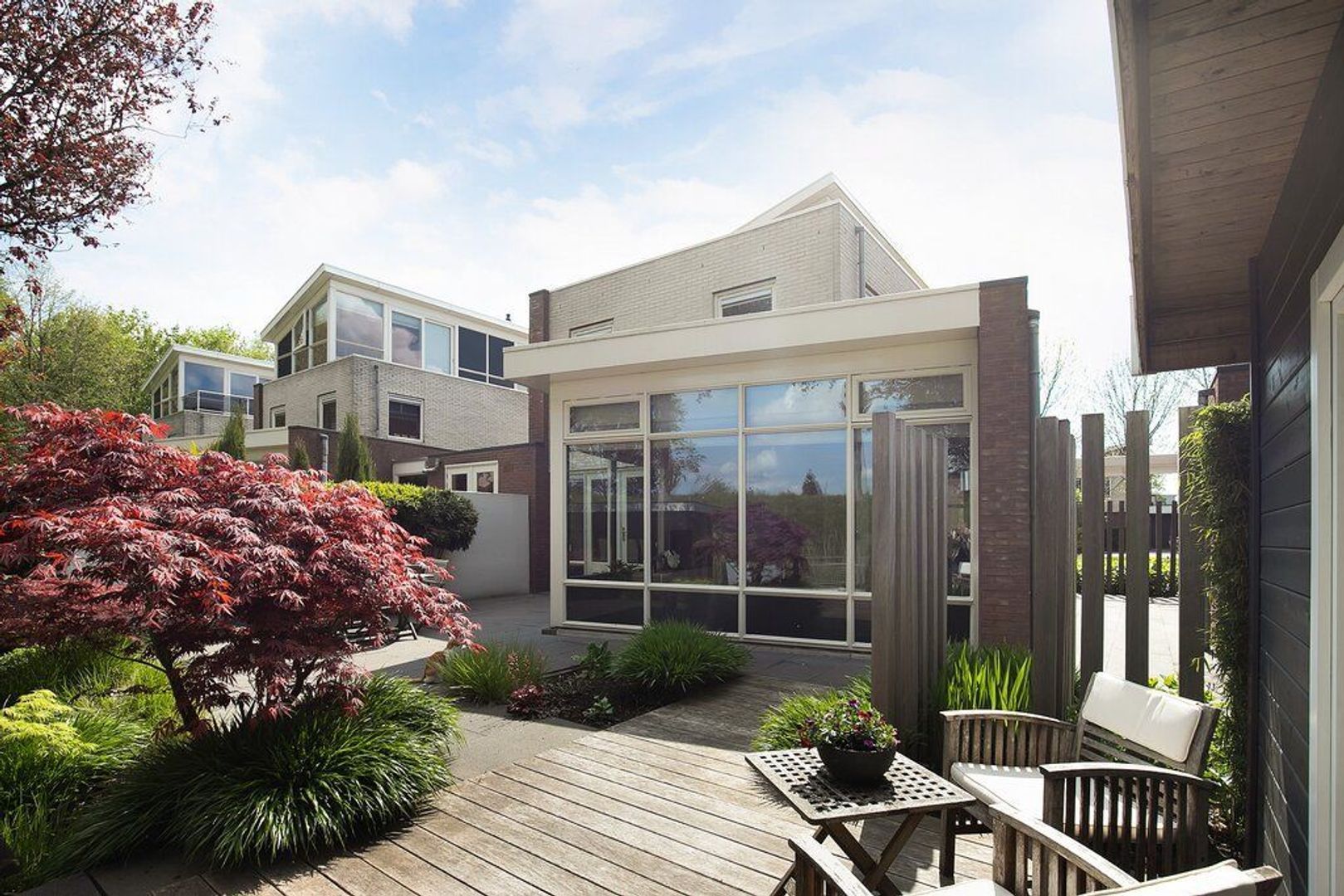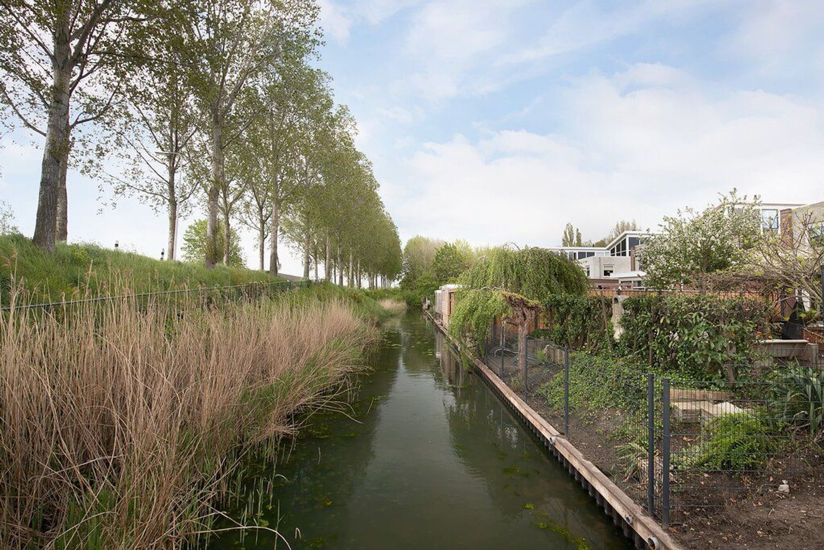 De diepe en zonnige achtertuin ligt op het noordoosten en grenst aan het water, waar een vlonder is gemaakt. Recent is een nieuwe damwand geplaatst.