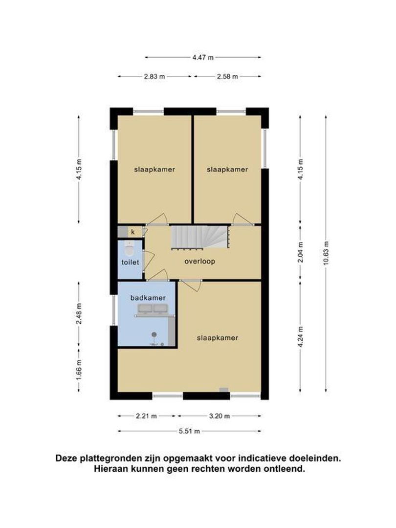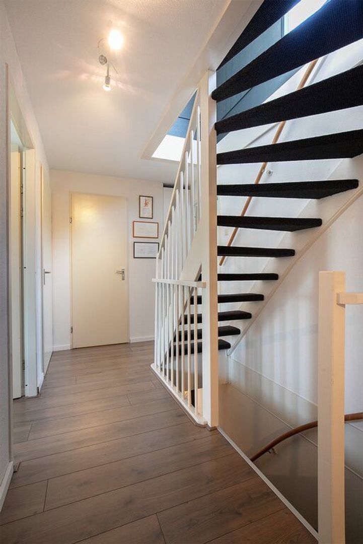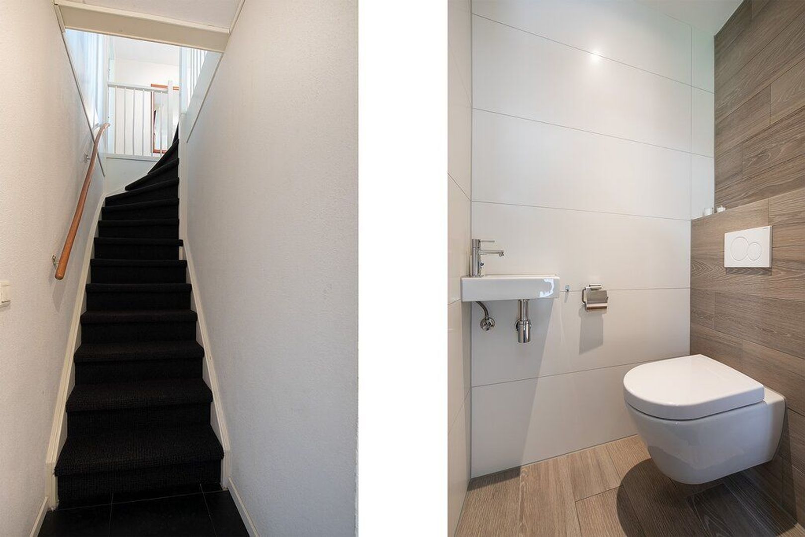 Op de eerste verdieping zijn drie slaapkamers, de badkamer en een aparte toiletruimte op de overloop.