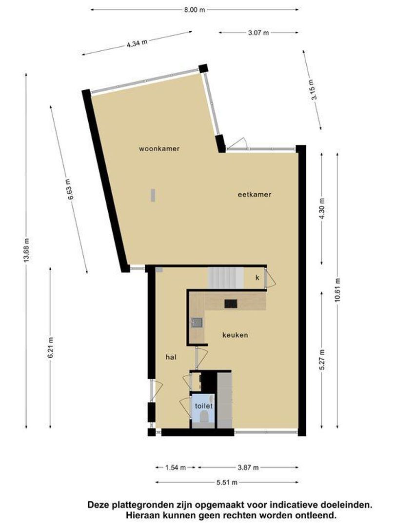De indeling is globaal als volgt: entree, hal met meterkast, toiletruimte en trapopgang.