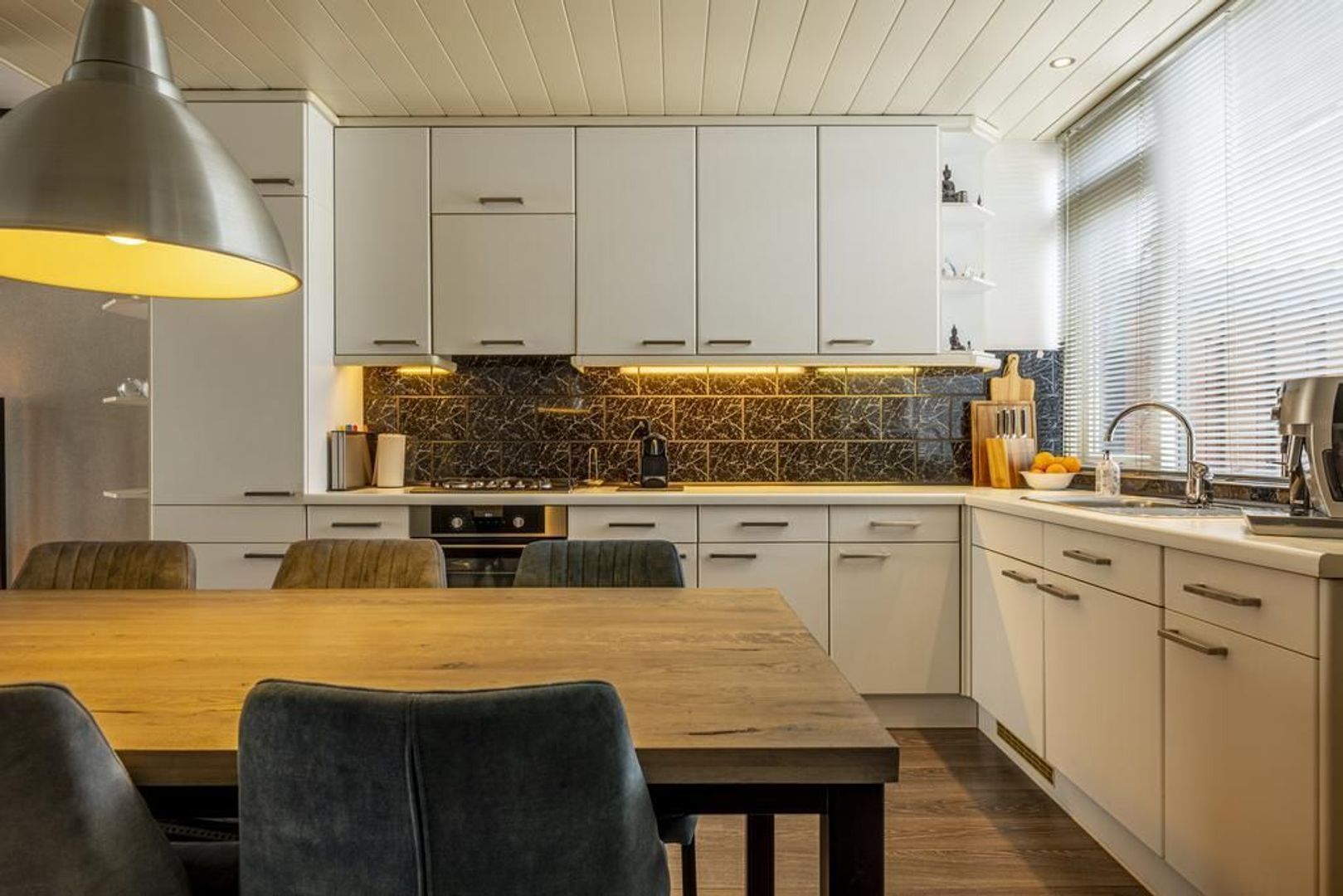 Keukenapparatuur: oven, gaskookplaat, koelvriescombinatie (2021), vaatwasser, afzuigkap, kick-space verwarming