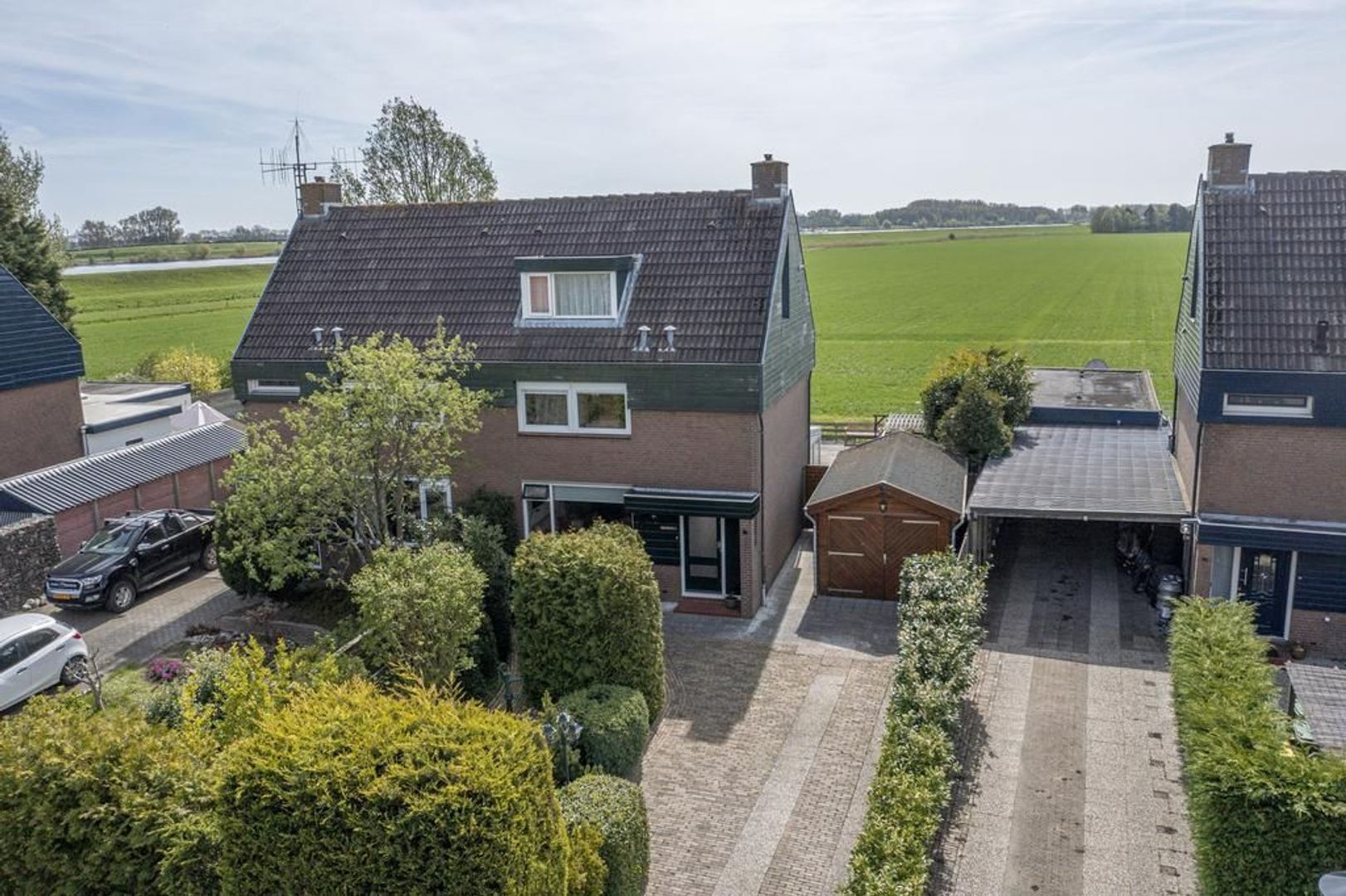 Landelijk gelegen twee-onder-een-kapwoning met garage en berging, tuin met vrij uitzicht over de landerijen én veel parkeerruimte op eigen terrein.