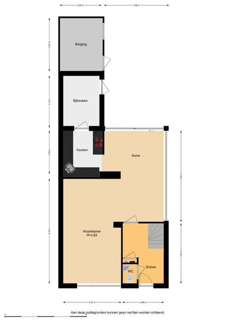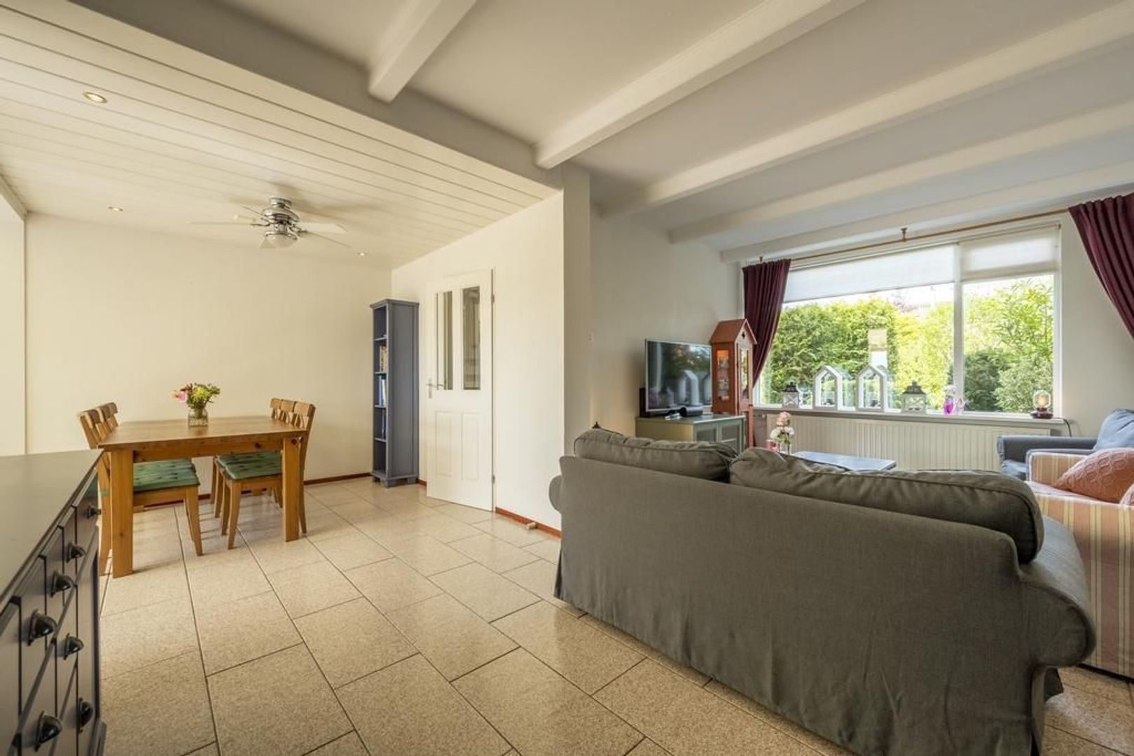 Entree/hal, toiletruimte, meterkast en trapopgang. Woonkamer met zitgedeelte aan de voorzijde. Vanuit de serre is er mooi zicht op de brede tuin.