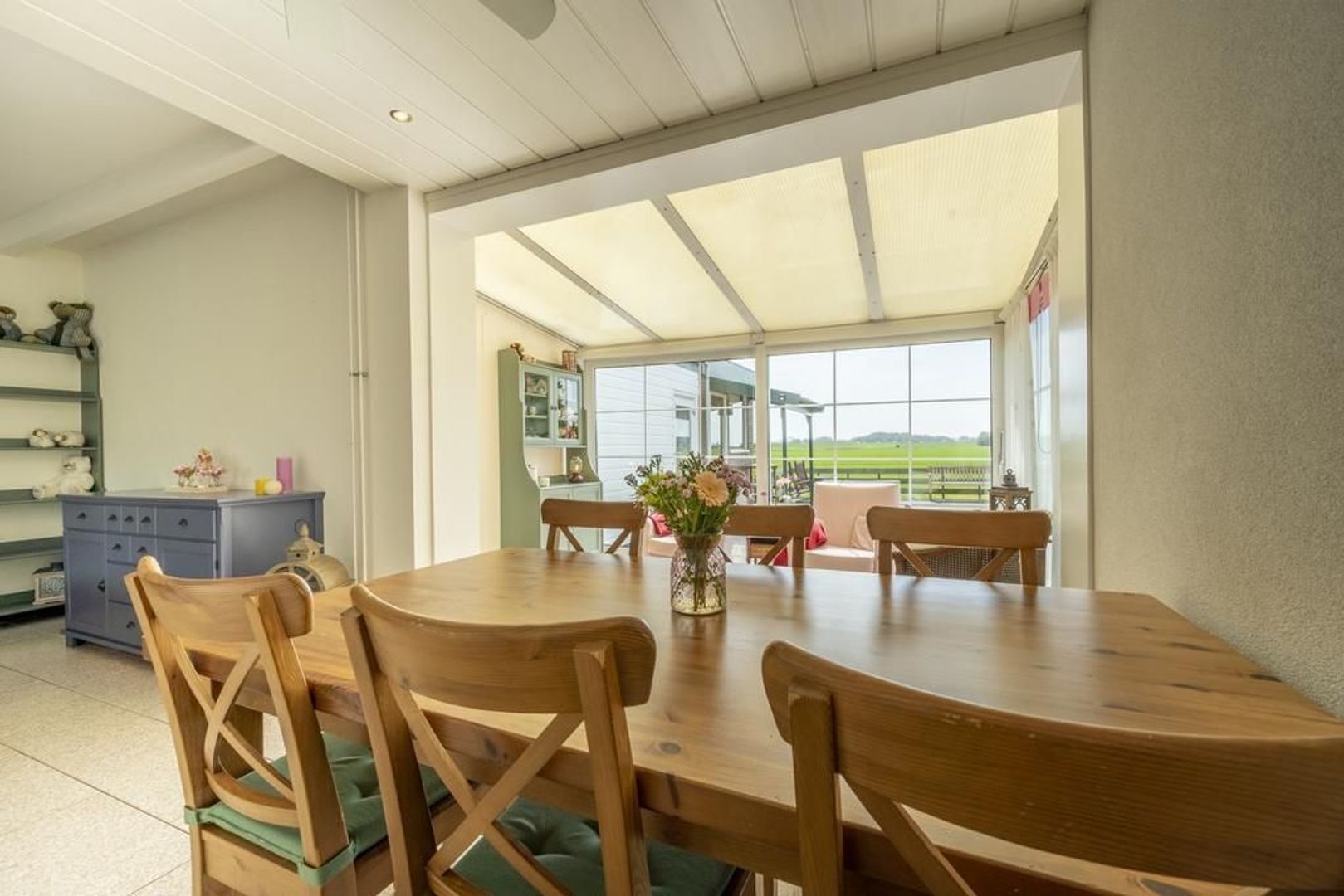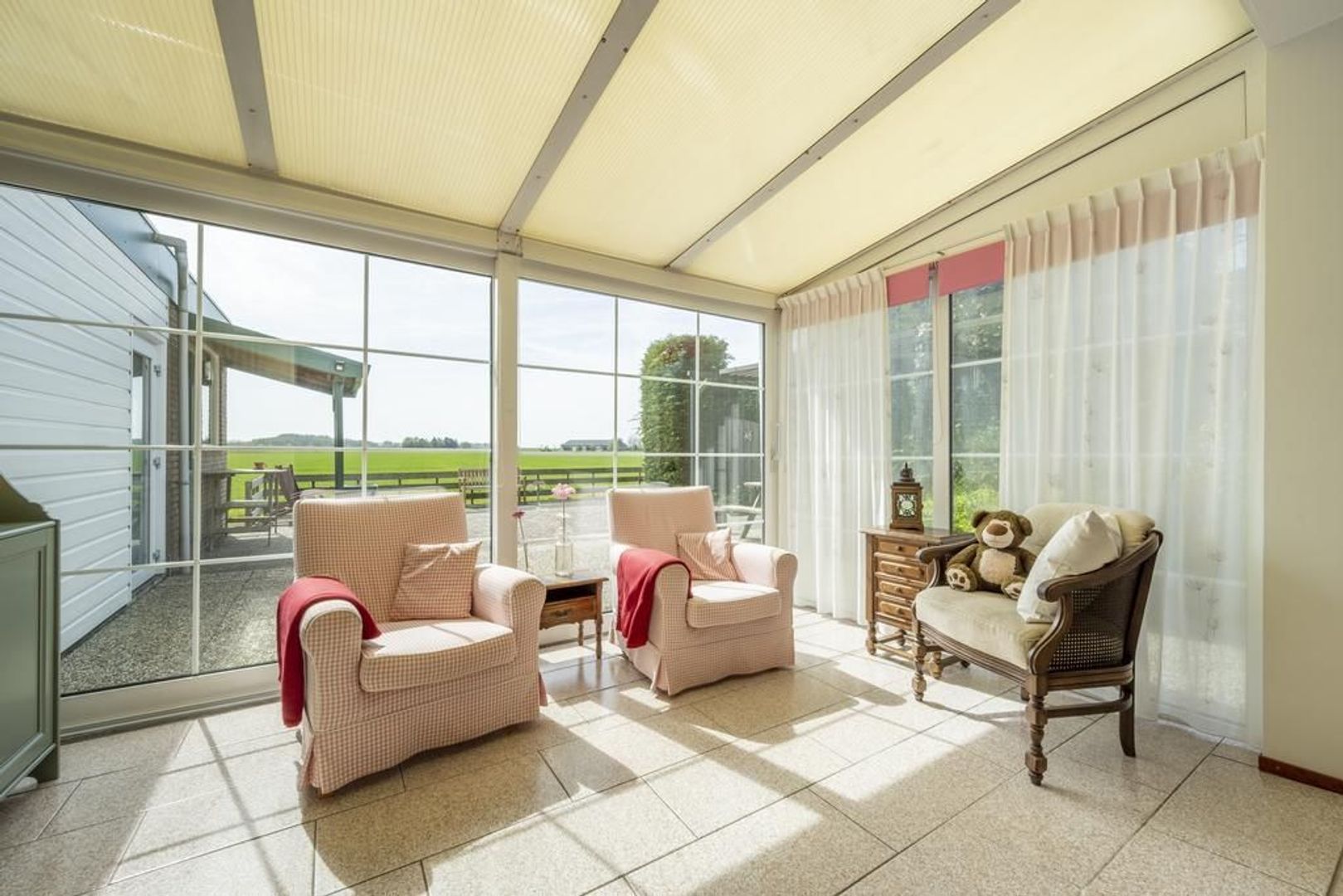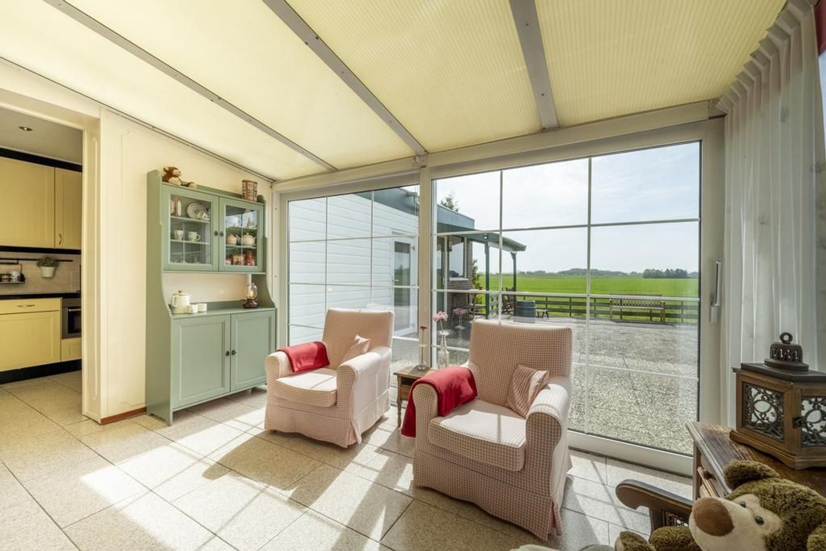 De tuin grenst aan agrarische grond. In elk seizoen is het hier genieten van het veranderende uitzicht.