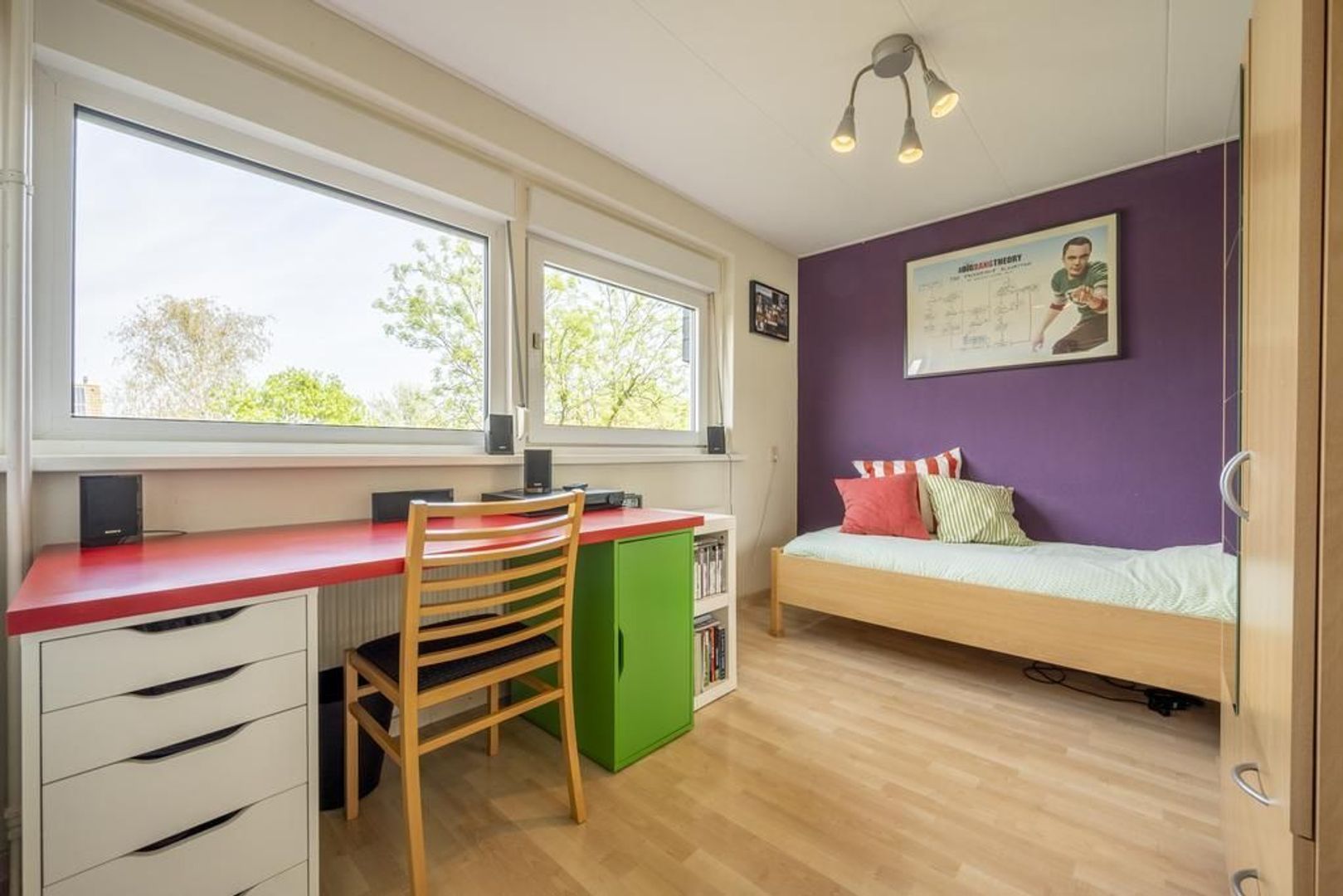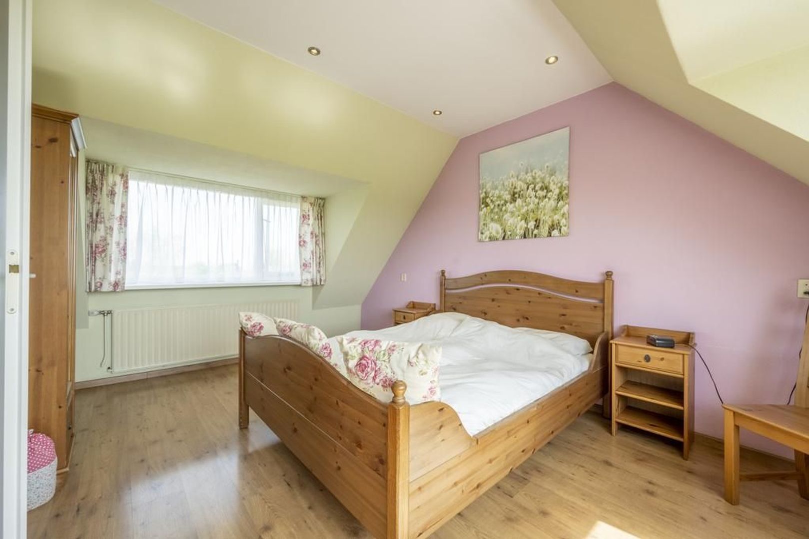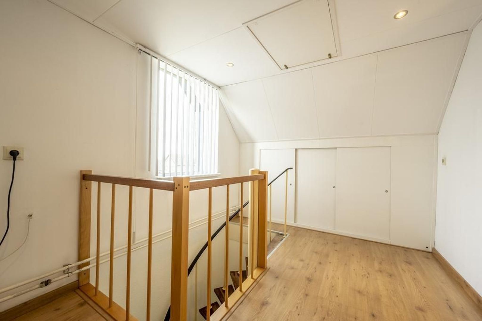 De tweede verdieping is met een vaste trap te bereiken. Door het zijraam is er op de voorzolder al fijn lichtinval. Hier is tevens de opstelplaats voor de cv-ketel en lekker veel bergruimte. Boven de ruimte is nog een kleine bergzolder. Door de dakkapellen aan de voor- en achterzijde is de slaapkamer groot. Eventueel kunnen hier twee kamers gemaakt worden.