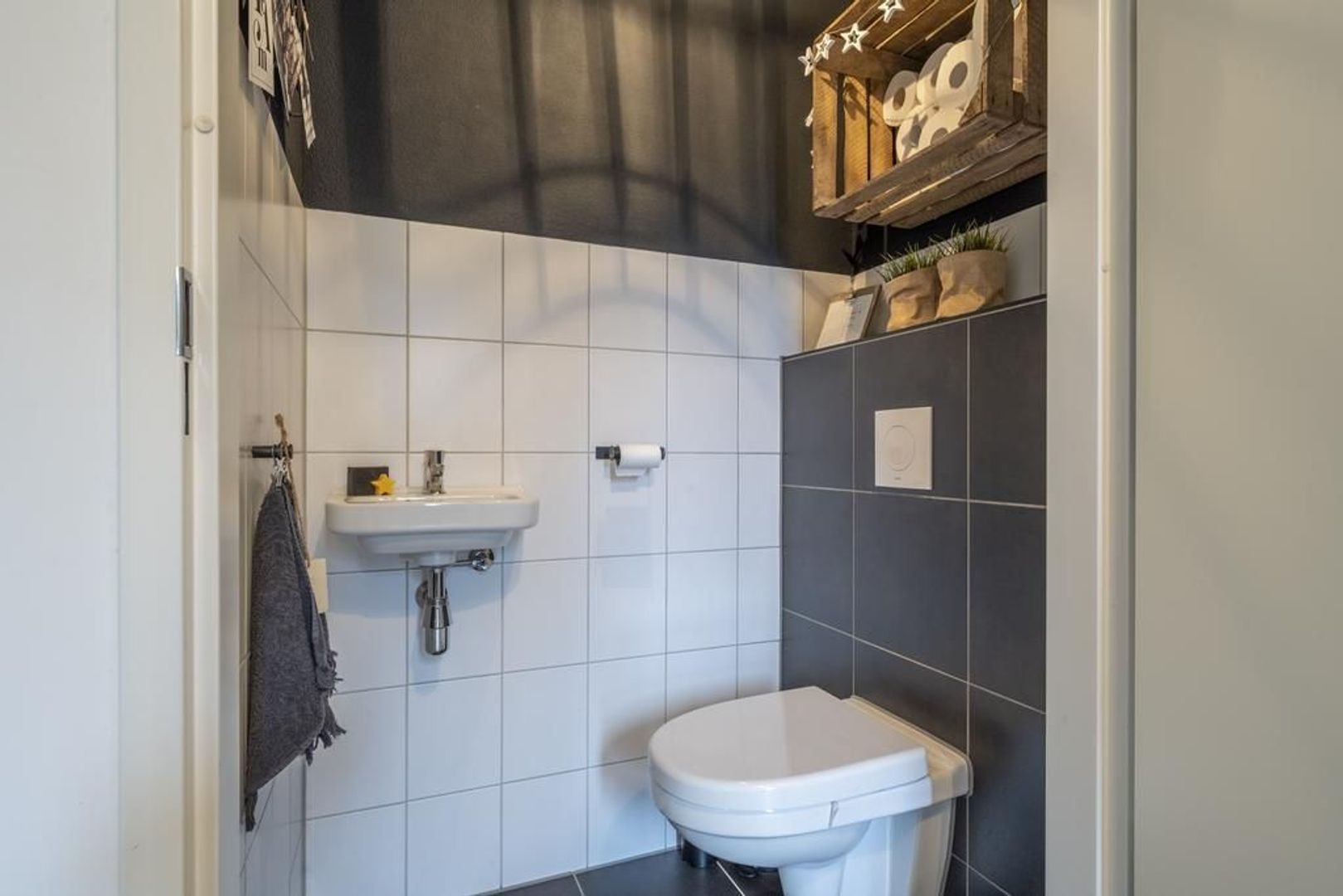 Entree, hal met meterkast, vaste kast en moderne toiletruimte met wandcloset en fonteinbakje.