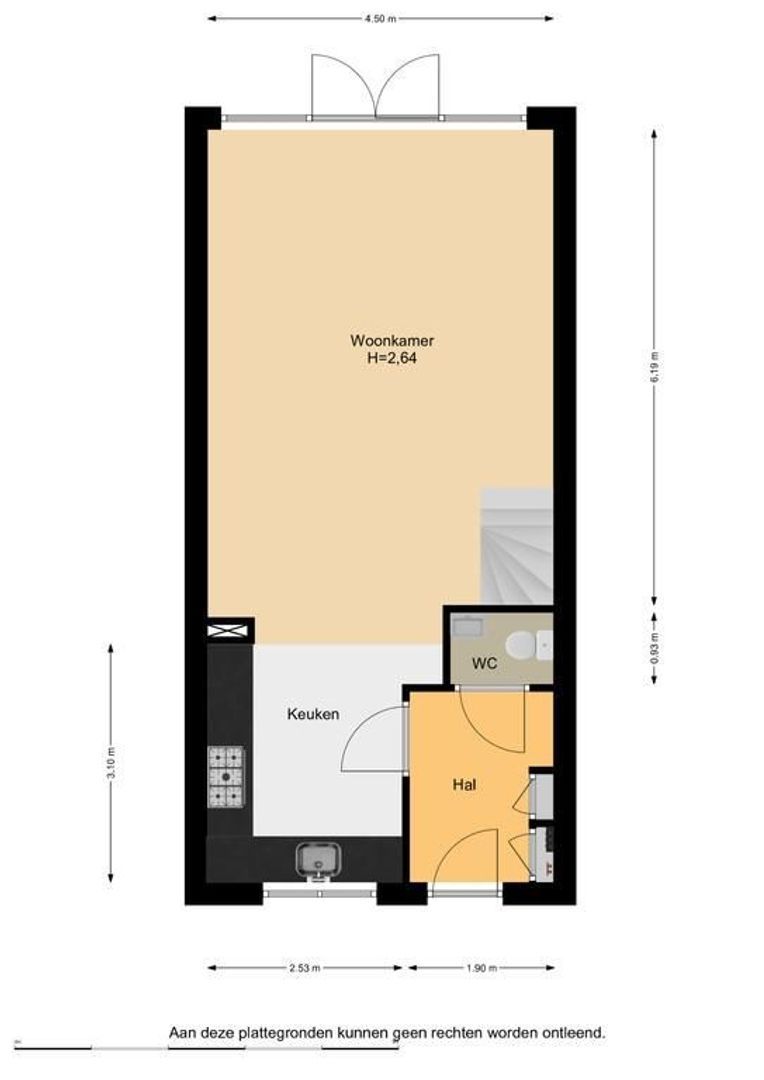 De begane grondvloer is afgewerkt met een pvc vloer en de wanden zijn gestuct.