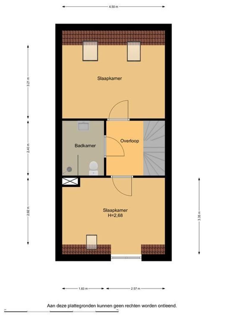 Op de eerste verdieping zijn de overloop, de badkamer en twee grote slaapkamers. Ook deze zijn afgewerkt met een pvc-vloer en stucwerk wanden.
