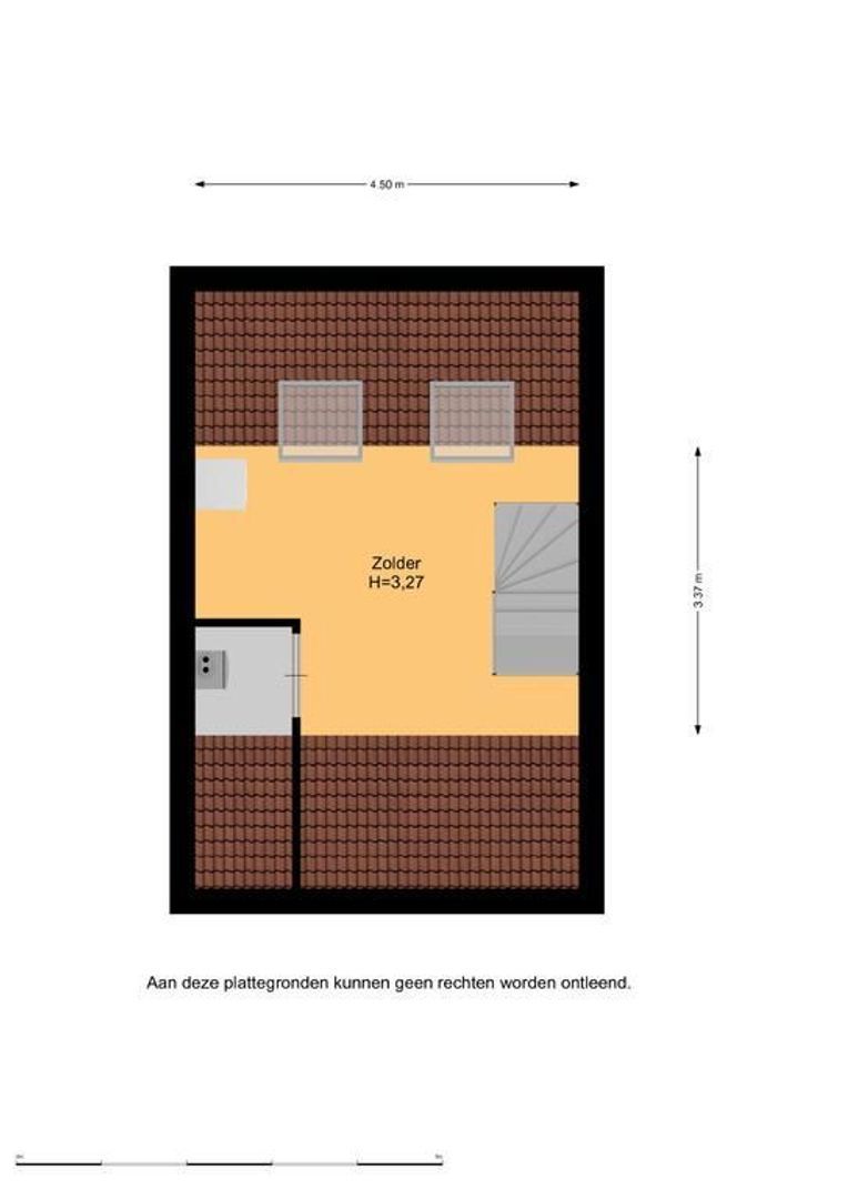 Dit is nu een grote open ruimte in gebruik als zolder, kantoor en wasruimte. Ook zijn hier de opstelplaats van de cv-ketel, de unit voor de mechanische ventilatie en de wasmachine. Uiteraard is het mogelijk hier een derde slaapkamer te maken.