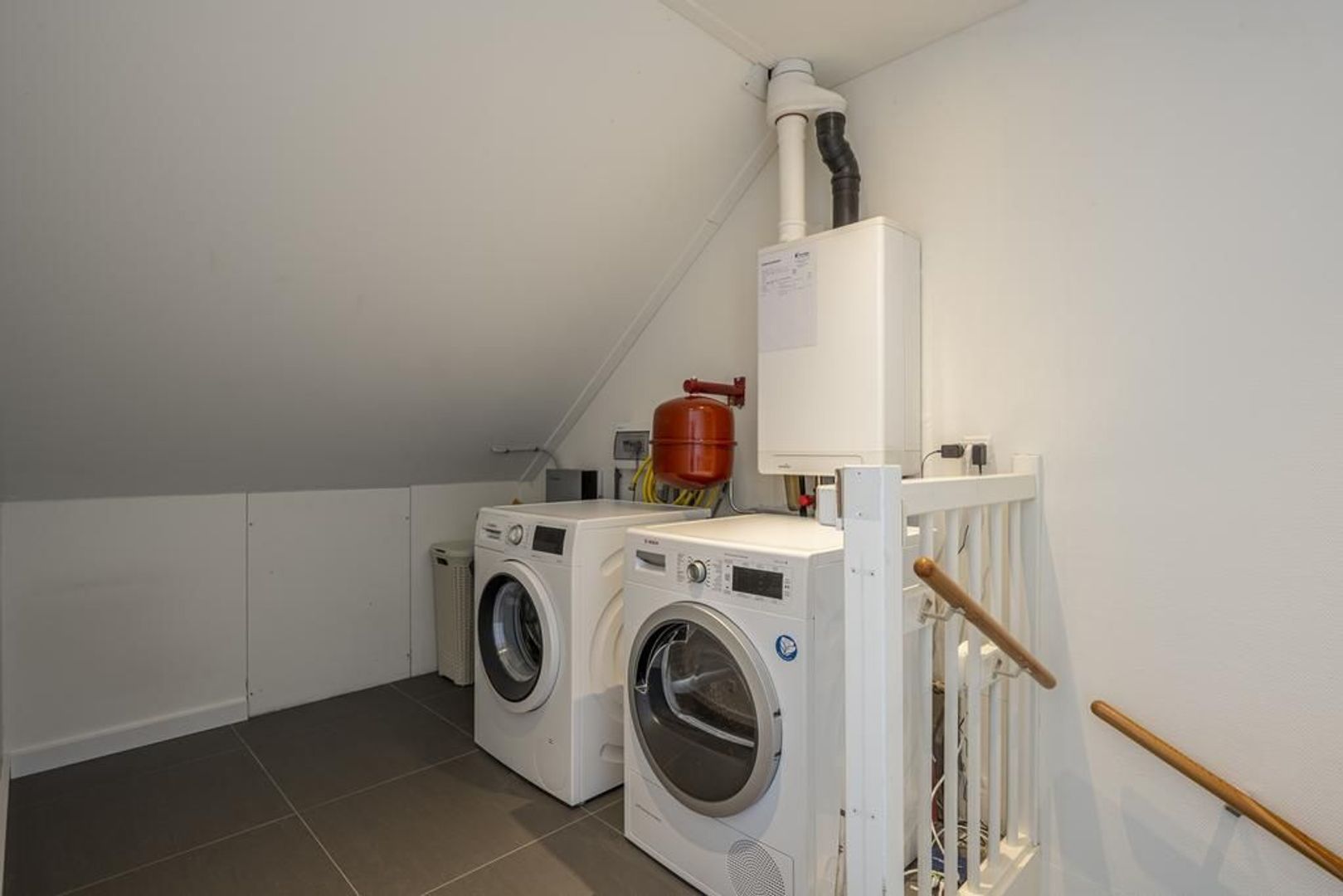 Op de eerste verdieping zijn drie prima slaapkamers en een mooie badkamer. Deze is ingericht met een duo-inloopdouche, een wastafelmeubel en een tweede toilet. Elektrische vloerverwarming, mechanische ventilatie en een designradiator ontbreken niet en het raam maakt extra ventileren met buitenlucht mogelijk.