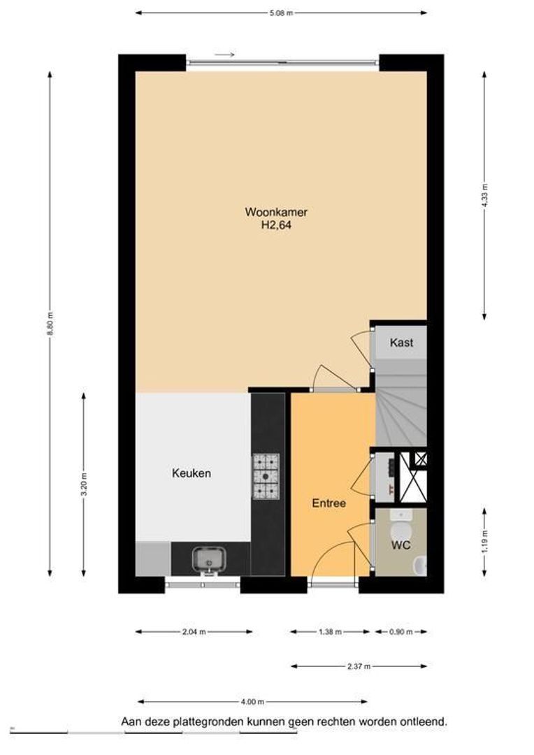 De indeling is als volgt: entree, hal met garderobe, toiletruimte met wandcloset en handwasbakje, meterkast en trapopgang.