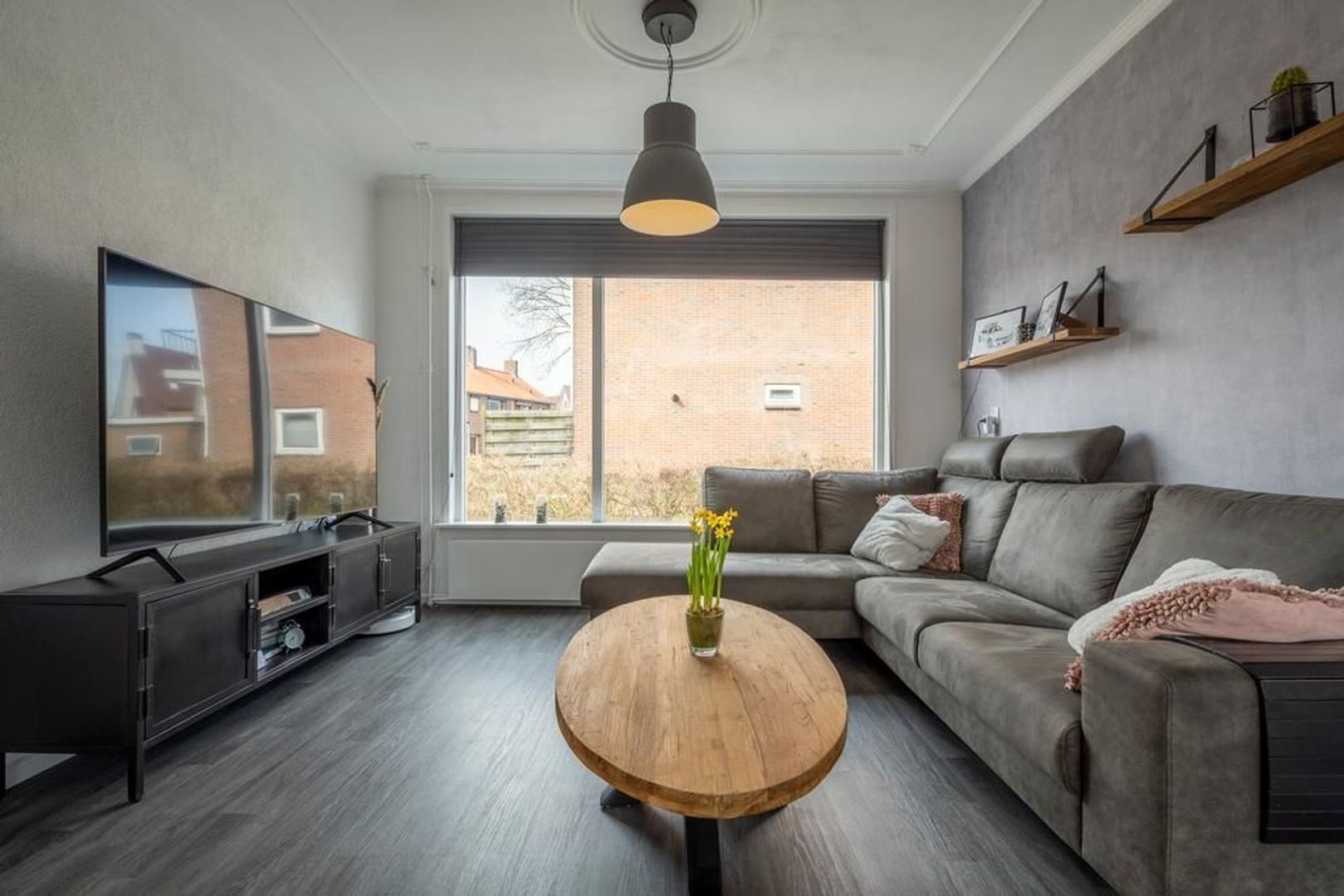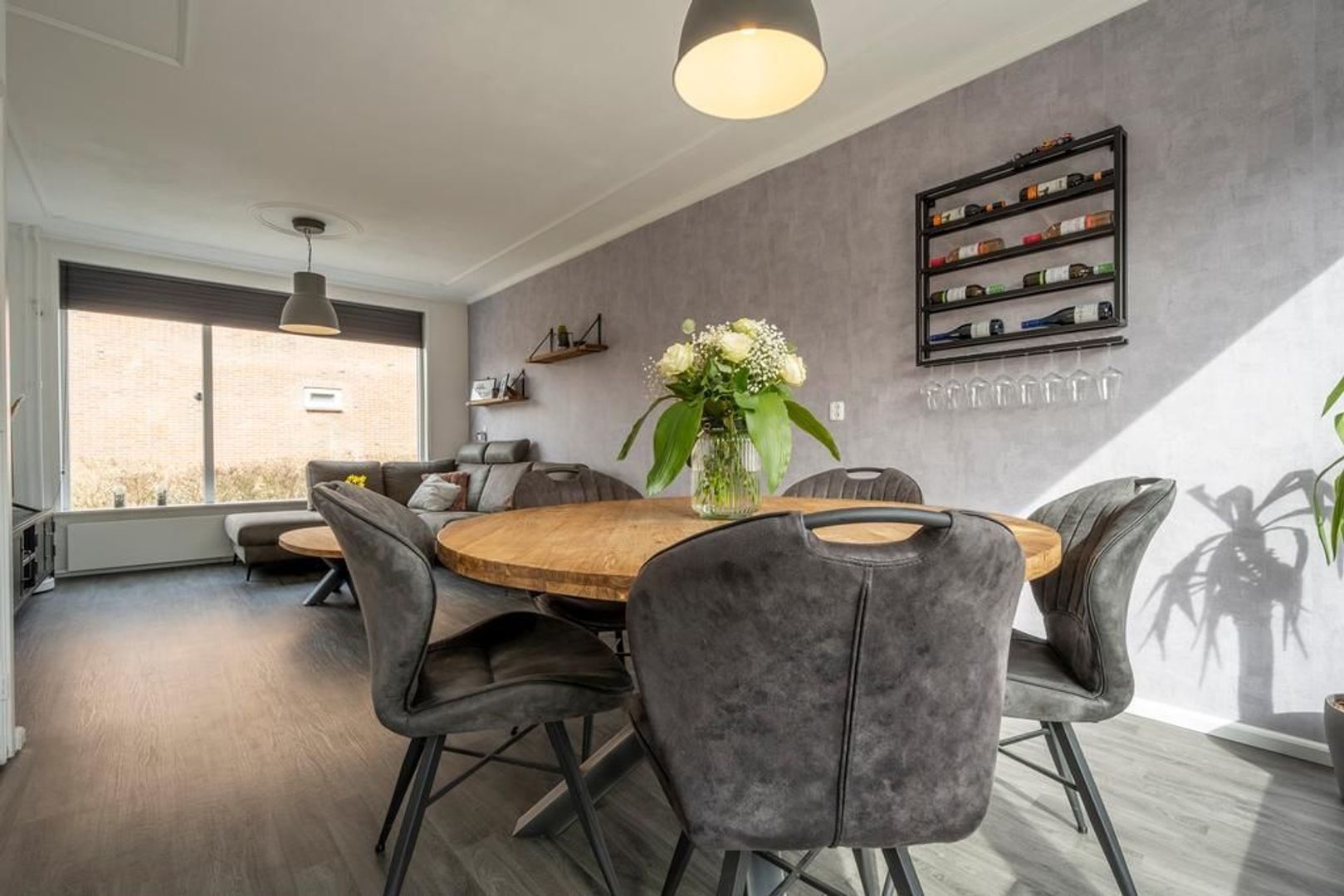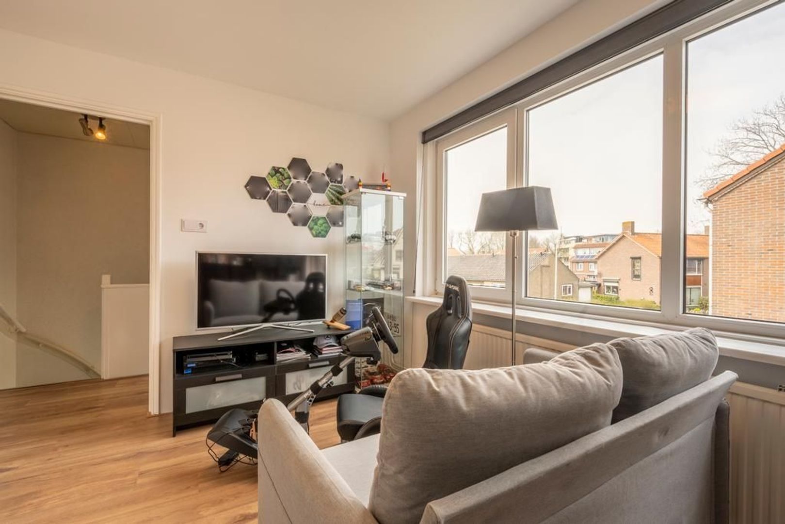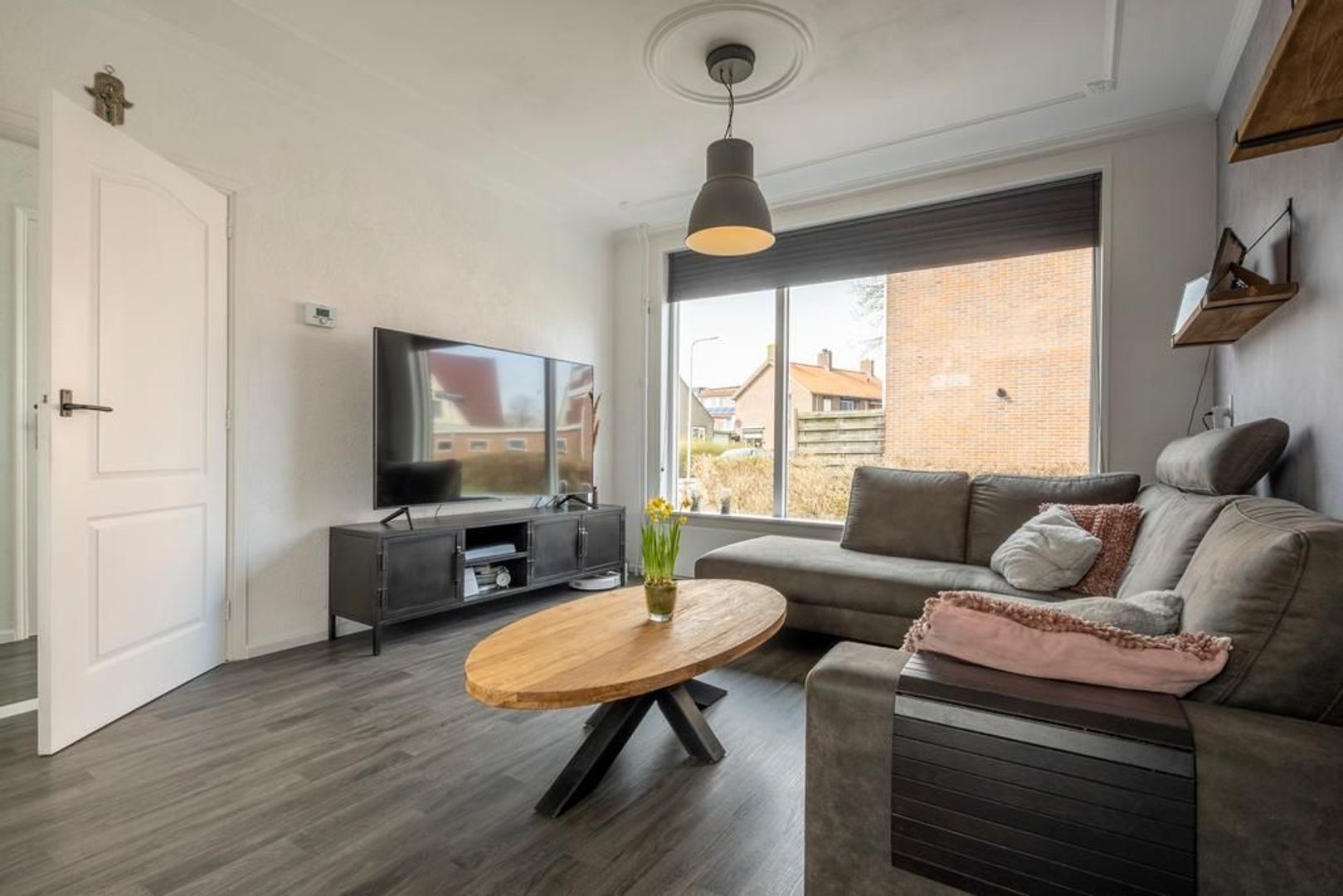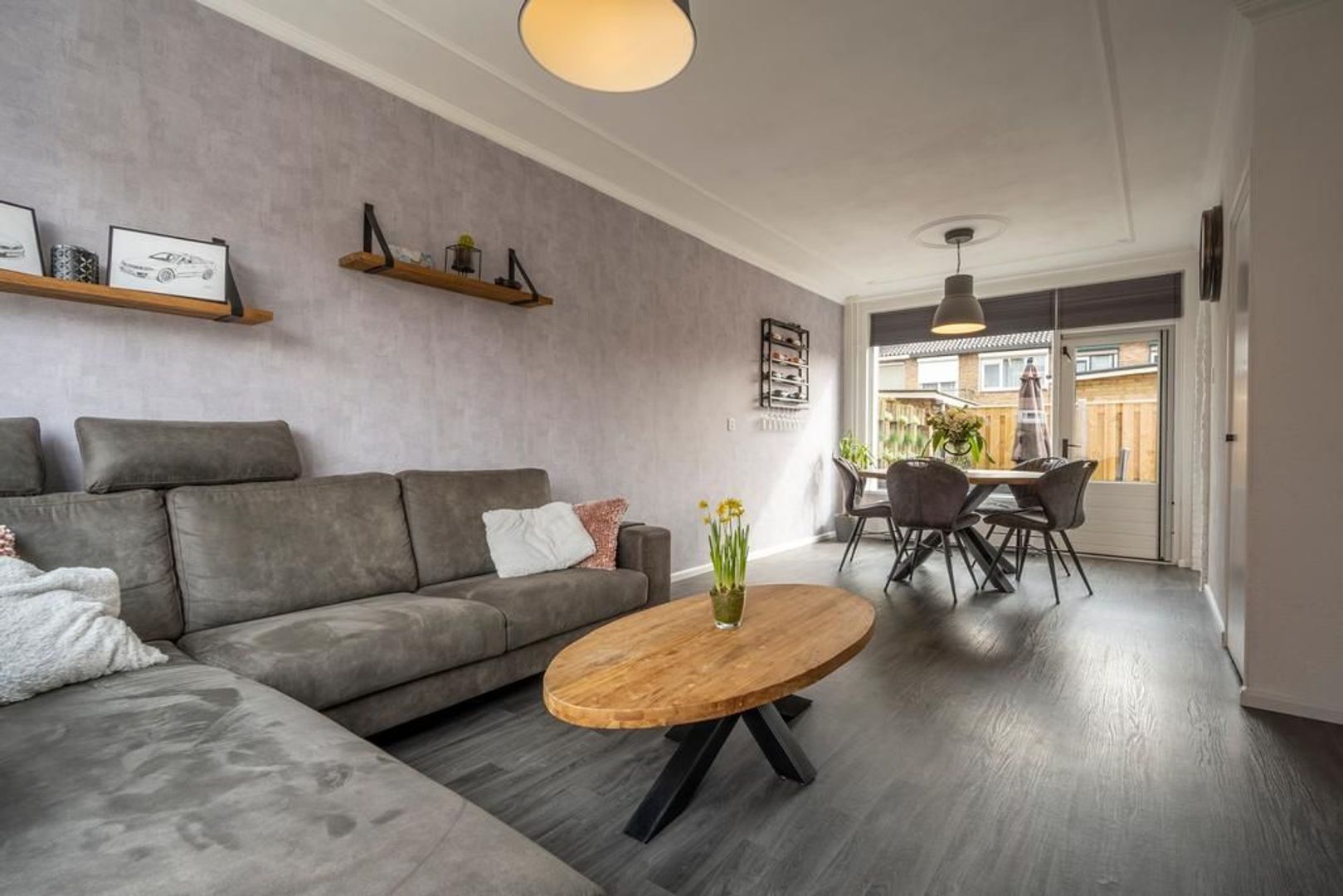 Doorzon woonkamer met grote ramen waardoor het heerlijk licht is.