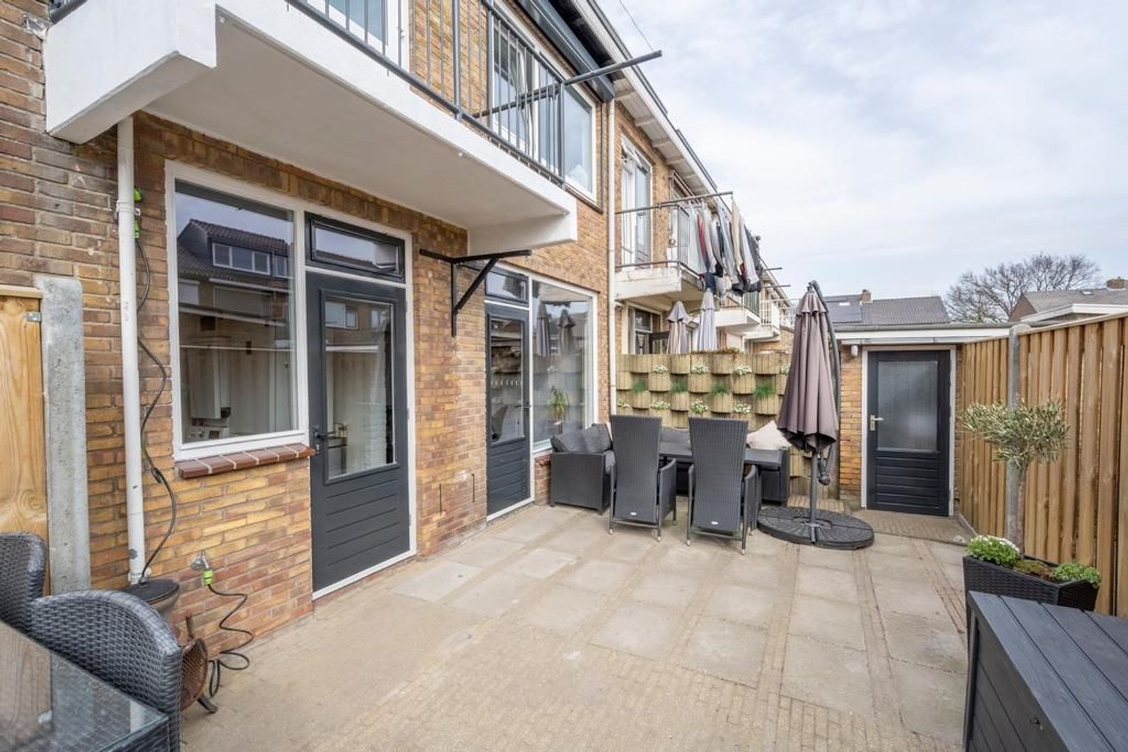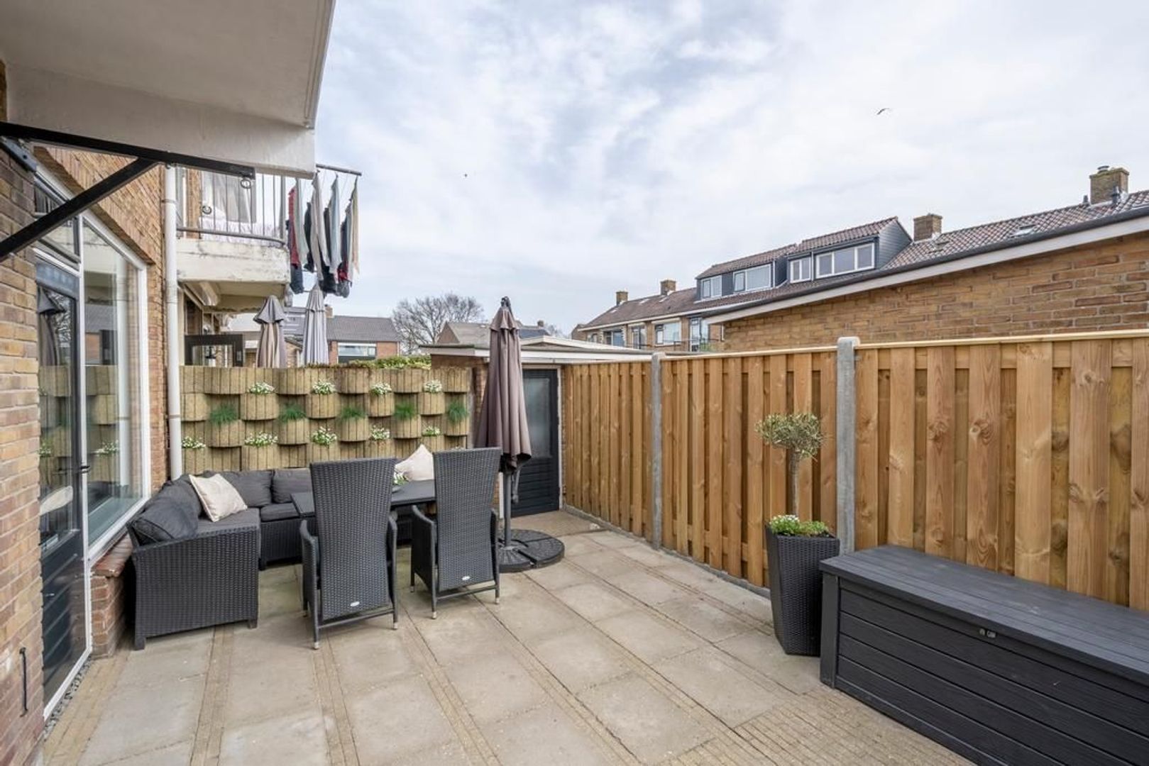 De achtertuin ligt gunstig ten opzichte van de zon en de schutting is recent nog vernieuwd.