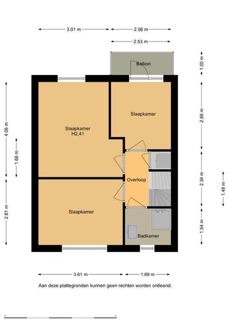 Op de eerste verdieping zijn drie slaapkamers, de badkamer en een vaste kast.