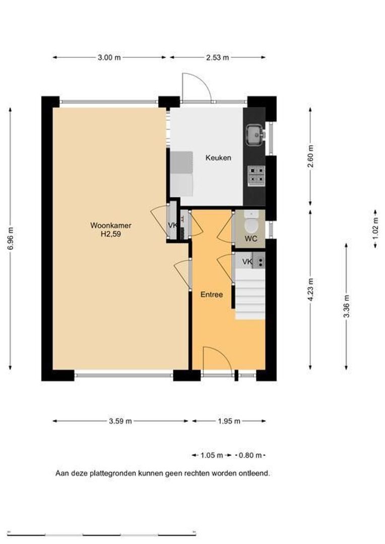 De indeling is als volgt: entree, hal met trapopgang met trapkast en de opstelplaats voor de cv-ketel, meterkast en toiletruimte.