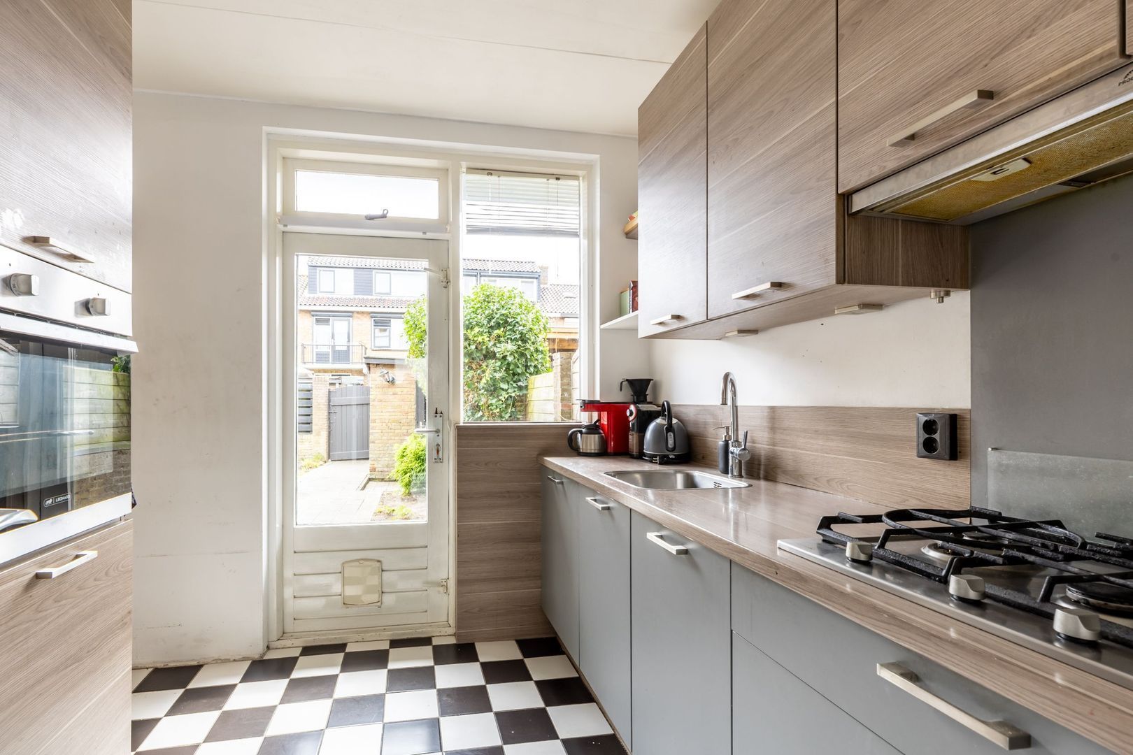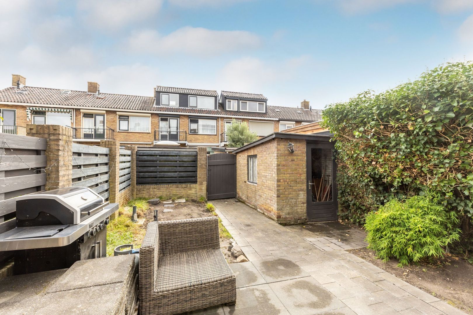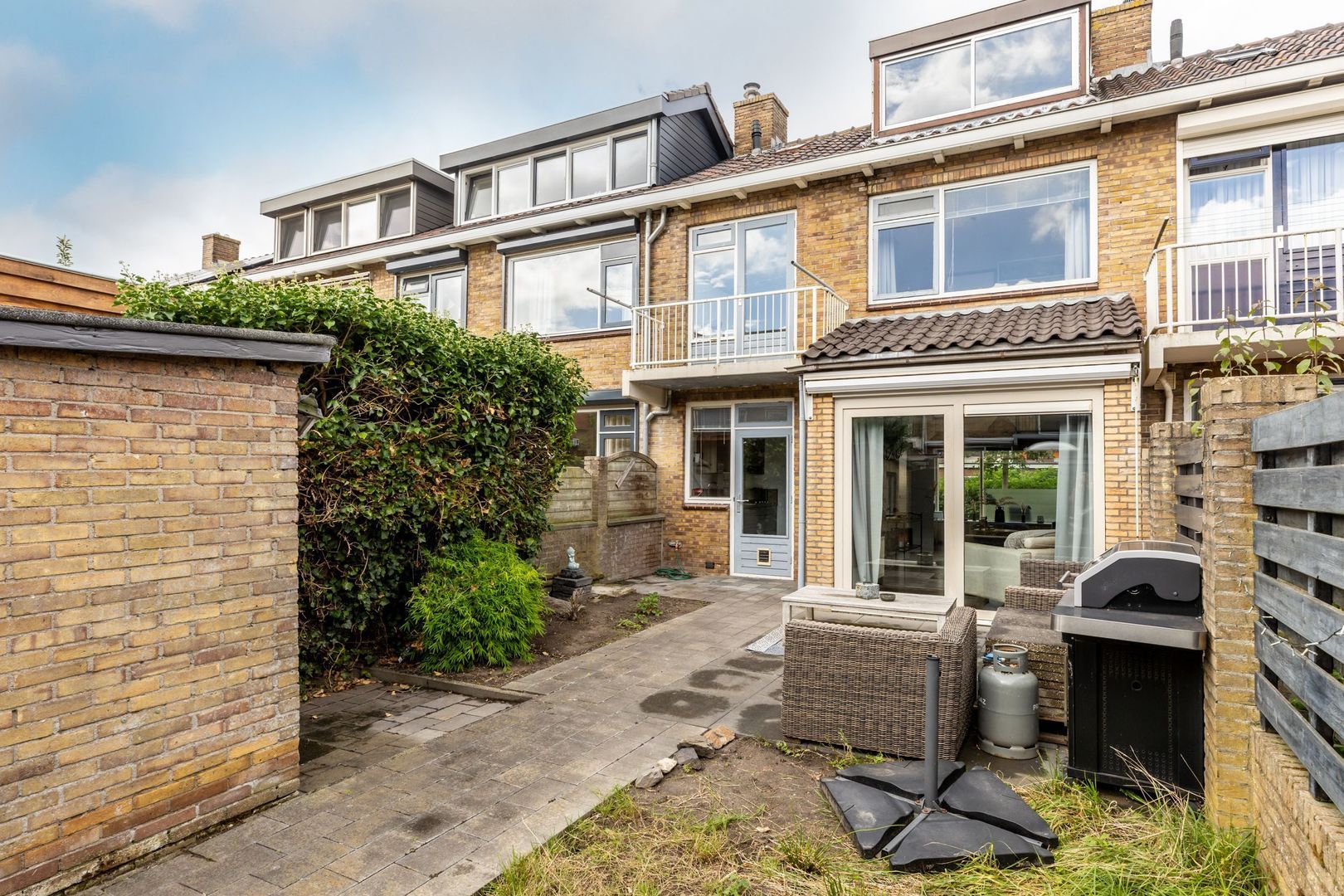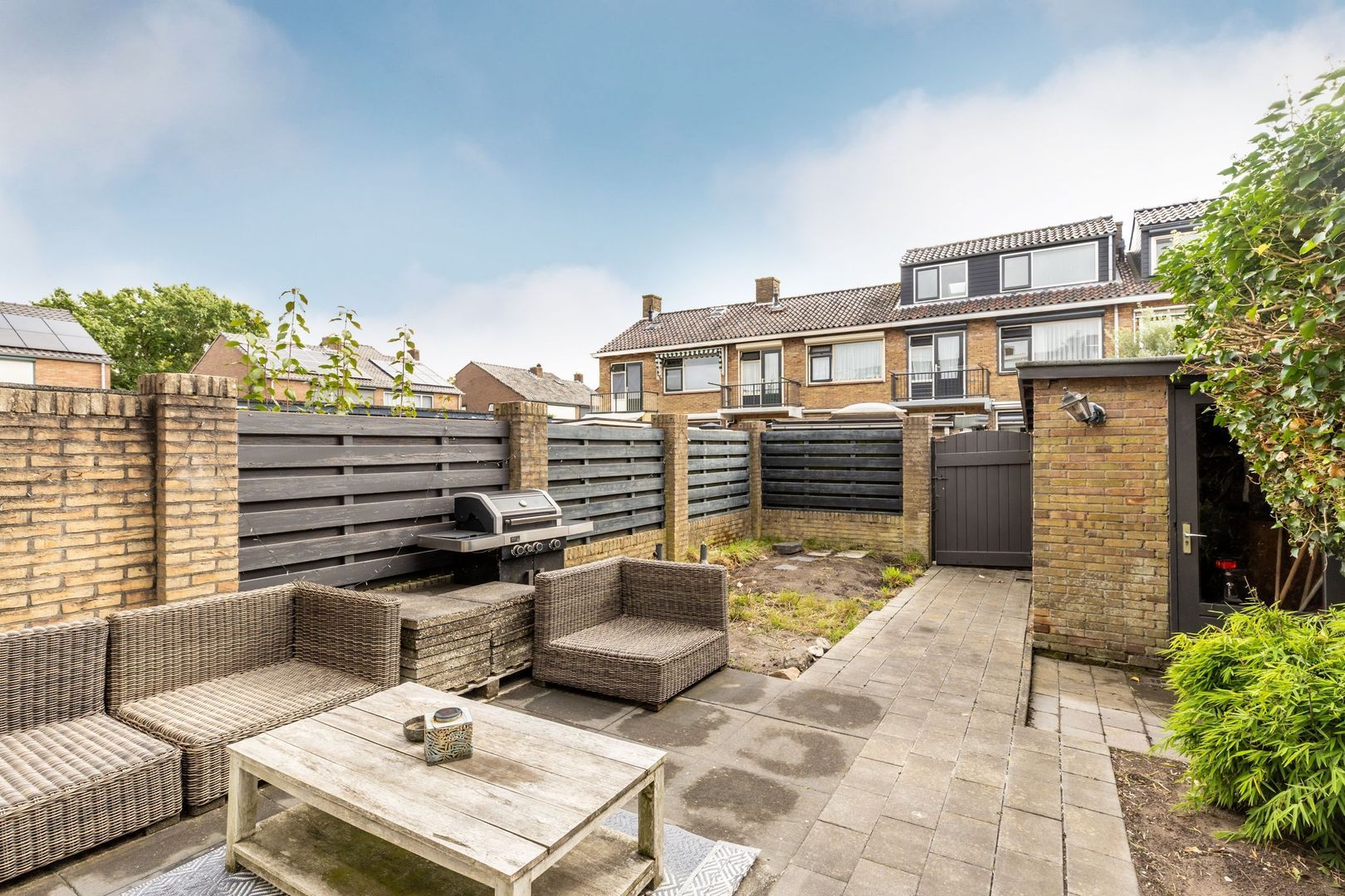 In een rustige woonomgeving, vlakbij het centrum, bieden wij aan een uitgebouwde tussenwoning met berging en tuin op het zuidoosten.