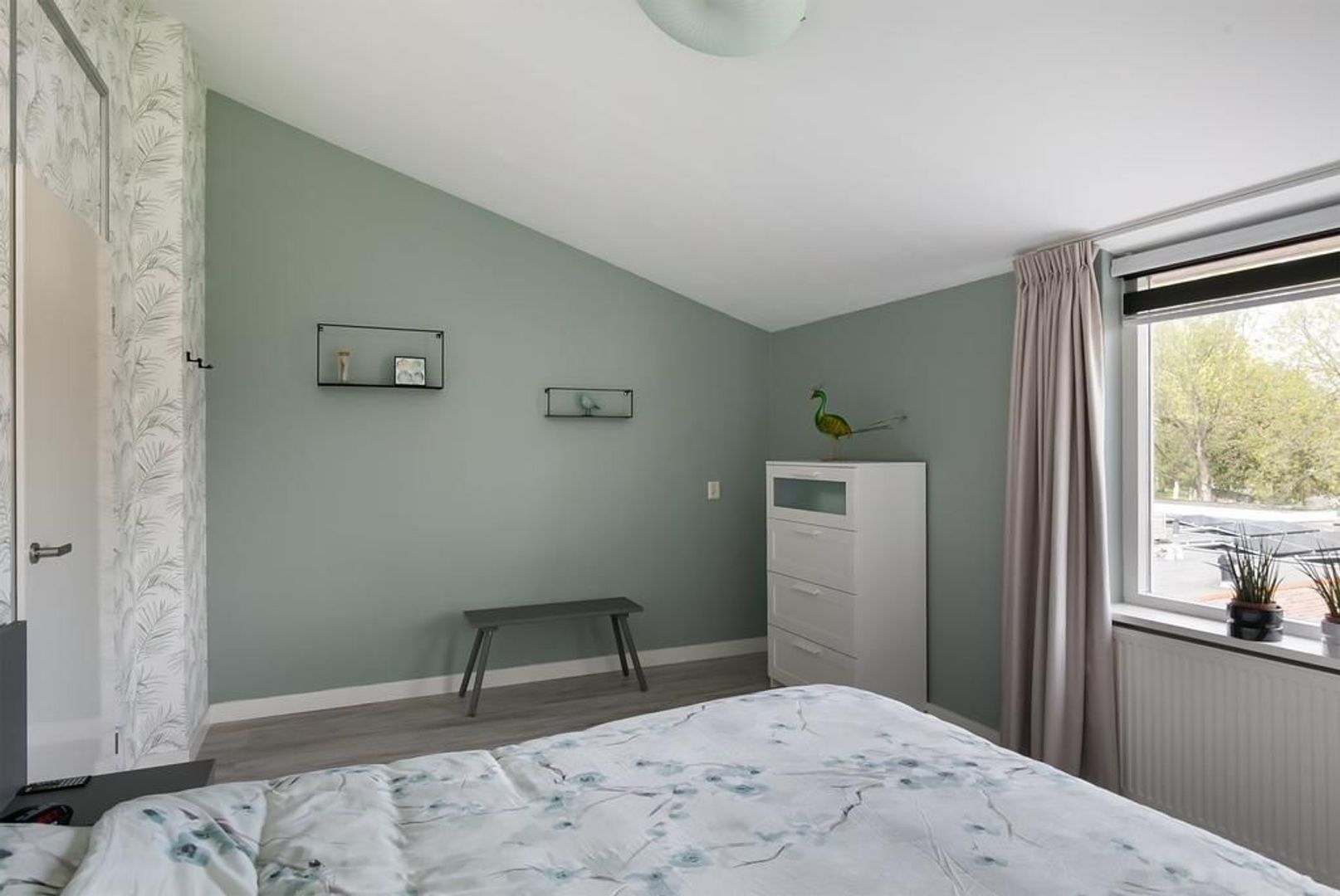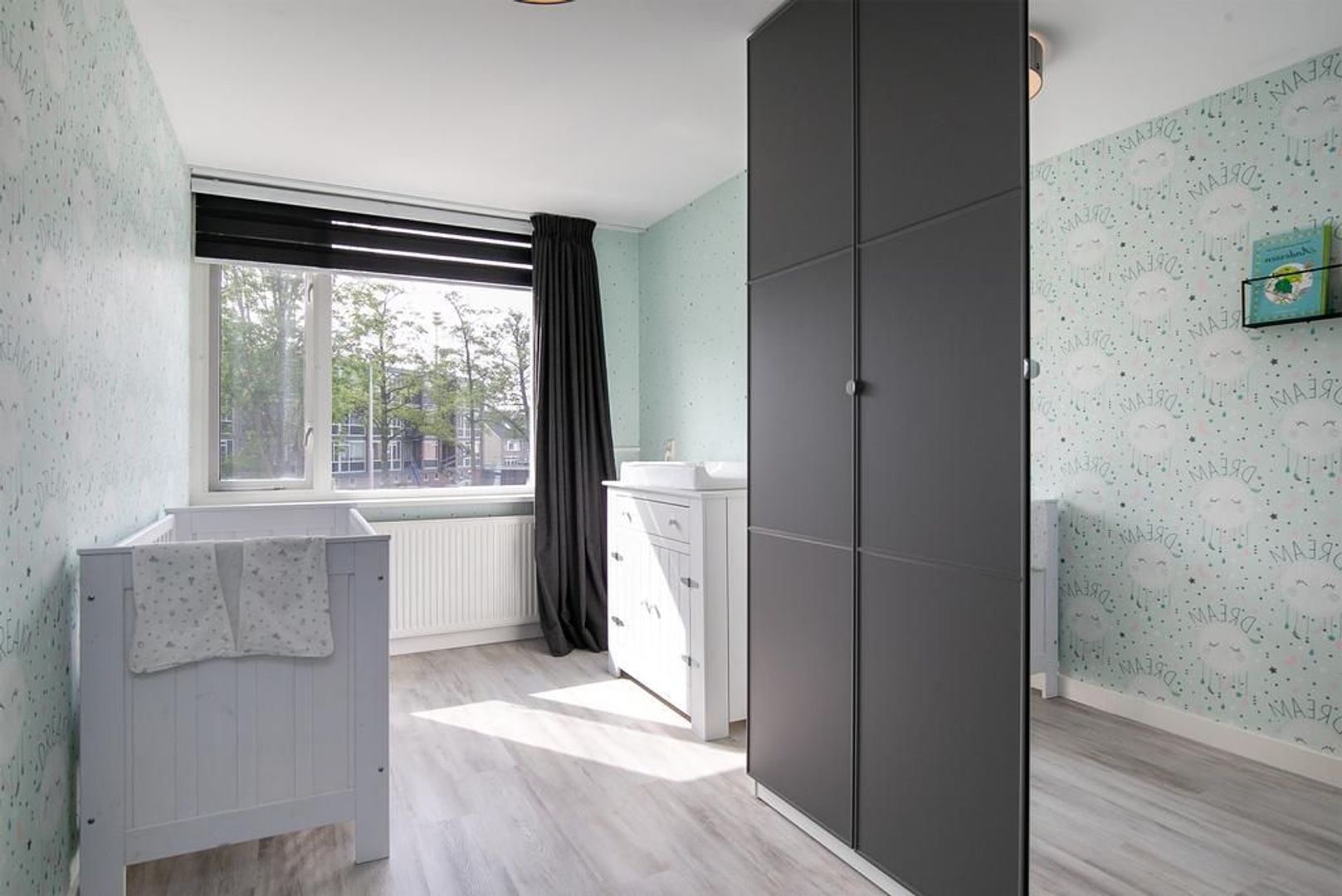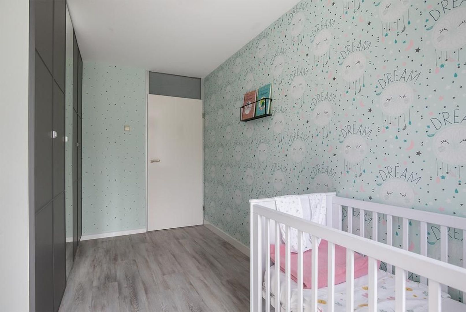 Op de volgende woonlaag bevinden zich twee slaapkamers aan de tuinkant en een kast met de cv-ketel (Remeha 2017) op de overloop.